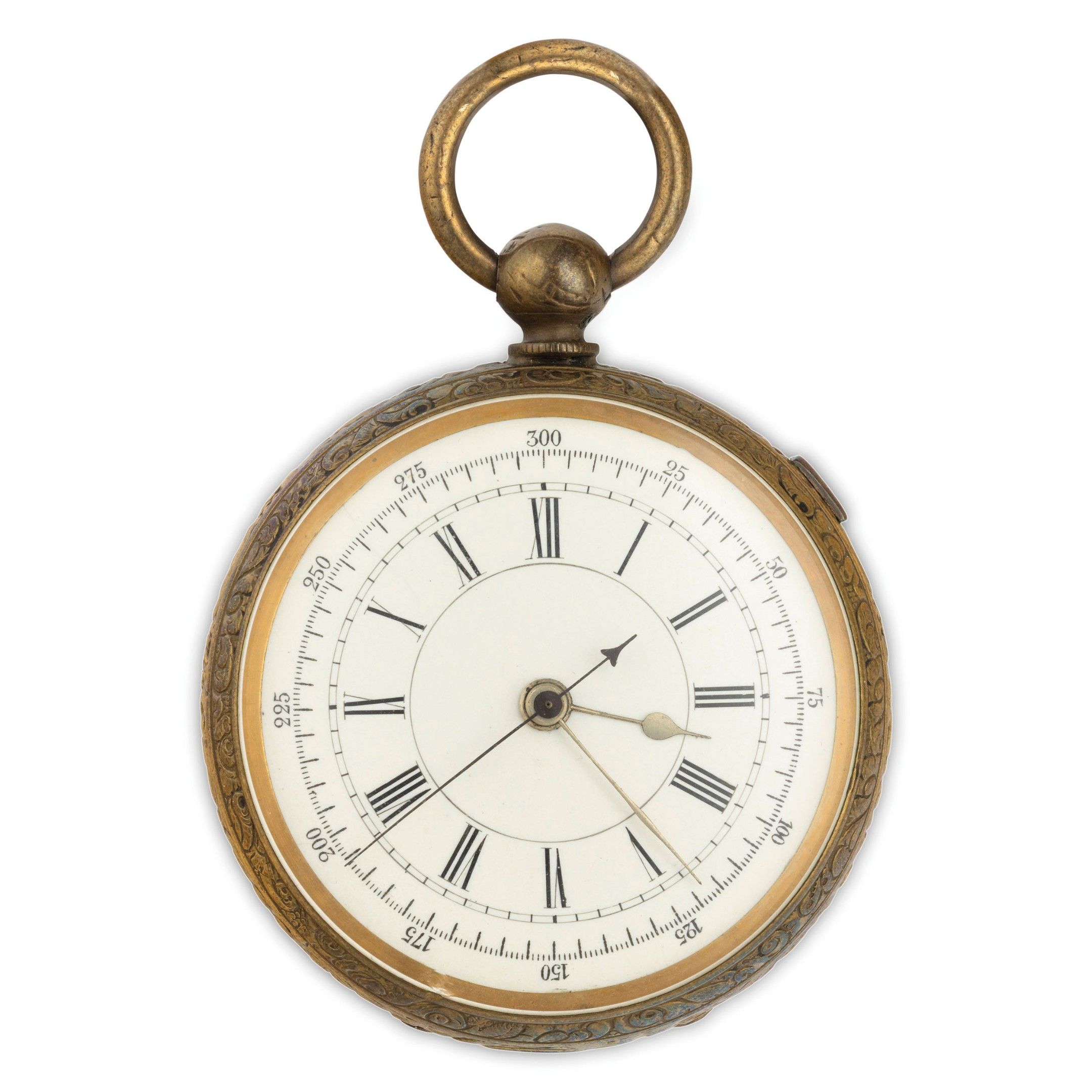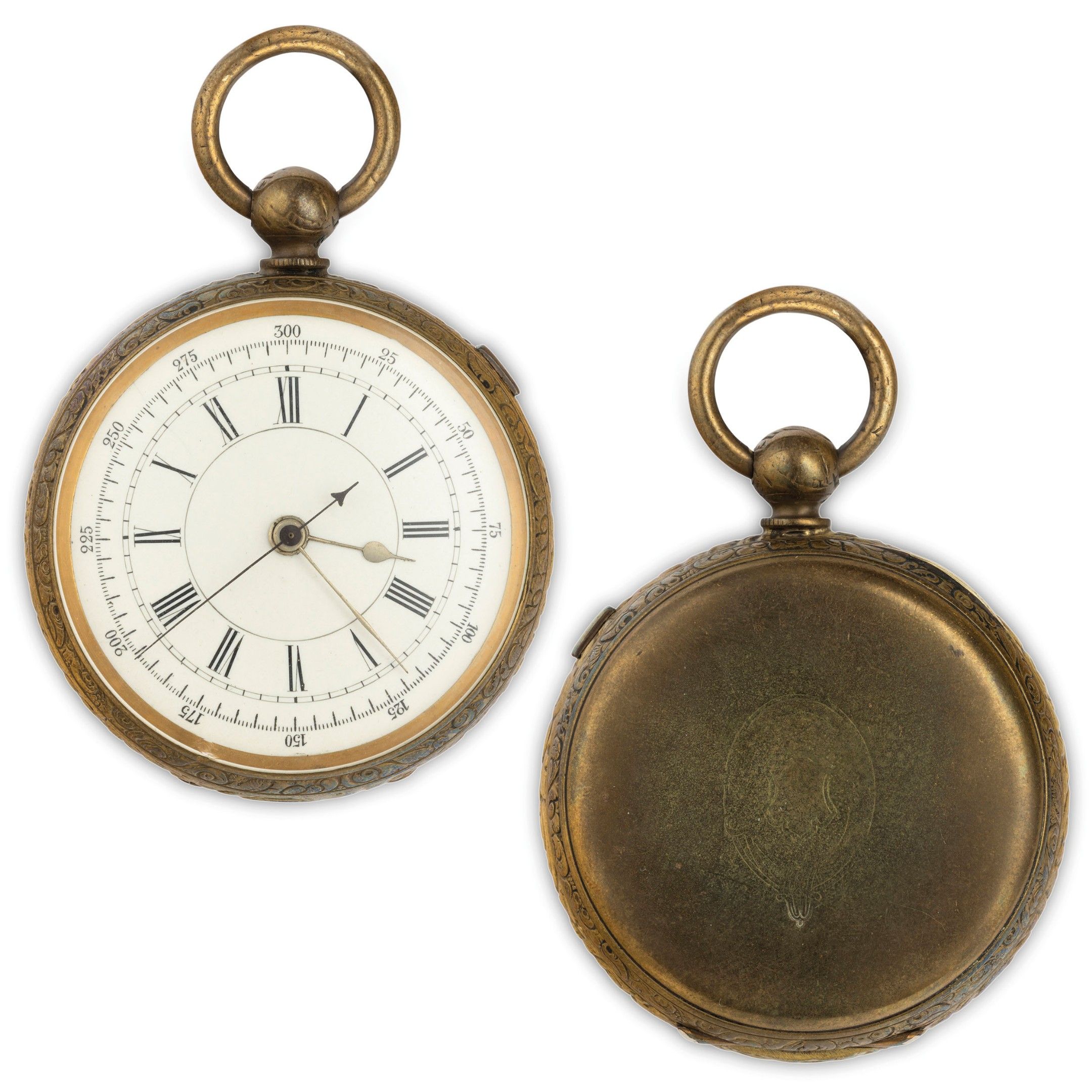 STOP WATCH, GILT METAL POCKET WATCH, SWISS FOR THE ENGLISH MARKET, CIRCA 1870