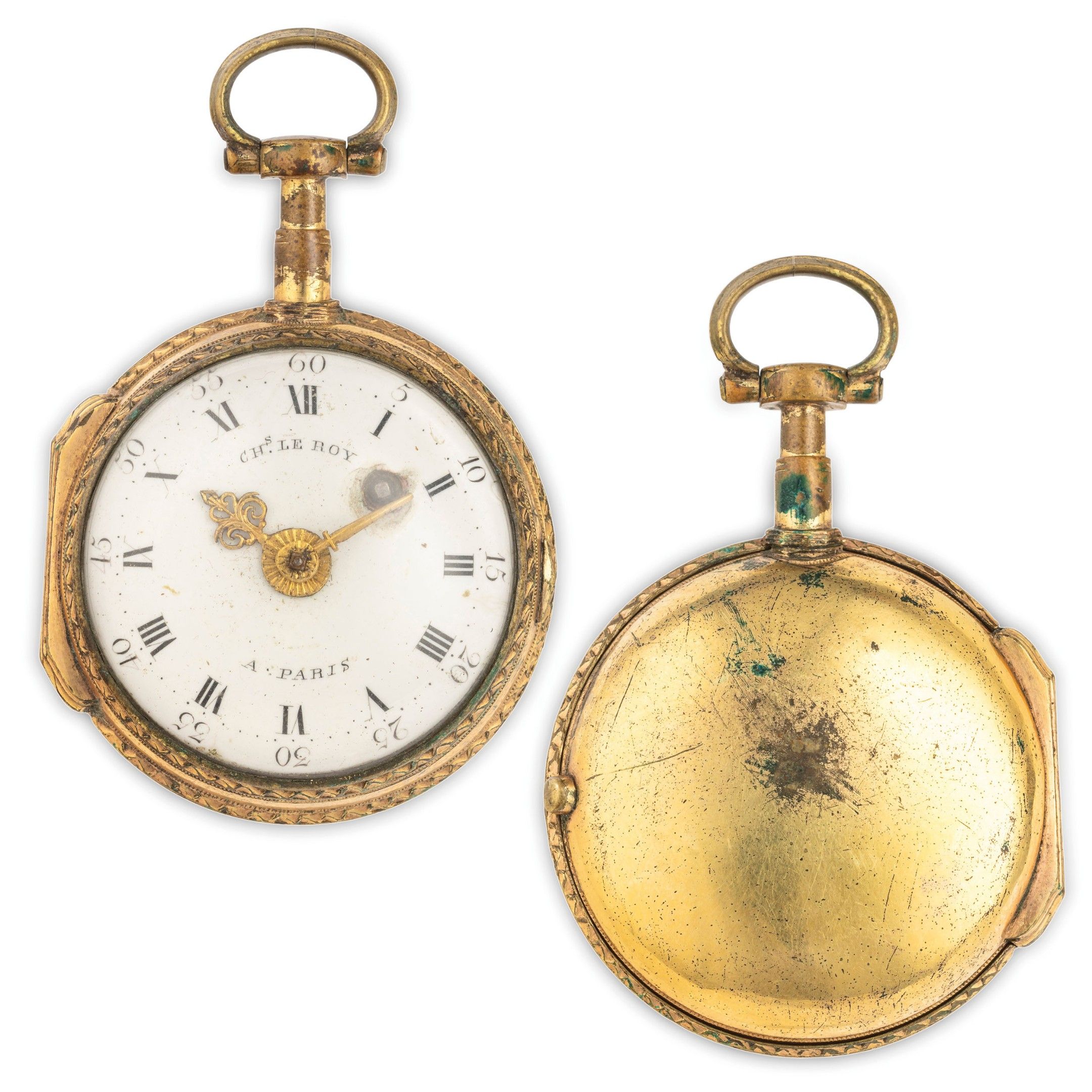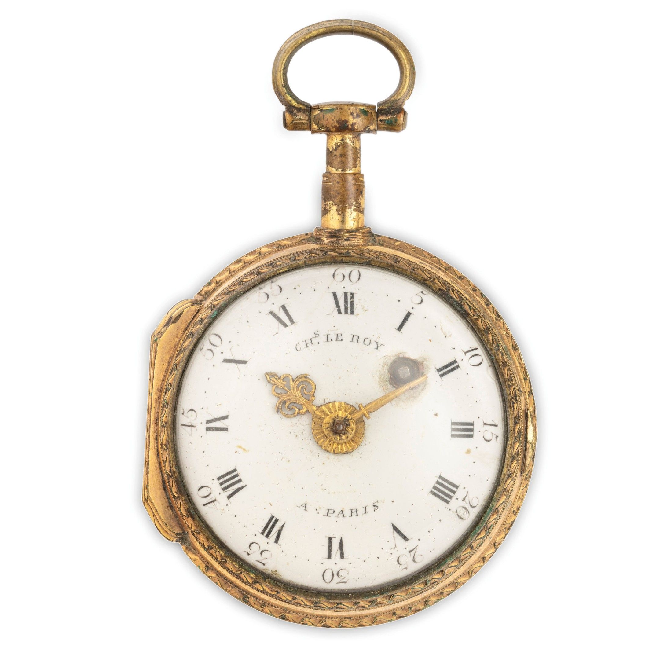 CHARLES LE ROY, GILDED METAL POCKET WATCH, FRANCE CIRCA 1750