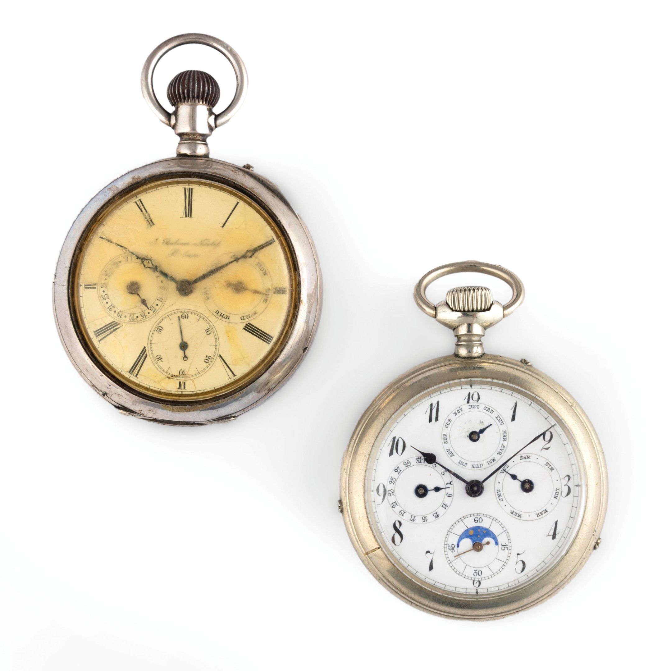 LOT OF 2 CALENDAR AND MOON PHASE WATCHES, SWISS CIRCA 1890