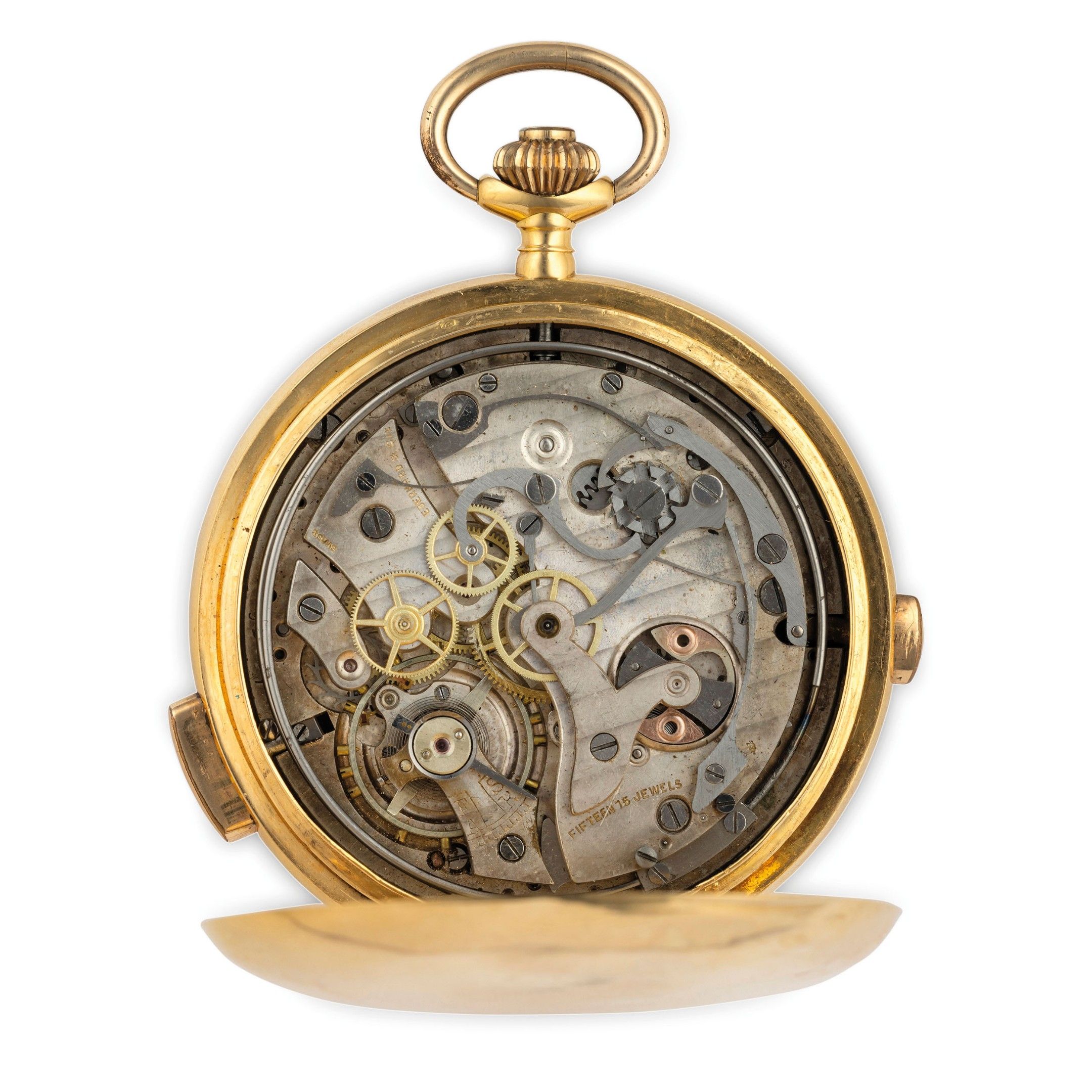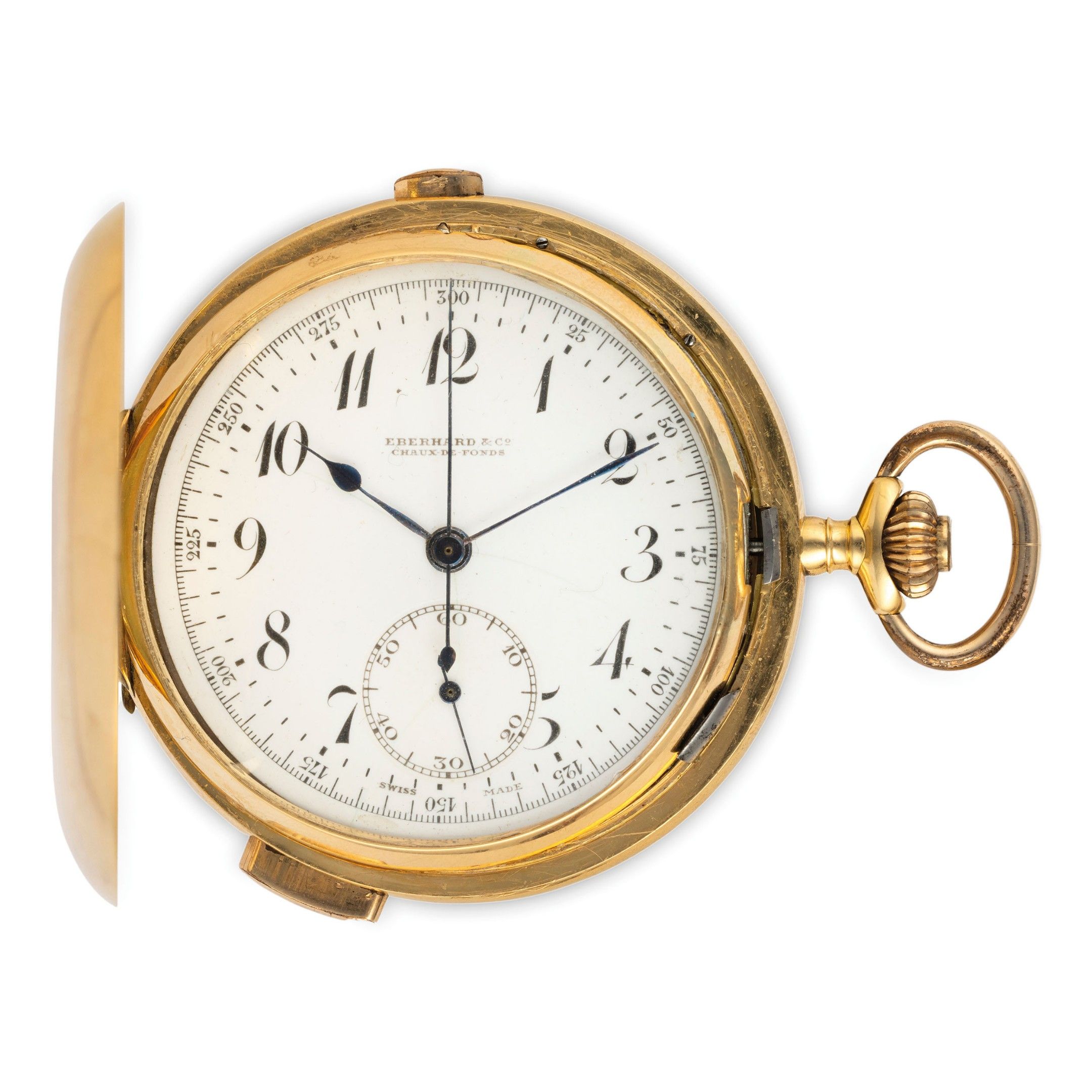 EBERHARD & CO., 18K GOLD HUNTER CASE POCKET WATCH, WITH MINUTE REPEATER AND CHRONOMETER, SWITZERLAND CIRCA 1910