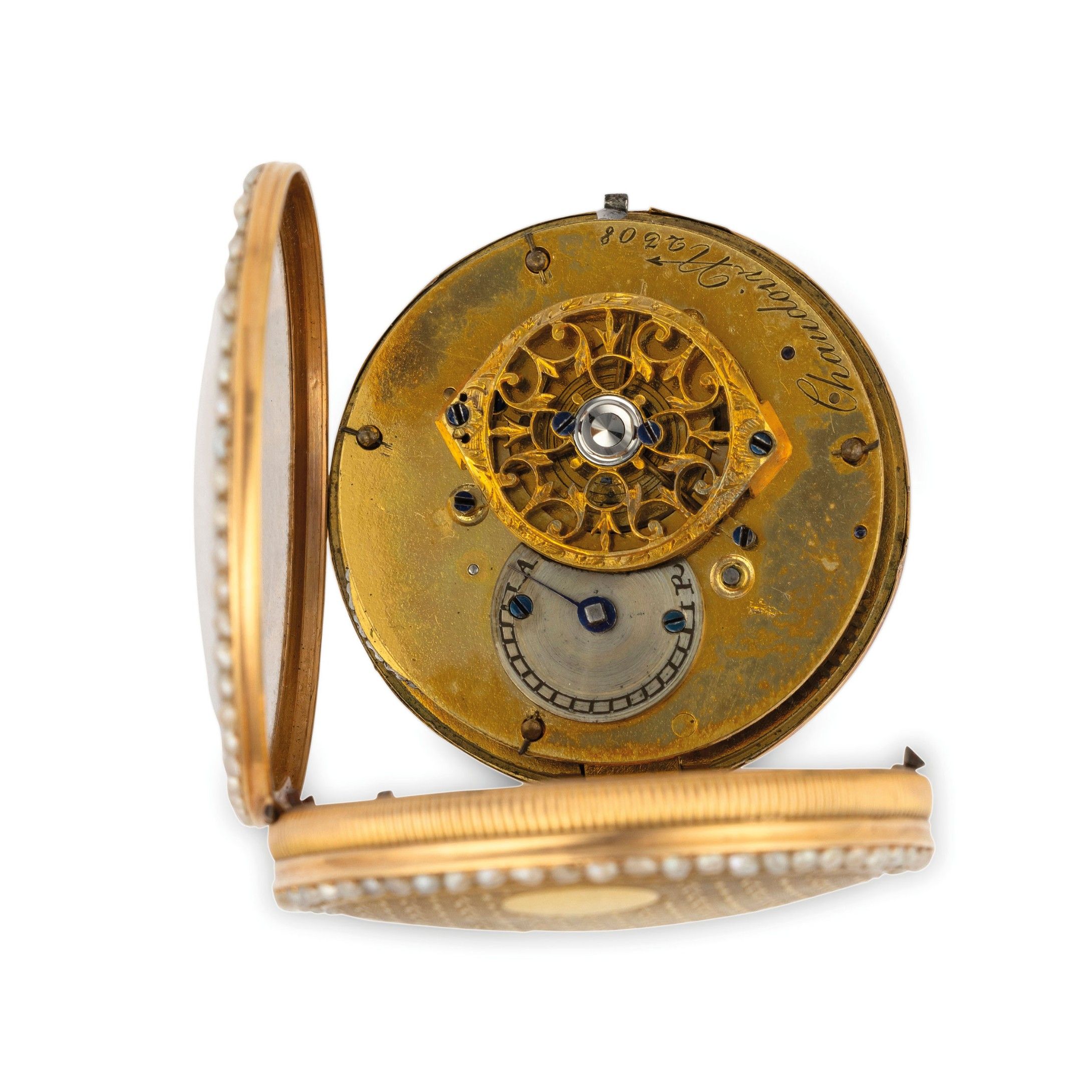 CHAUDOIR, GOLD POCKET WATCH WITH MICRO-PEARLS AND CASE, SWIS…