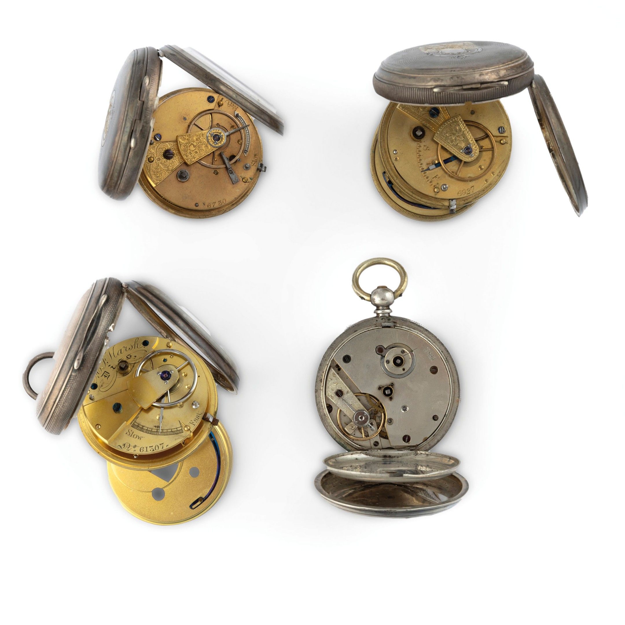 LOT OF 4 OPEN FACE POCKET WATCHES WITH SILVER CASES, ENGLAND CIRCA 1860-1880