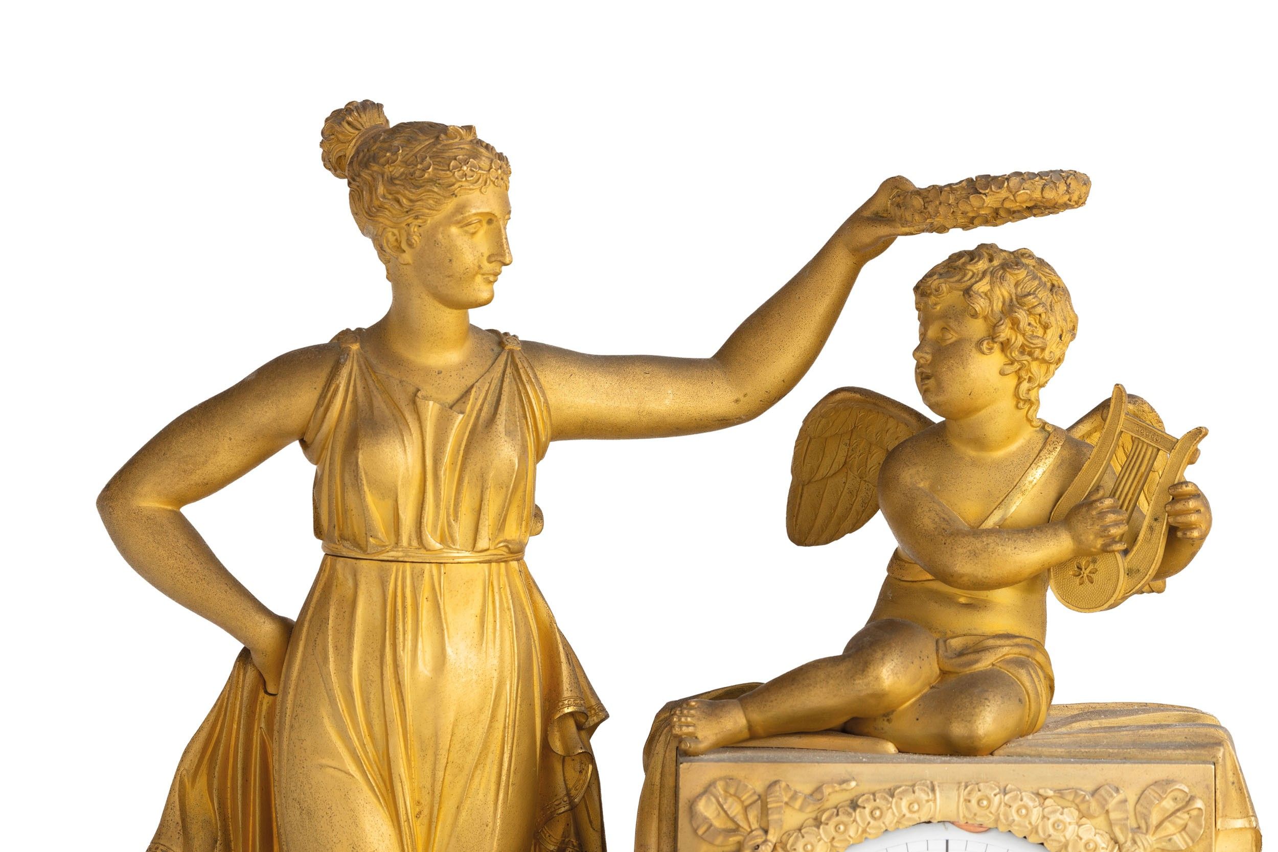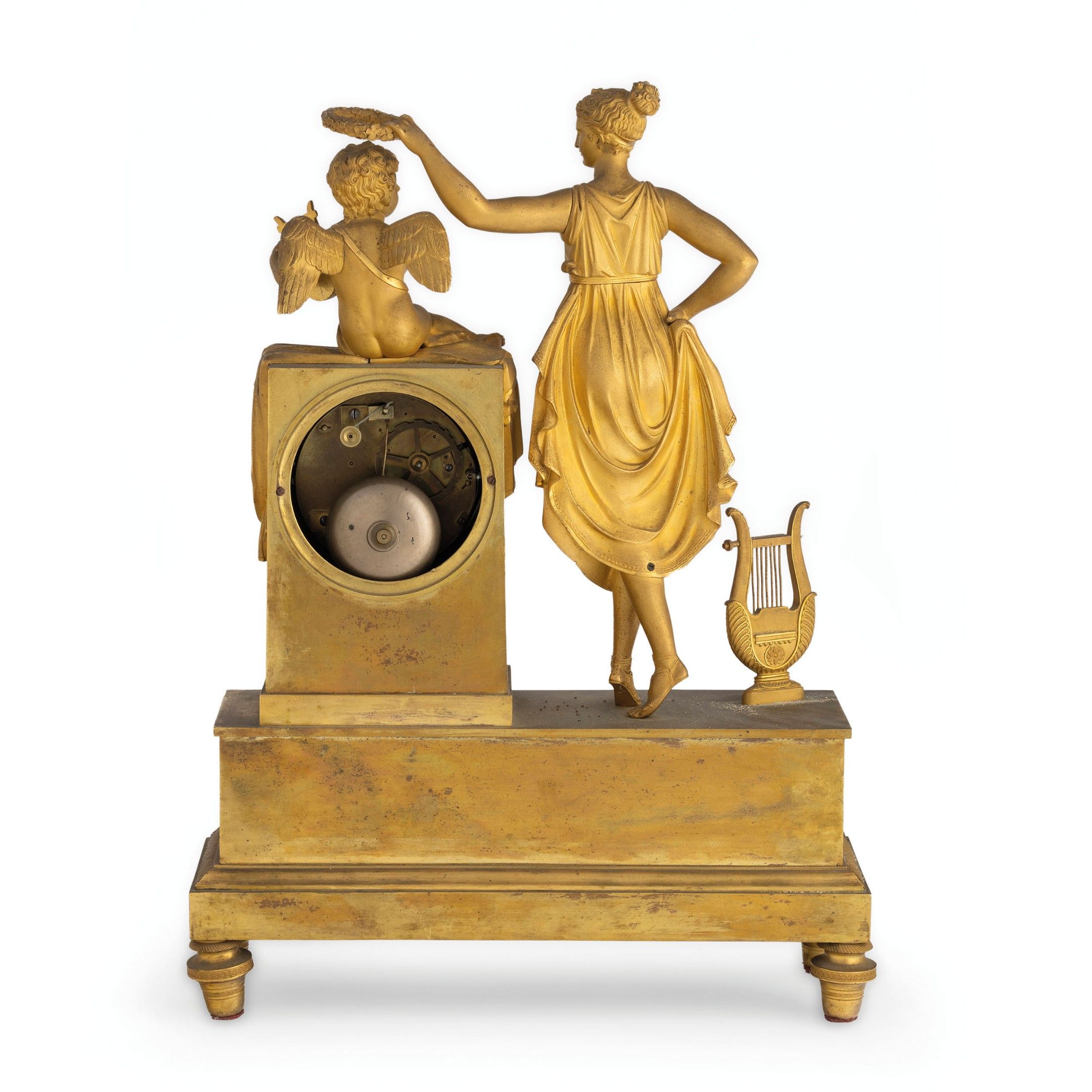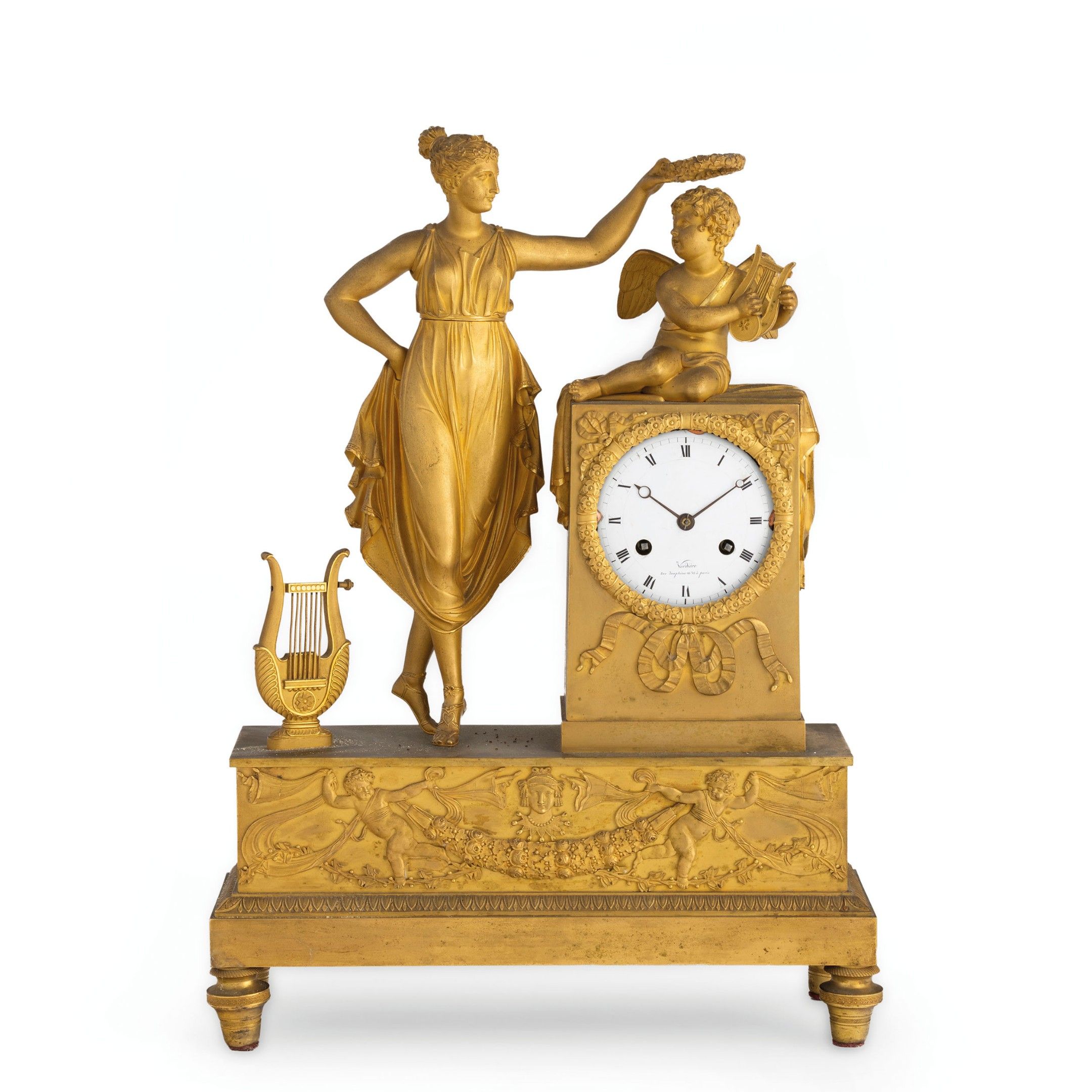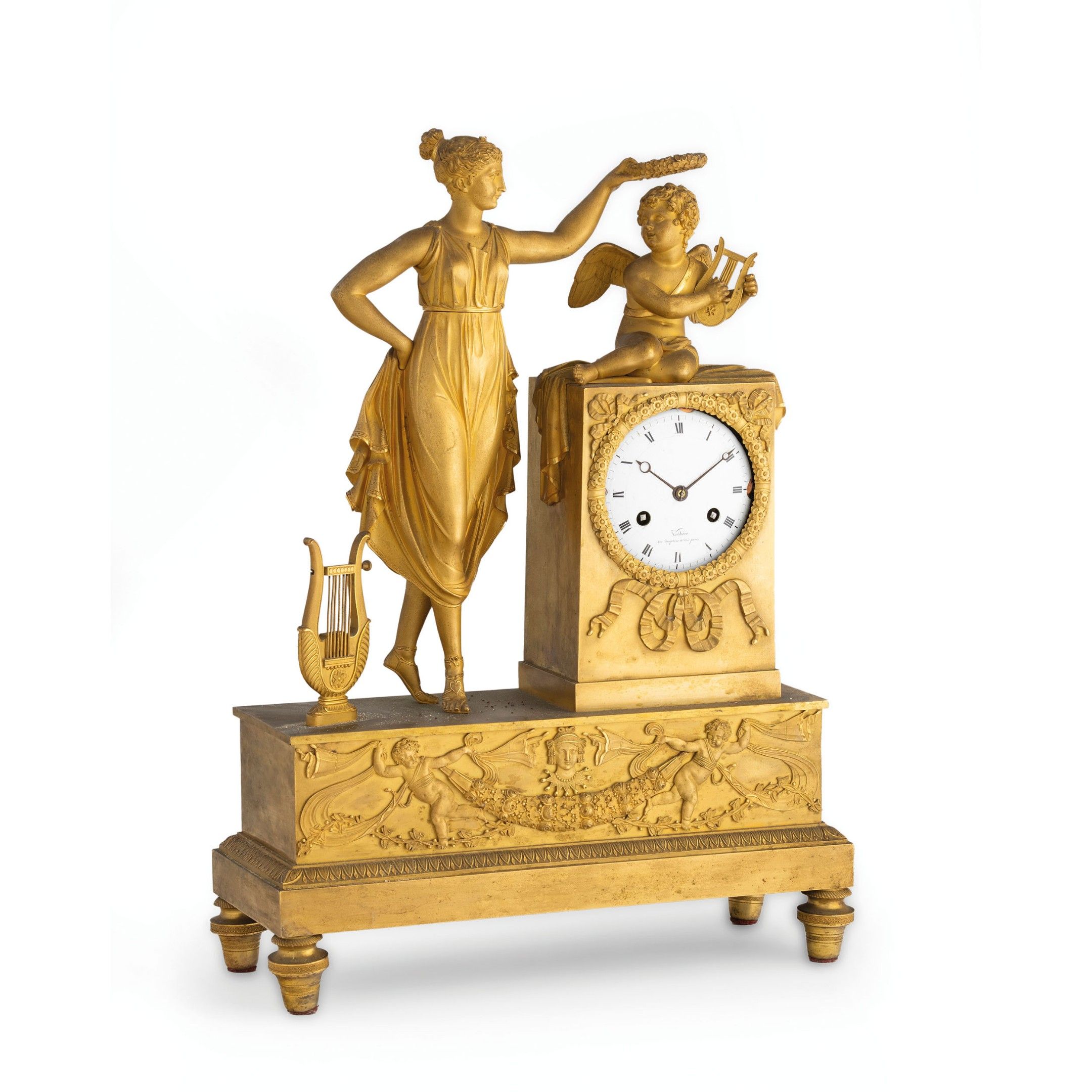 A GILT-BRONZE TABLE PENDULUM CLOCK, DEPICTING THE ALLEGORY OF EROTIC POETRY, FRANCE CIRCA 1800