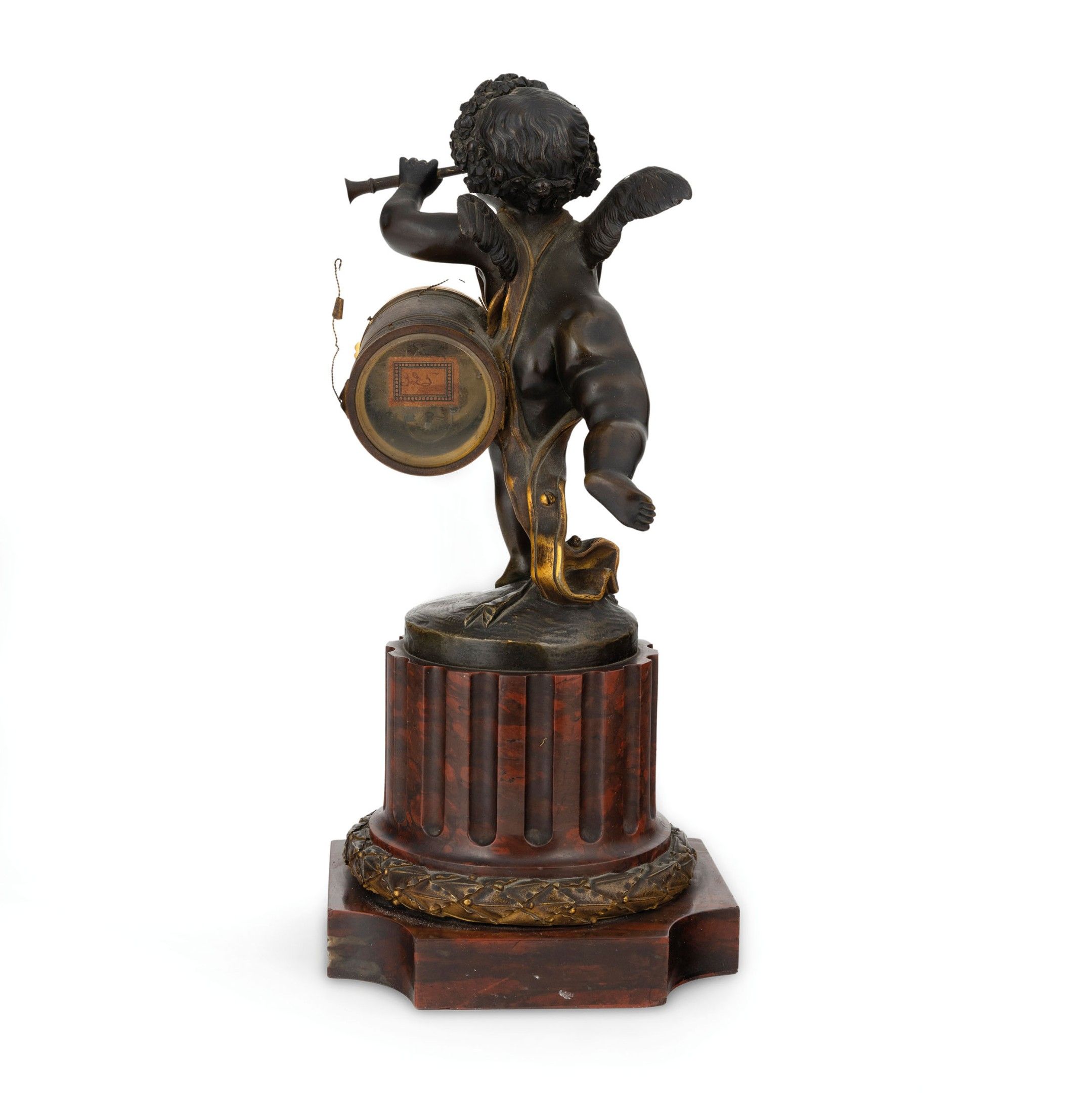 BRONZE CLOCK WITH MUSICIAN PUTTO, FRANCE CIRCA 1880