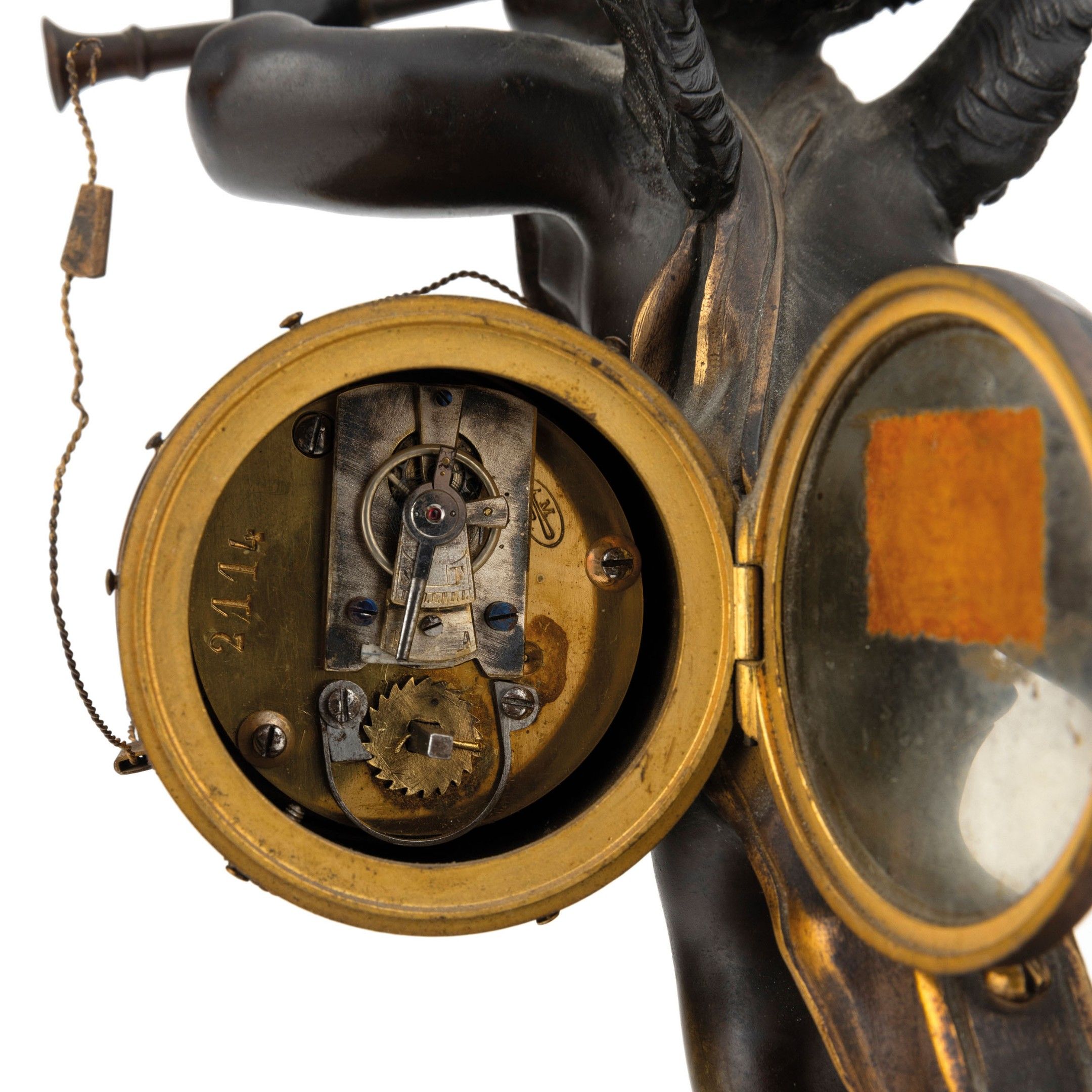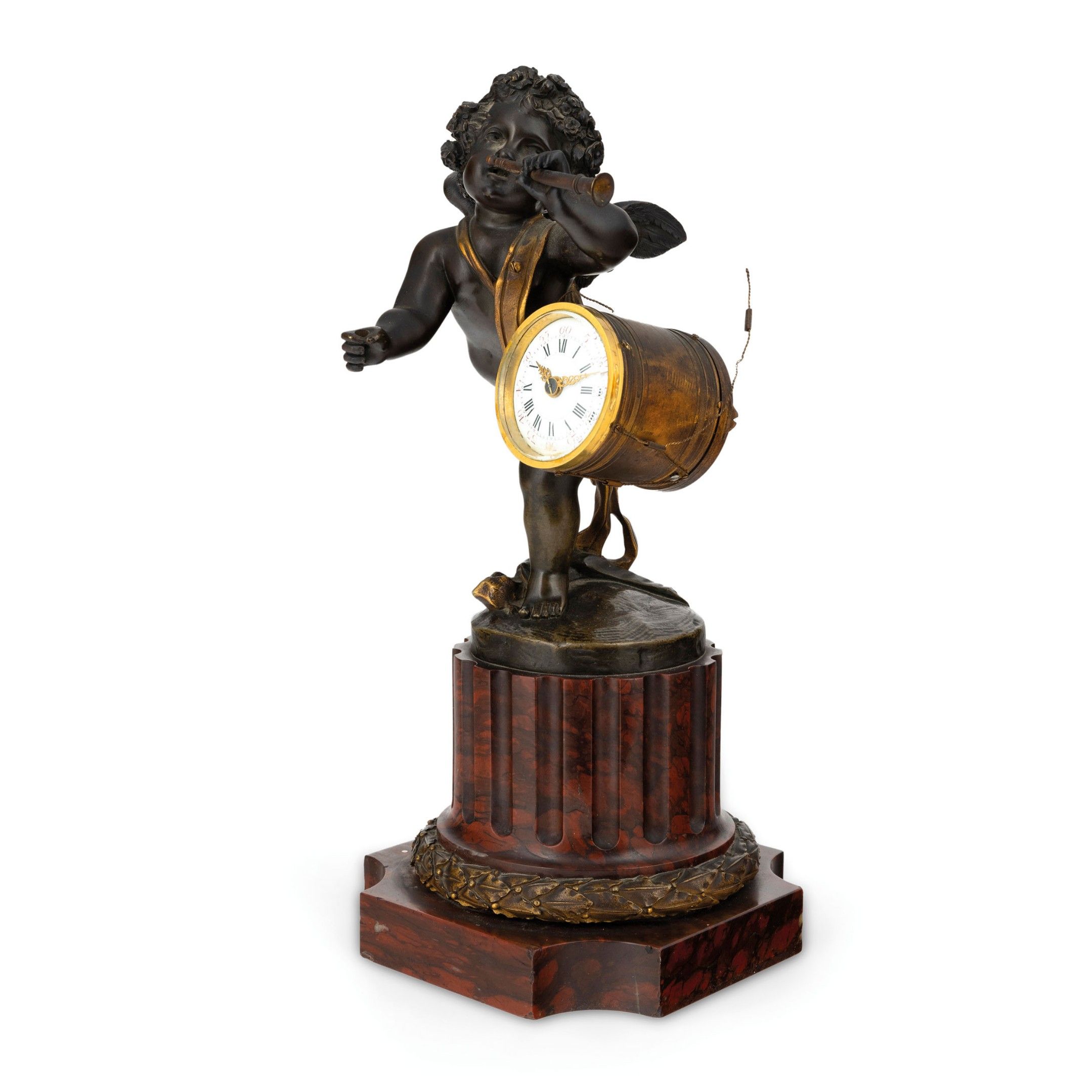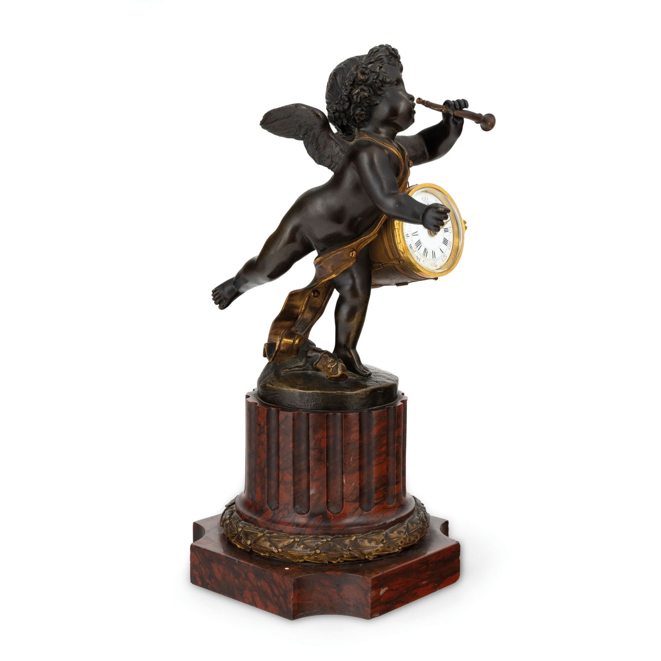 A BRONZE MANTEL CLOCK WITH A PUTTO MUSICIAN, FRANCE CIRCA 1880