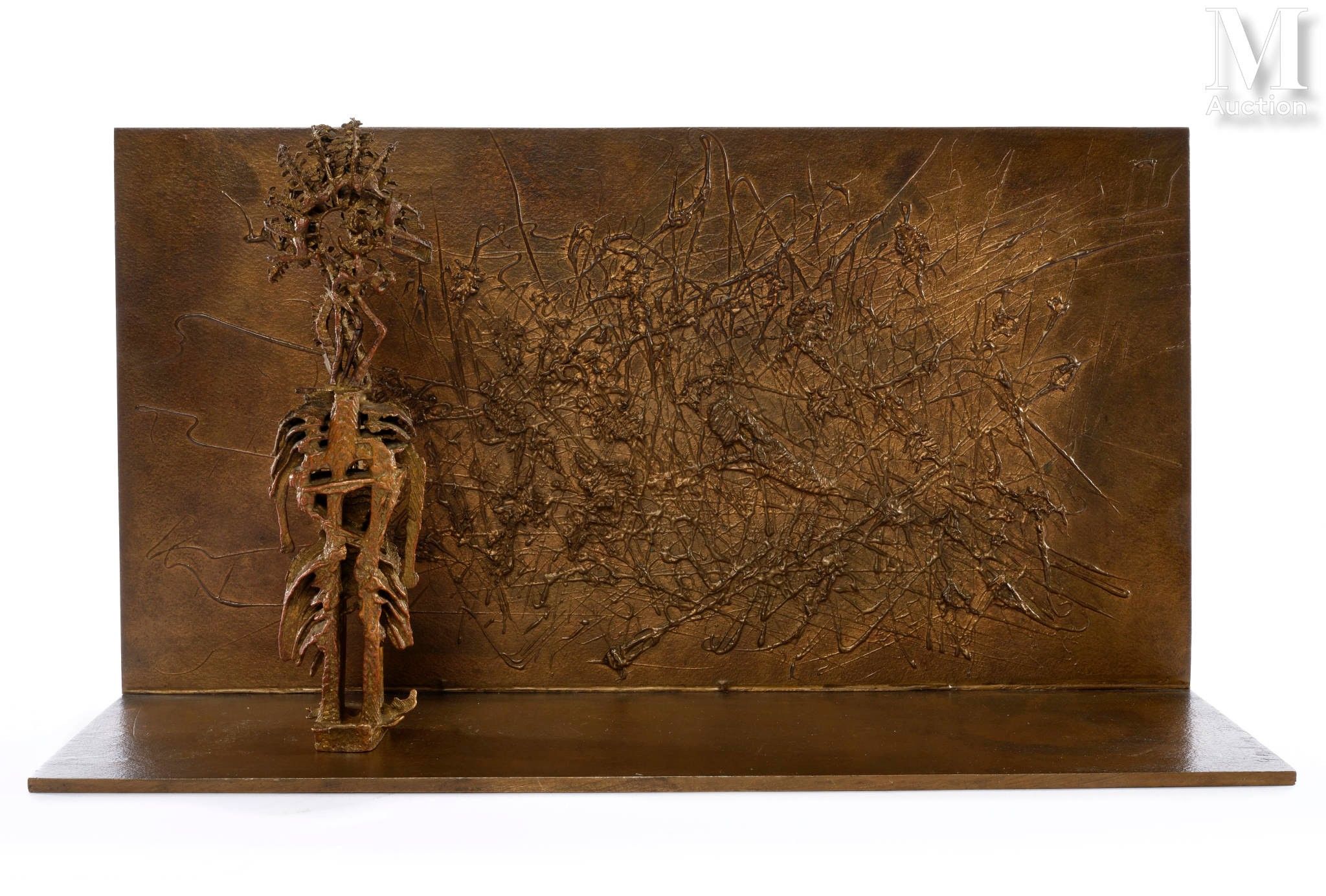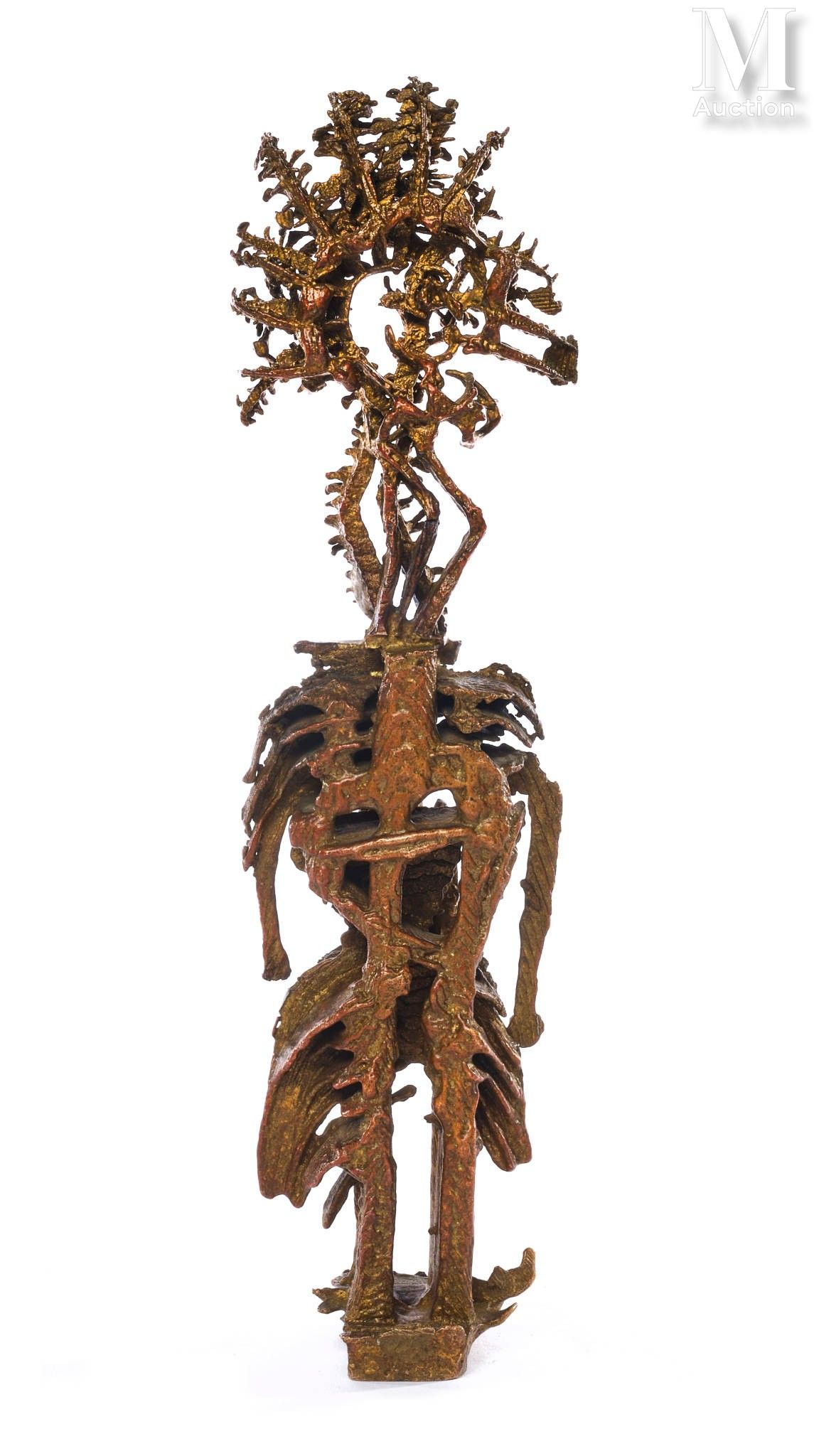 Natural bronze, cleaned, sculpture in two parts inscribed "Germaine Richier 1" on the Équerre. Unique piece. Foundry L.Thinot, Paris