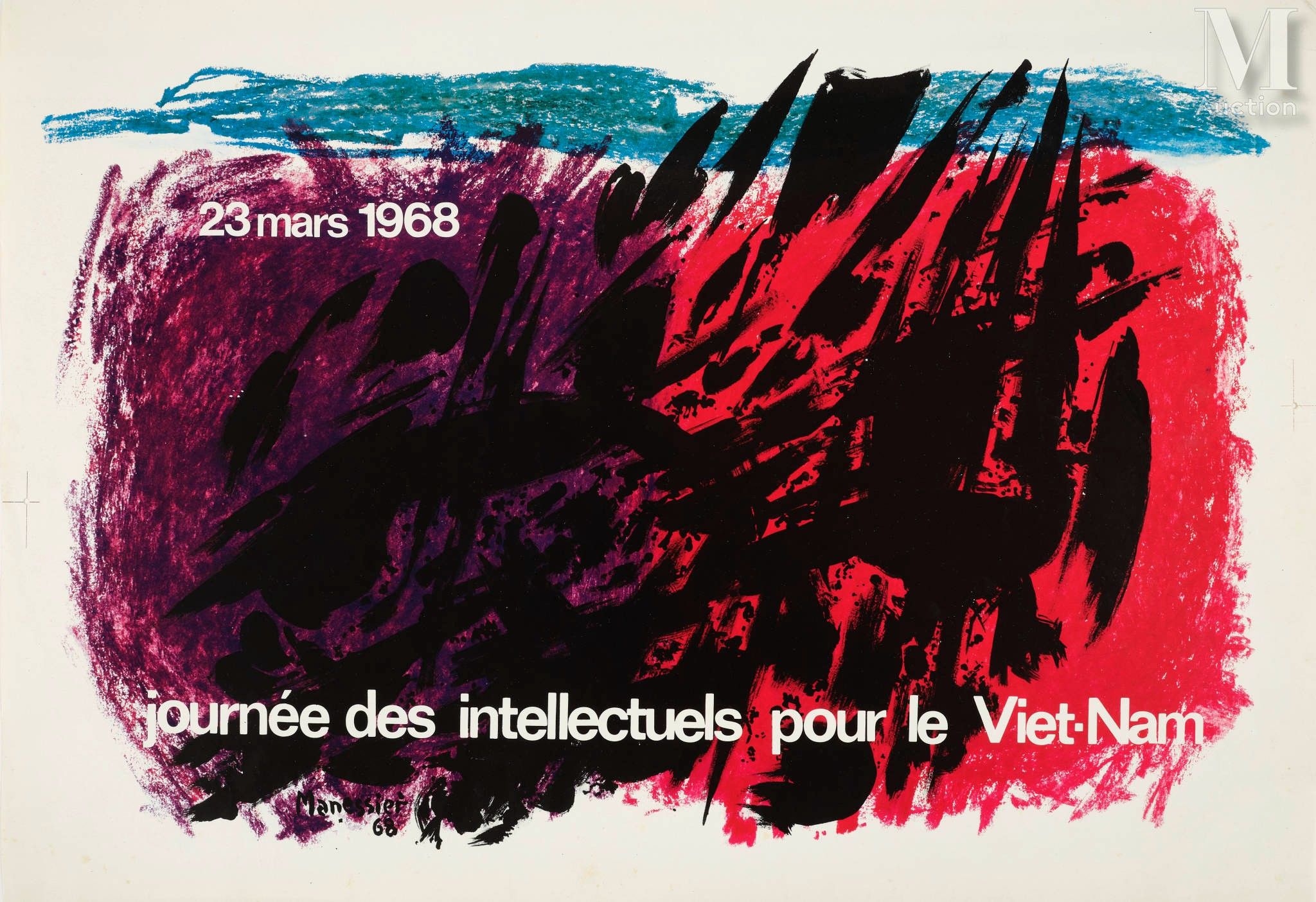 Oil pastel and ink on paper, set of two works produced for the poster collection for the Intellectuals for Vietnam Day on 23 March 1968