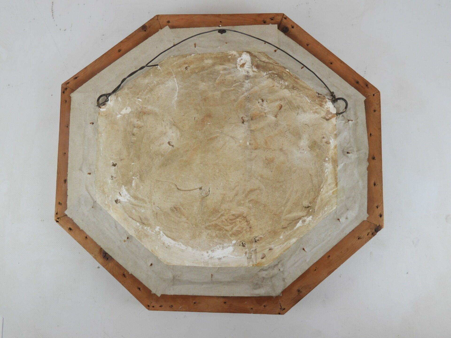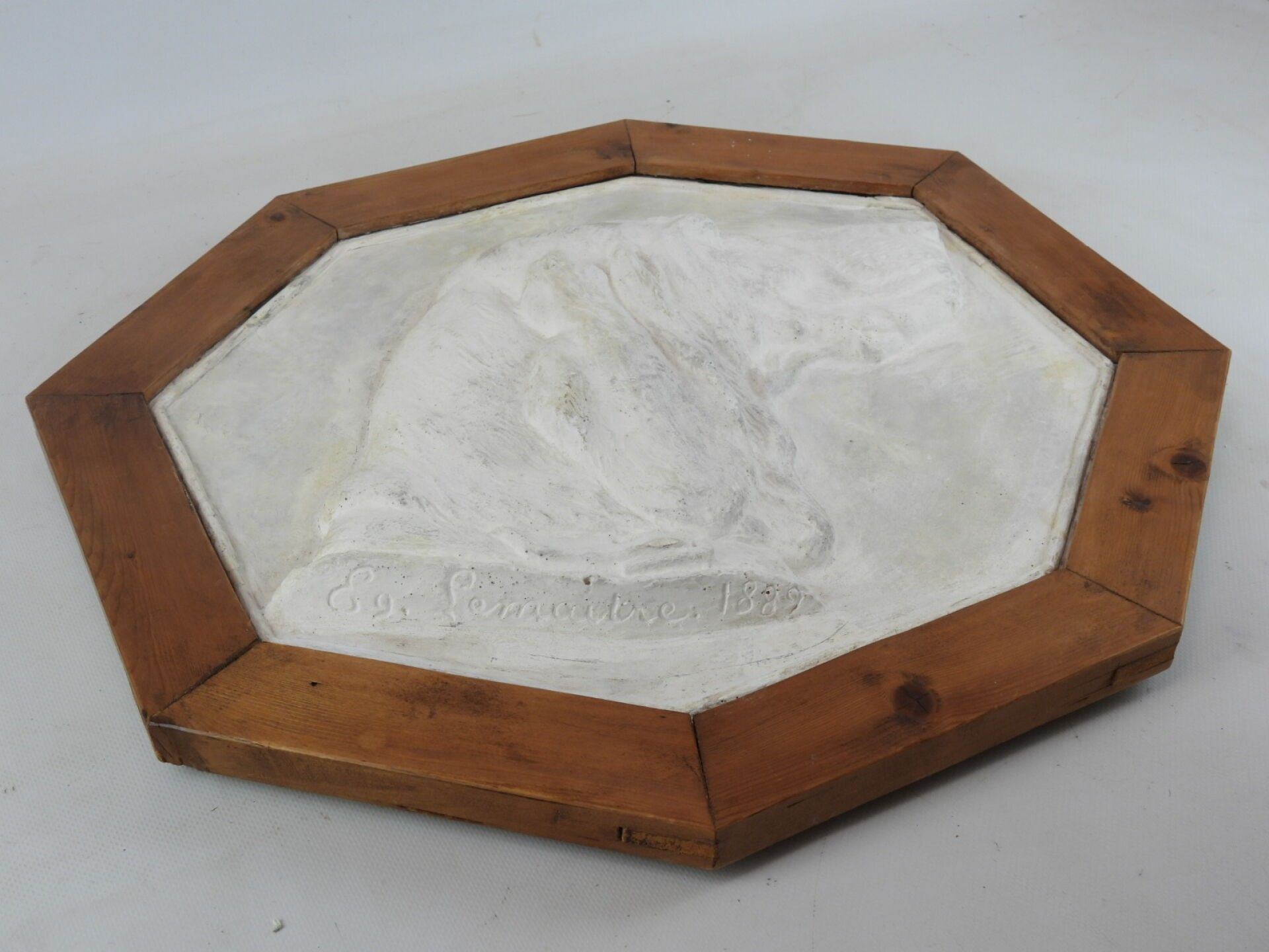 Églantine LEMAITRE - Blois: Low relief in plaster decorated with a hunting dog. Octagonal wooden frame. Signed and dated 1889.