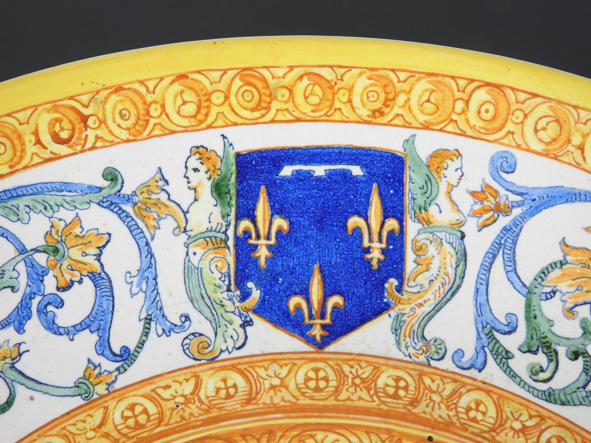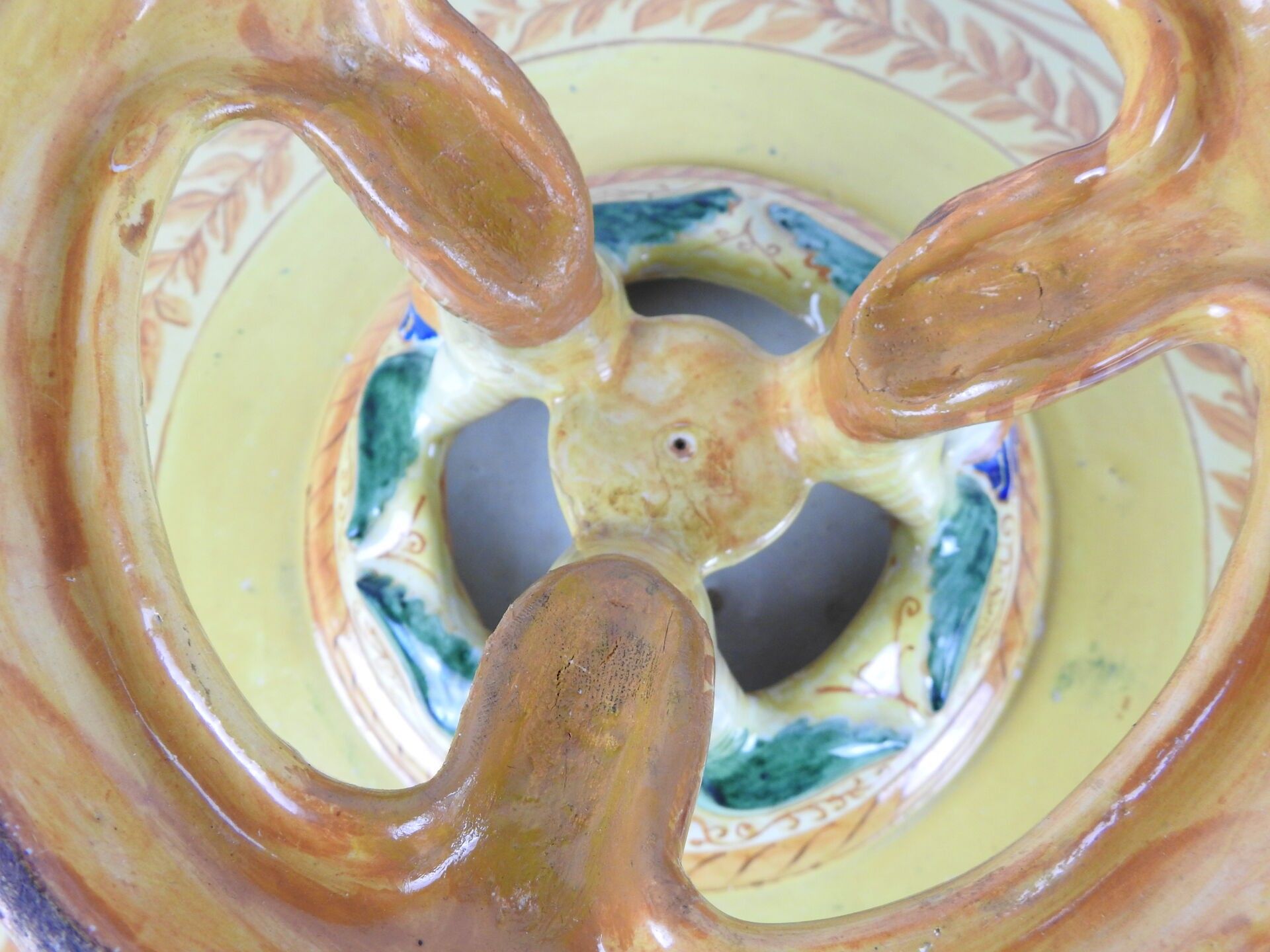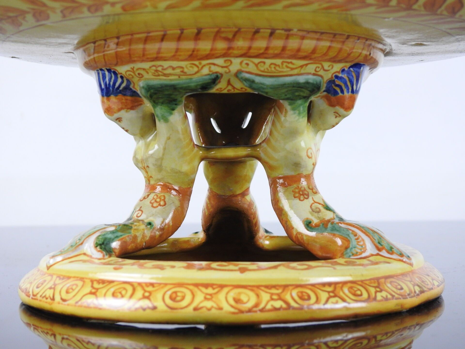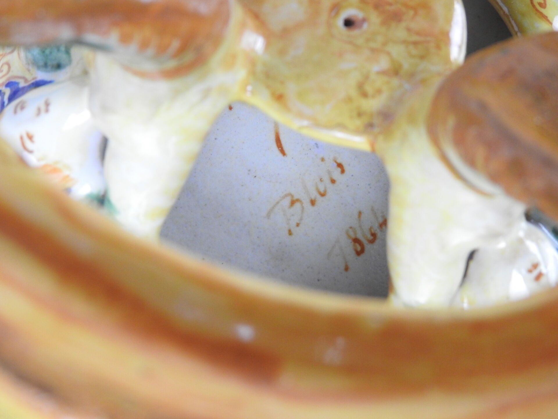 Ulysse BESNARD dit ULYSSE (1826-1899) - Blois : Important bowl resting on a foot made up of three earthenware tritons, the bowl decorated in a medallion with the François Ier facade with the famous staircase of the castle of Blois. Signed Ulysse and dated 1864. H: 14 - Diam. 32.5 cm (damage).