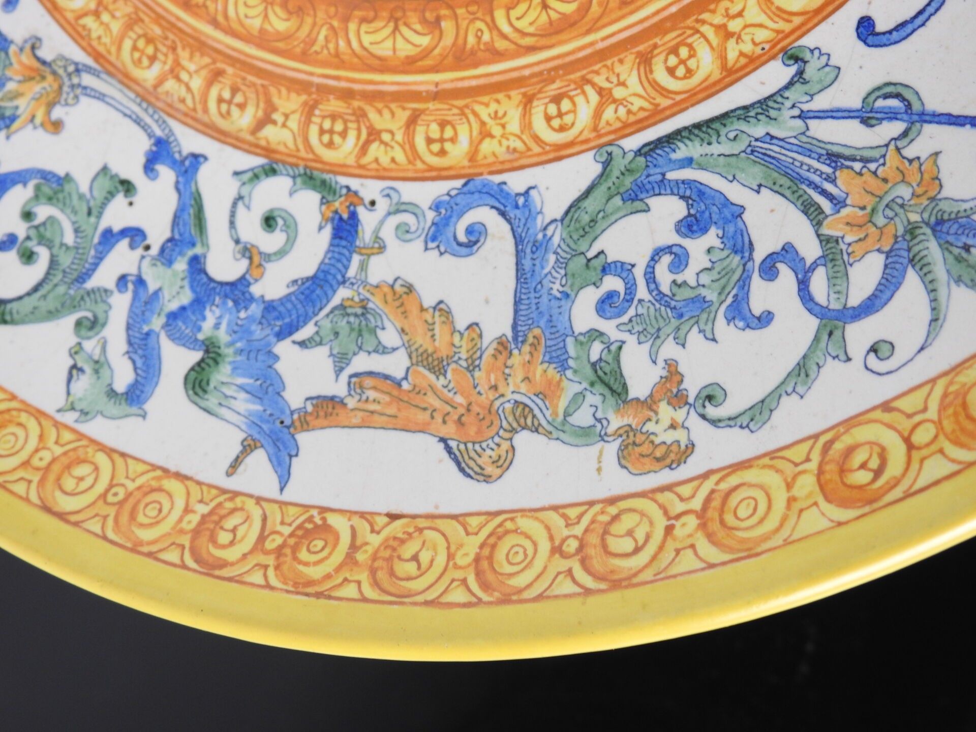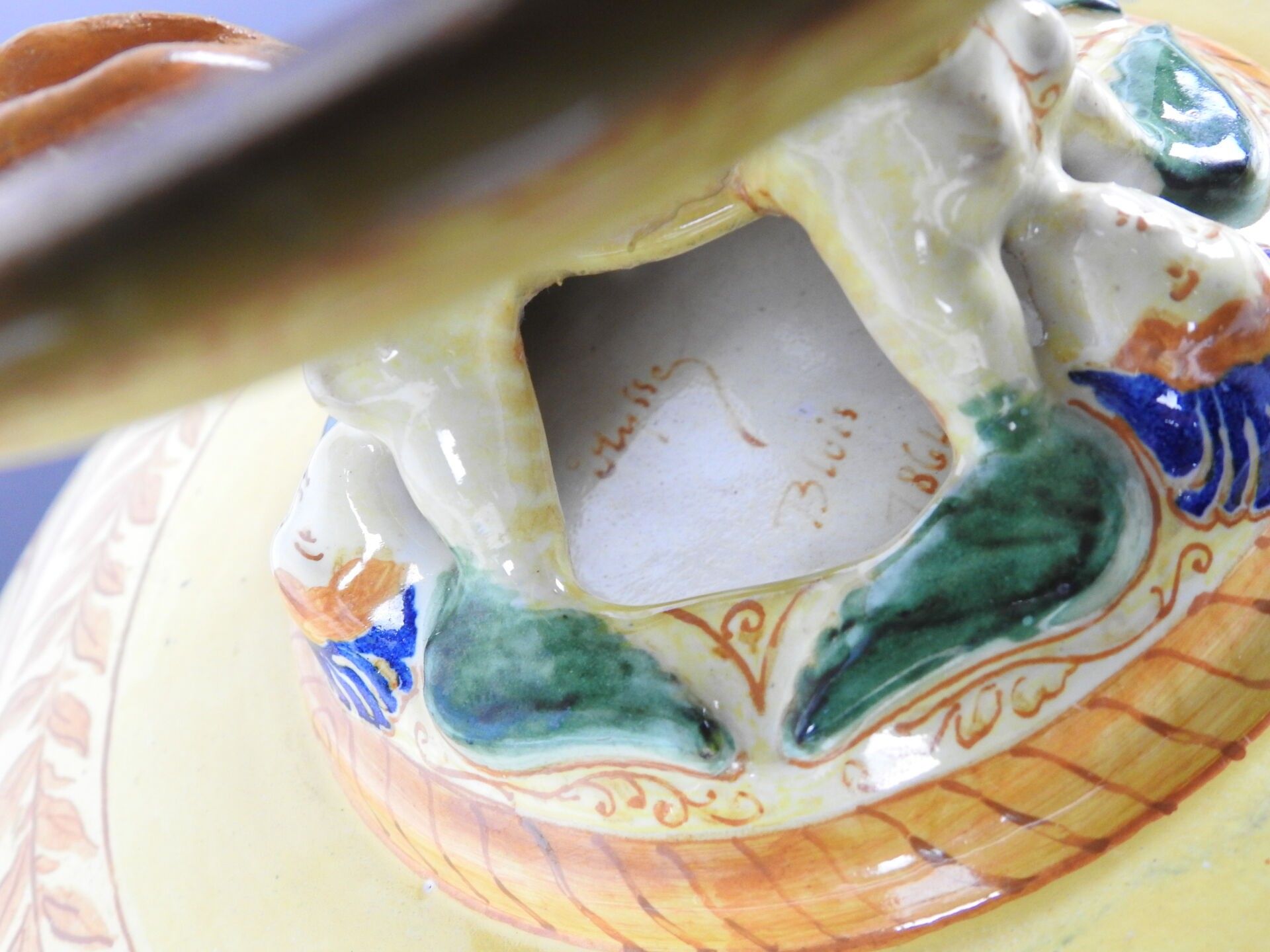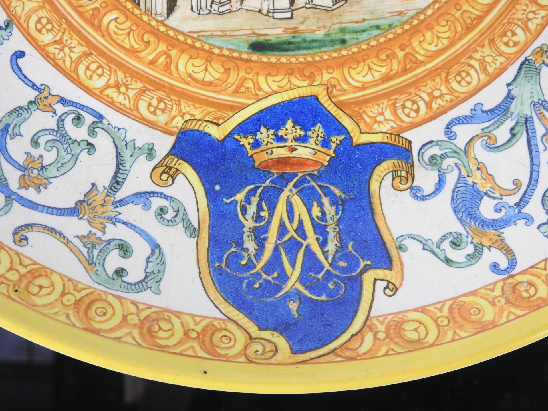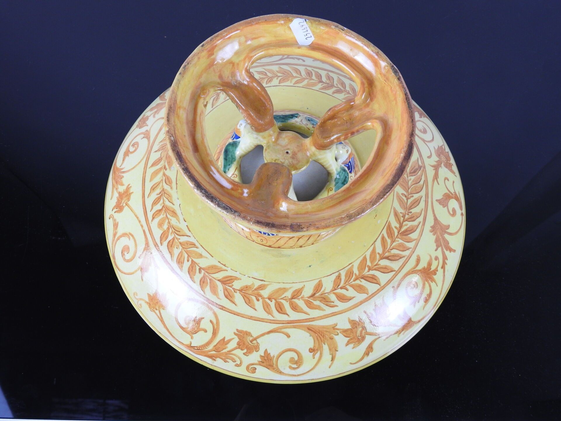 Ulysse BESNARD dit ULYSSE (1826-1899) - Blois : Important bowl resting on a foot made up of three earthenware tritons, the bowl decorated in a medallion with the François Ier facade with the famous staircase of the castle of Blois. Signed Ulysse and dated 1864. H: 14 - Diam. 32.5 cm (damage).