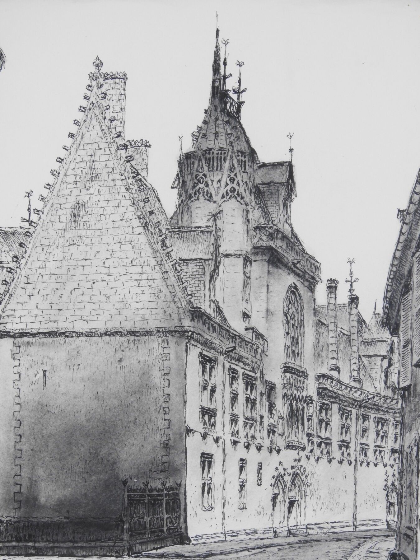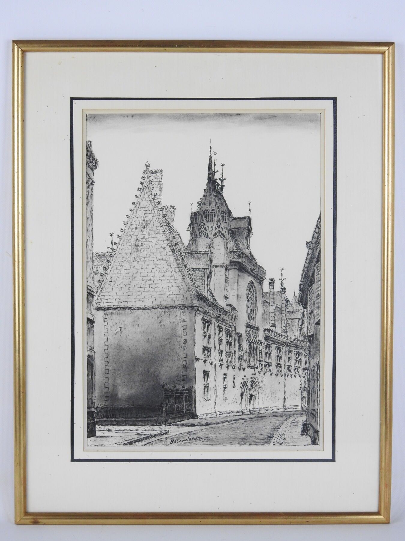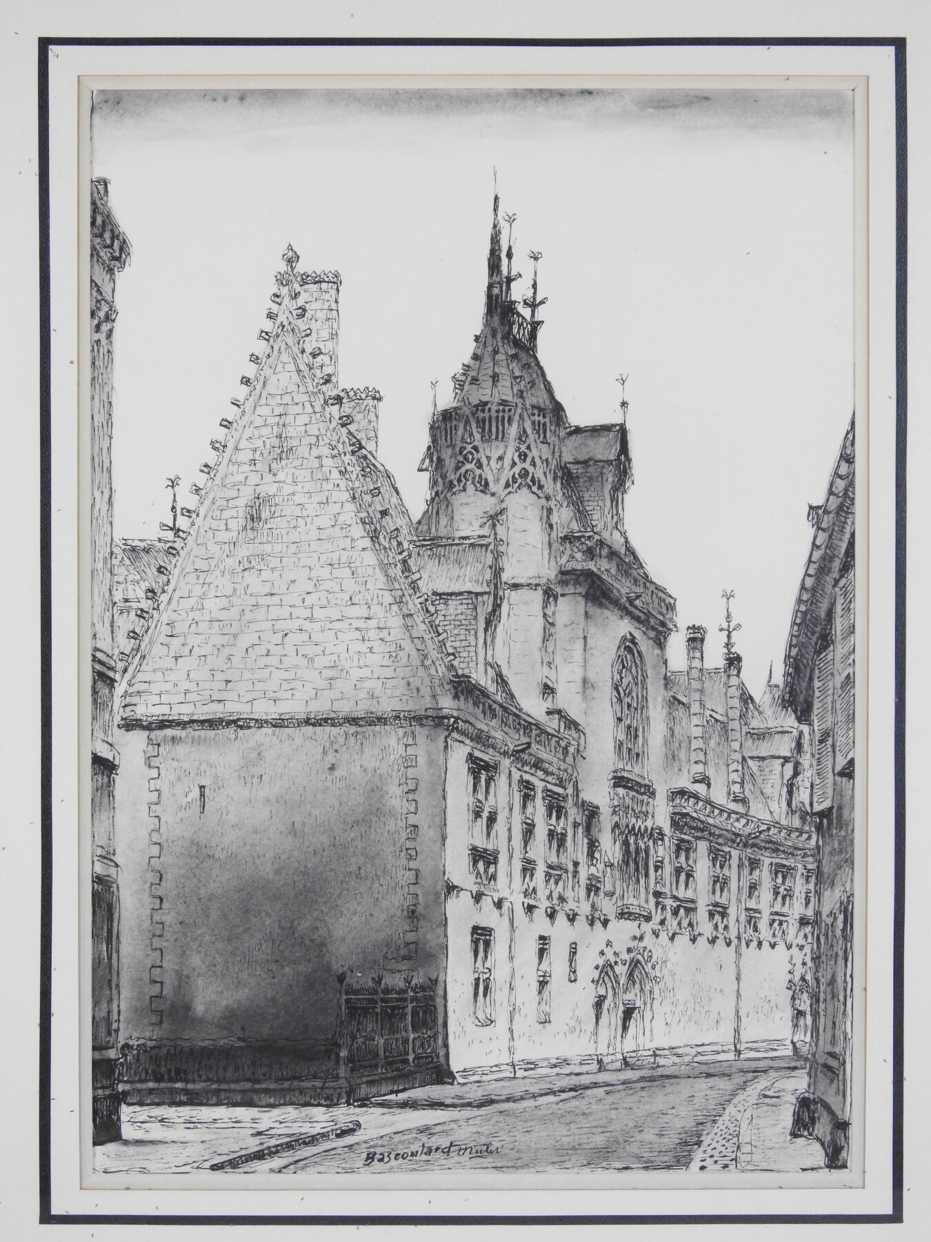 Marcel BASCOULARD (1913-1978): The Jacques Coeur Palace in Bourges. Ink and ink wash. Signed Bascoulard mulet. 36 x 26 cm. Size (frame): 53 x 42 cm