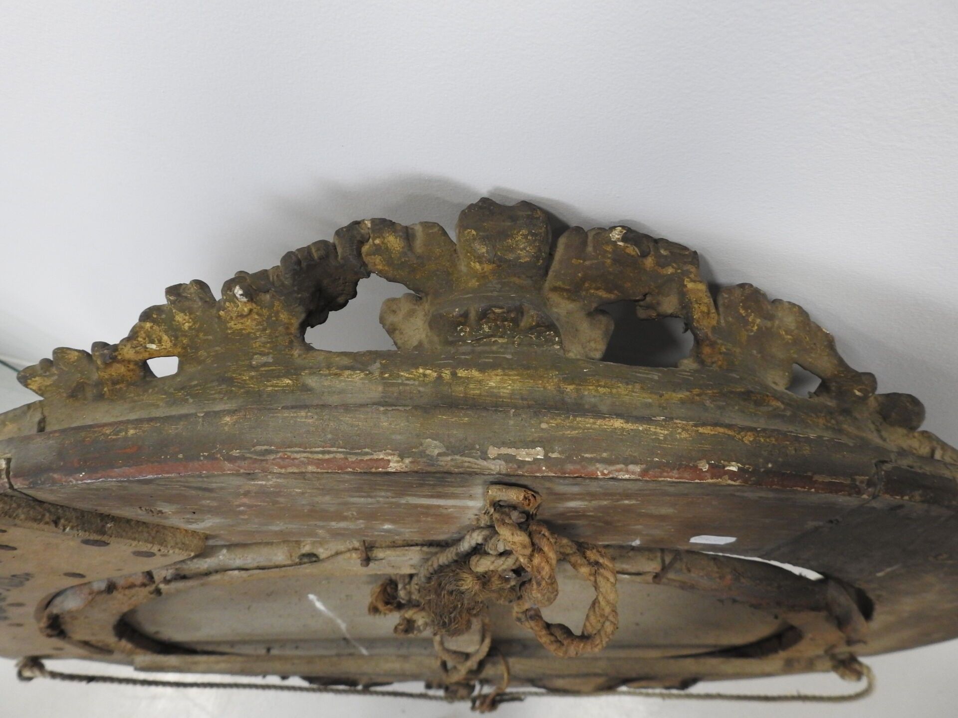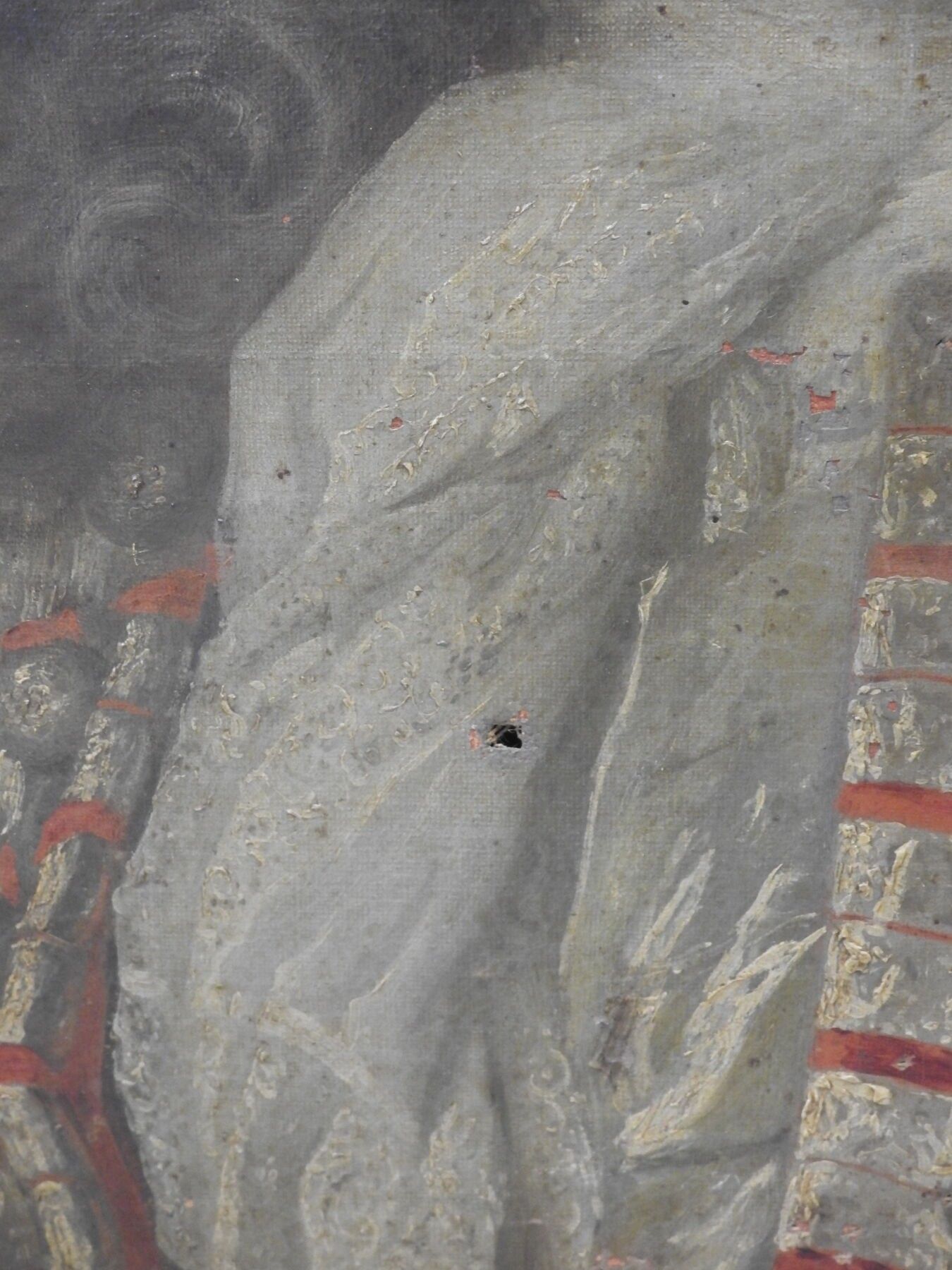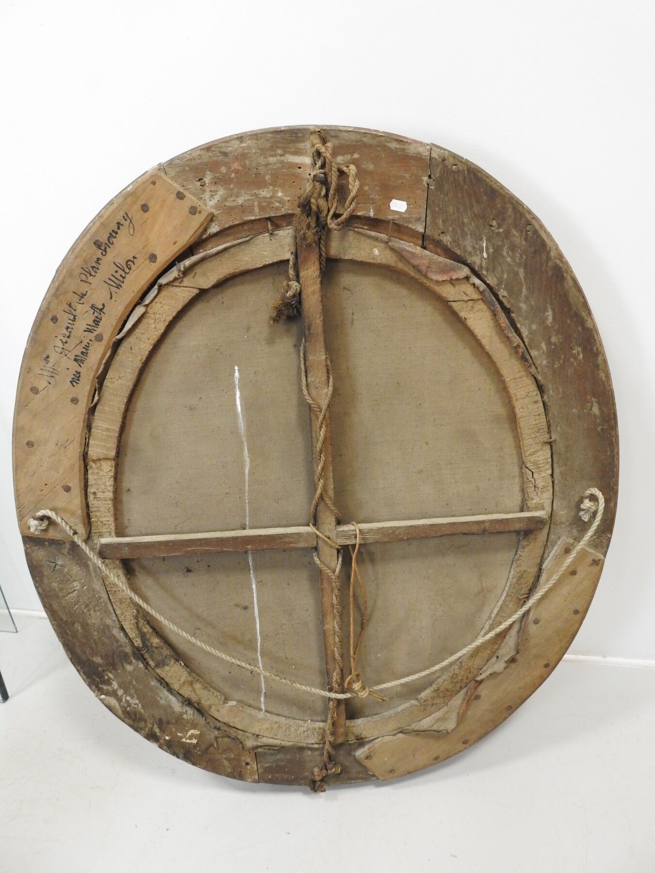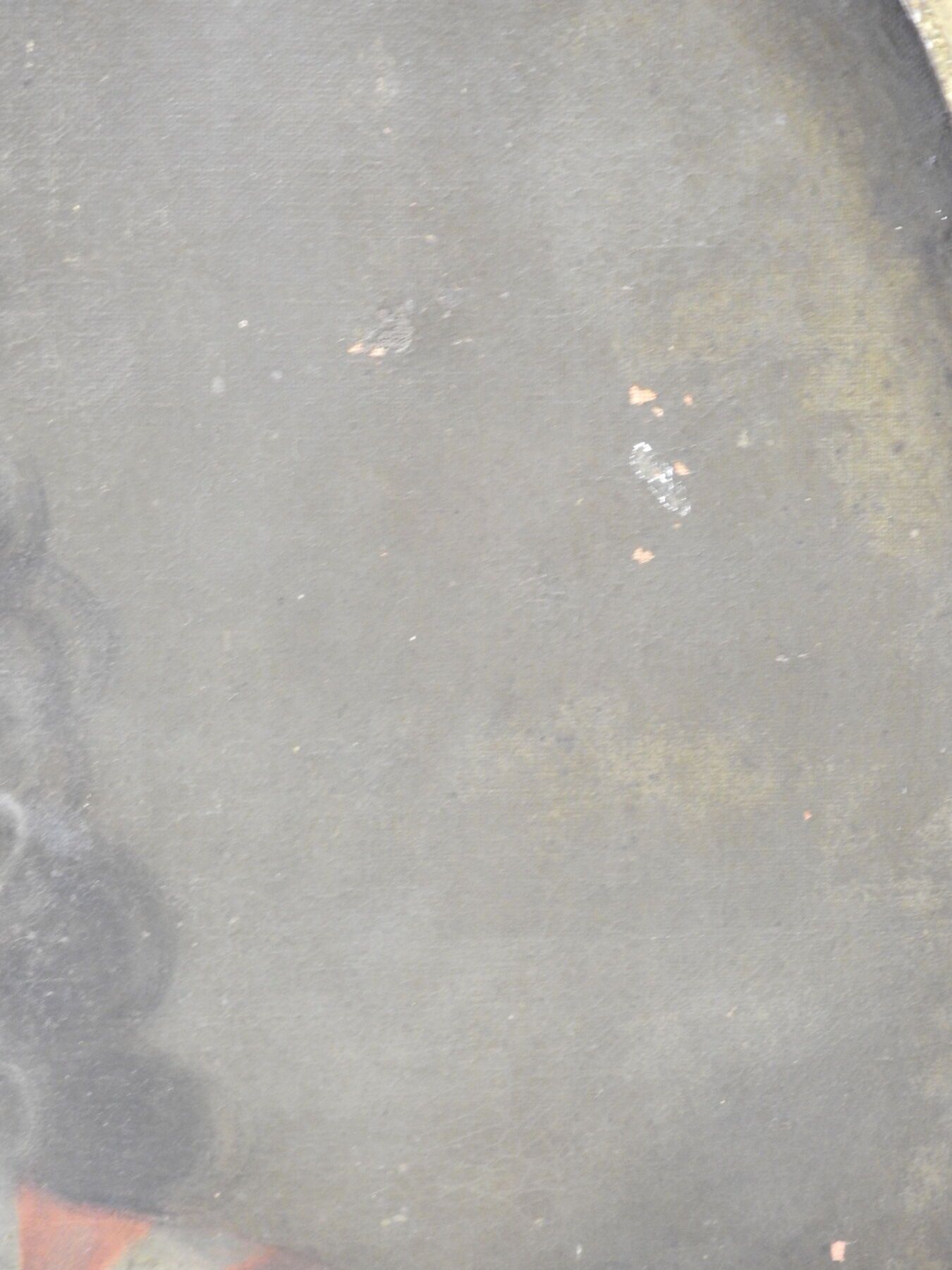 Early 18th century FRENCH school. Portrait of Girault III de Planchoury. Oil on canvas with oval view. Marked annotation at the top. 81.5 x 67 cm. Gilded wood frame decorated with shells from the XVIIIth century. 106 x 90 cm (wear and small lacks to the canvas)