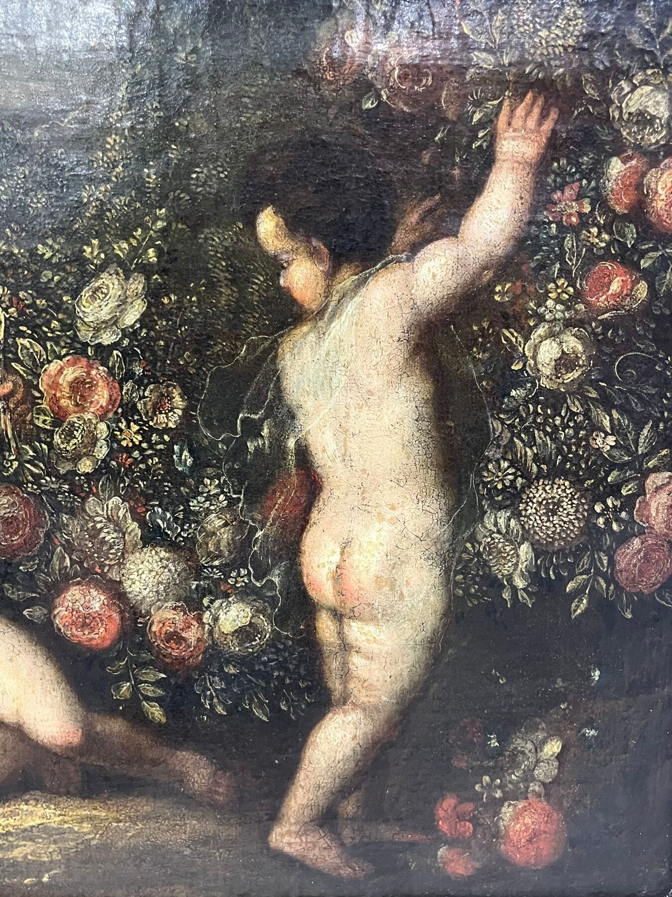FLEMISH SCHOOL circa 1700: Two putti in front of a flowering…
