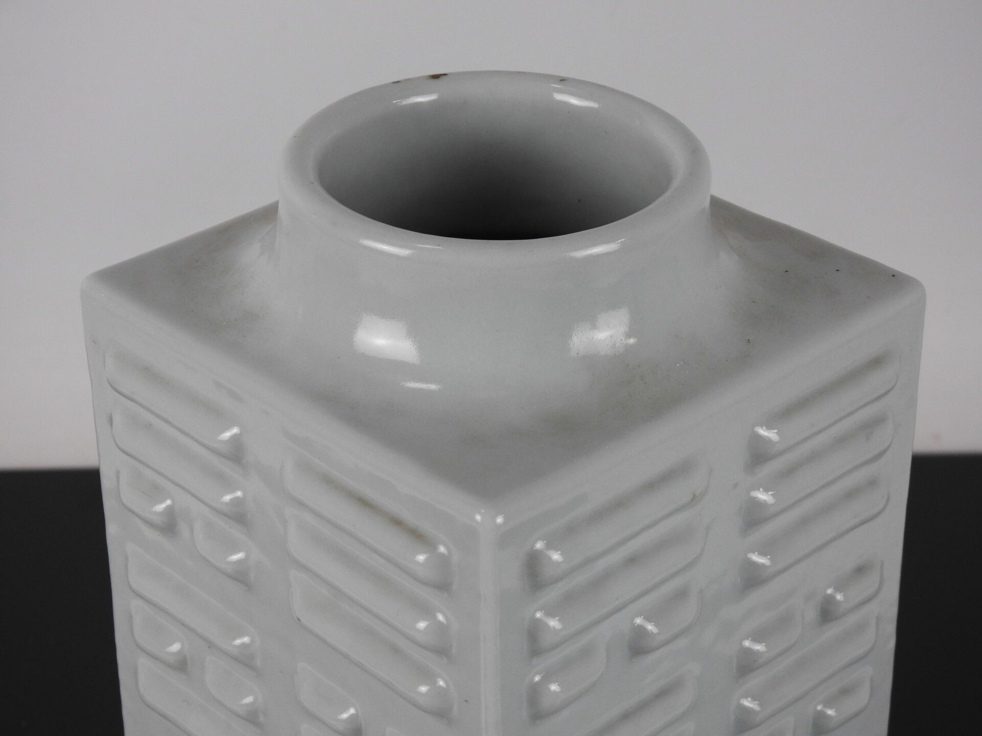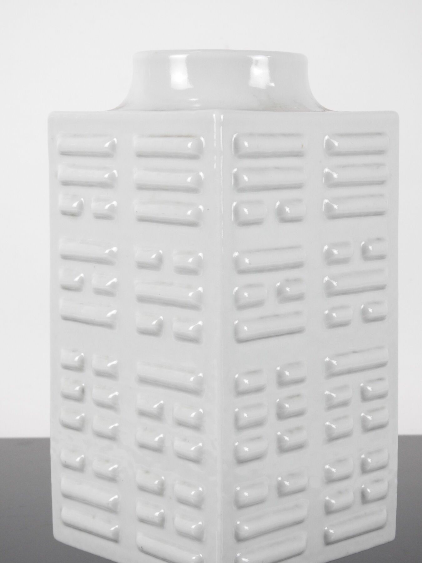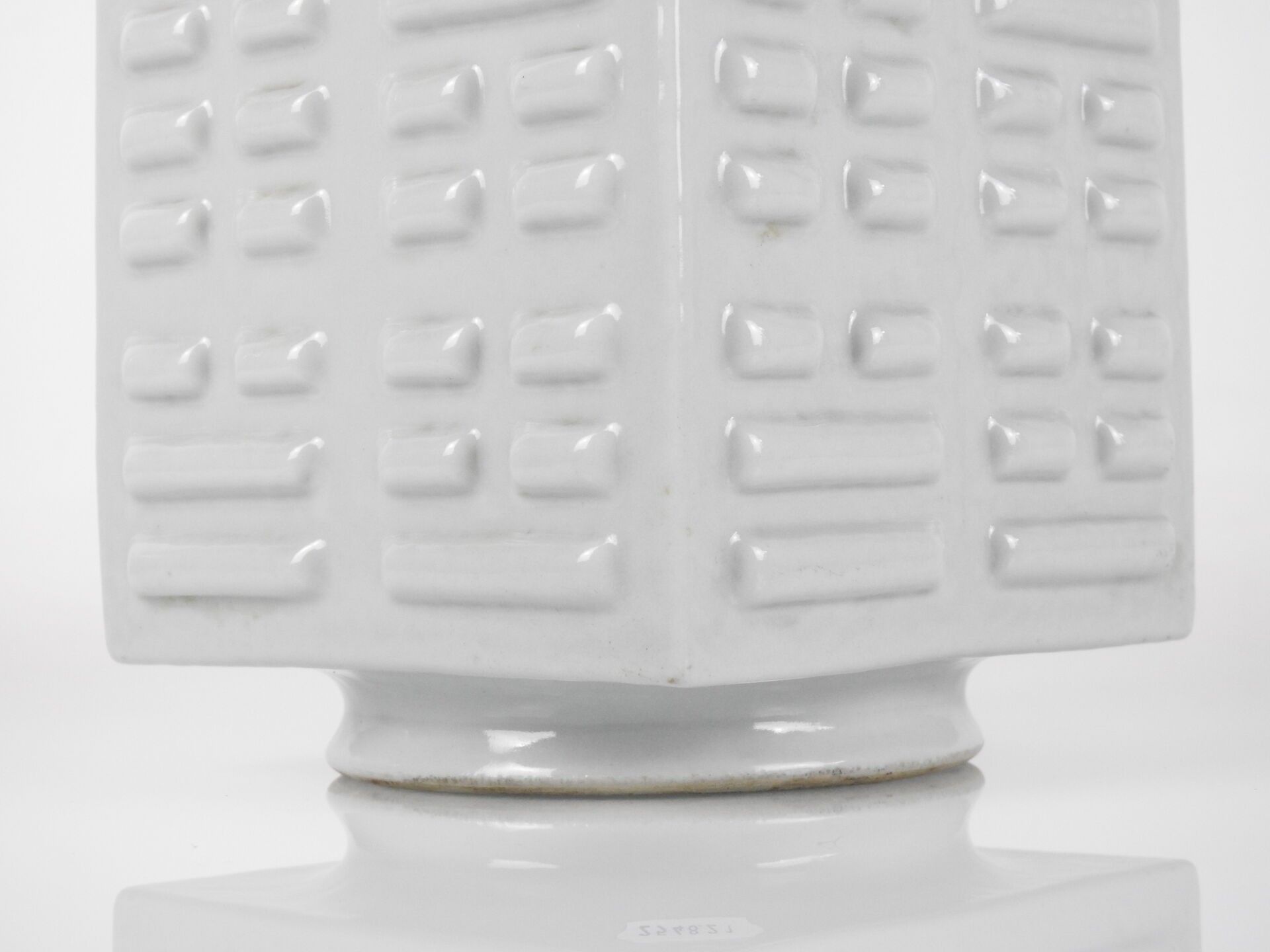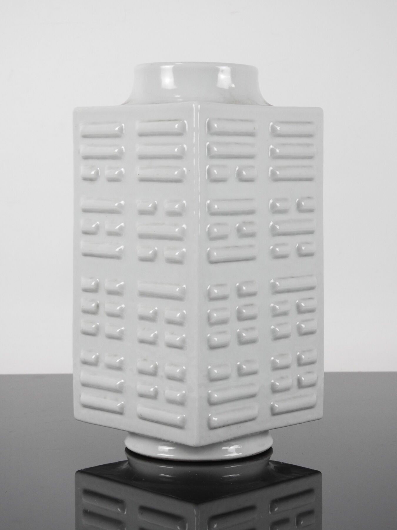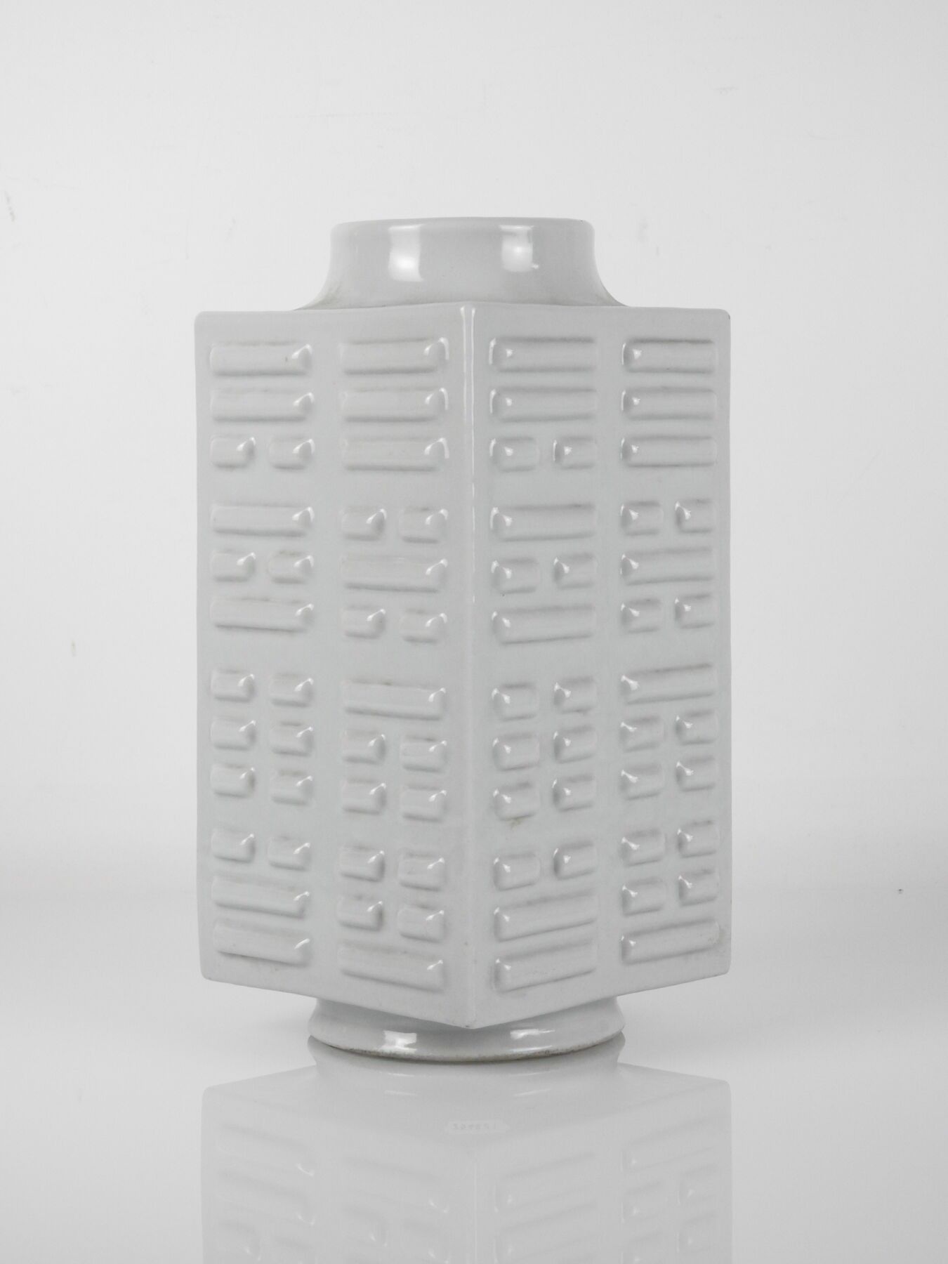 CHINA - Guangxu period (1875-1908) : A "guan" type celadon crackled enamelled porcelain Cong vase, each side decorated with eight "bagua" trigrams. Guangxu six-character mark in kaishu on the reverse of the base. Height: 27.5 cm. Width: 13 x 13 cm (formerly mounted as a lamp, small lack of glaze on the neck)
