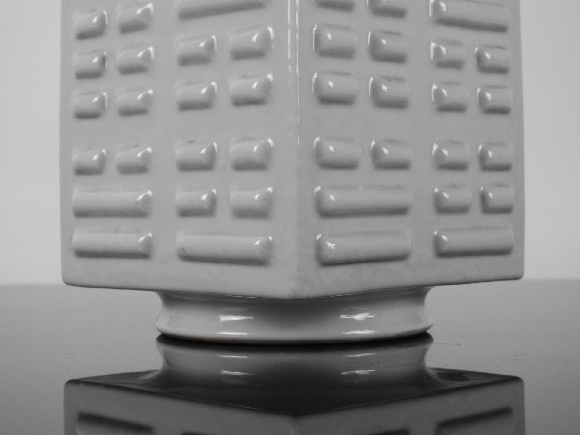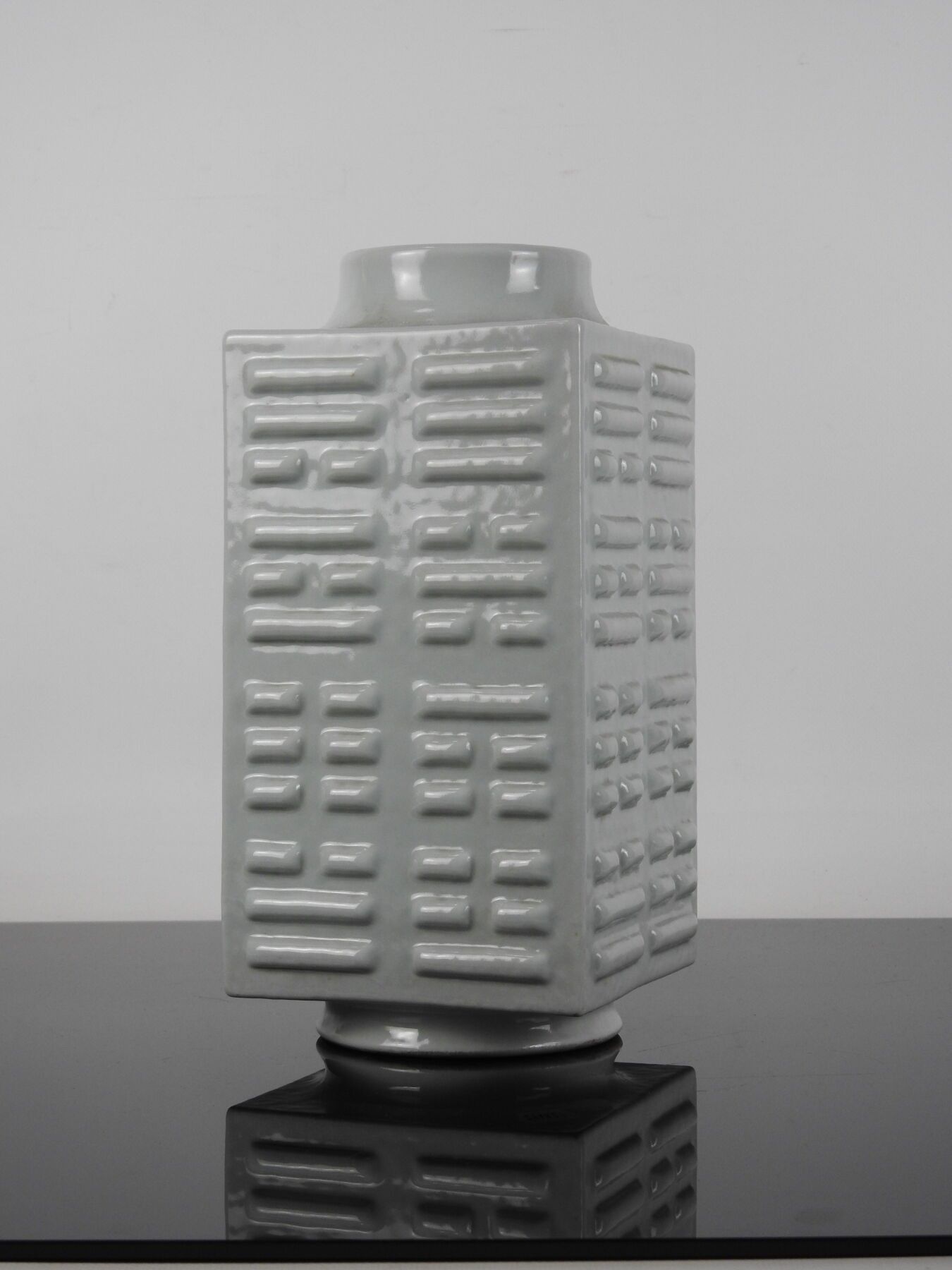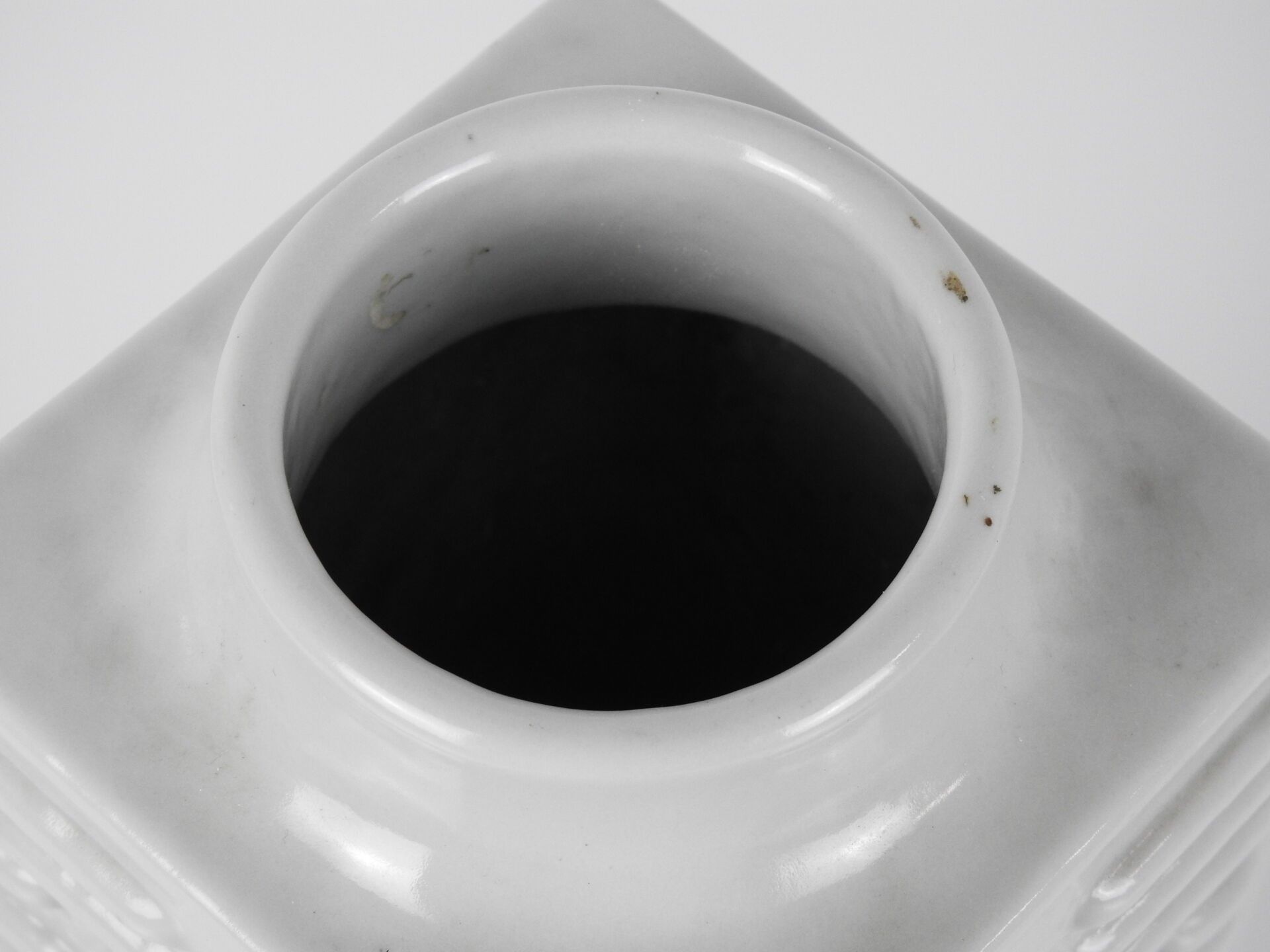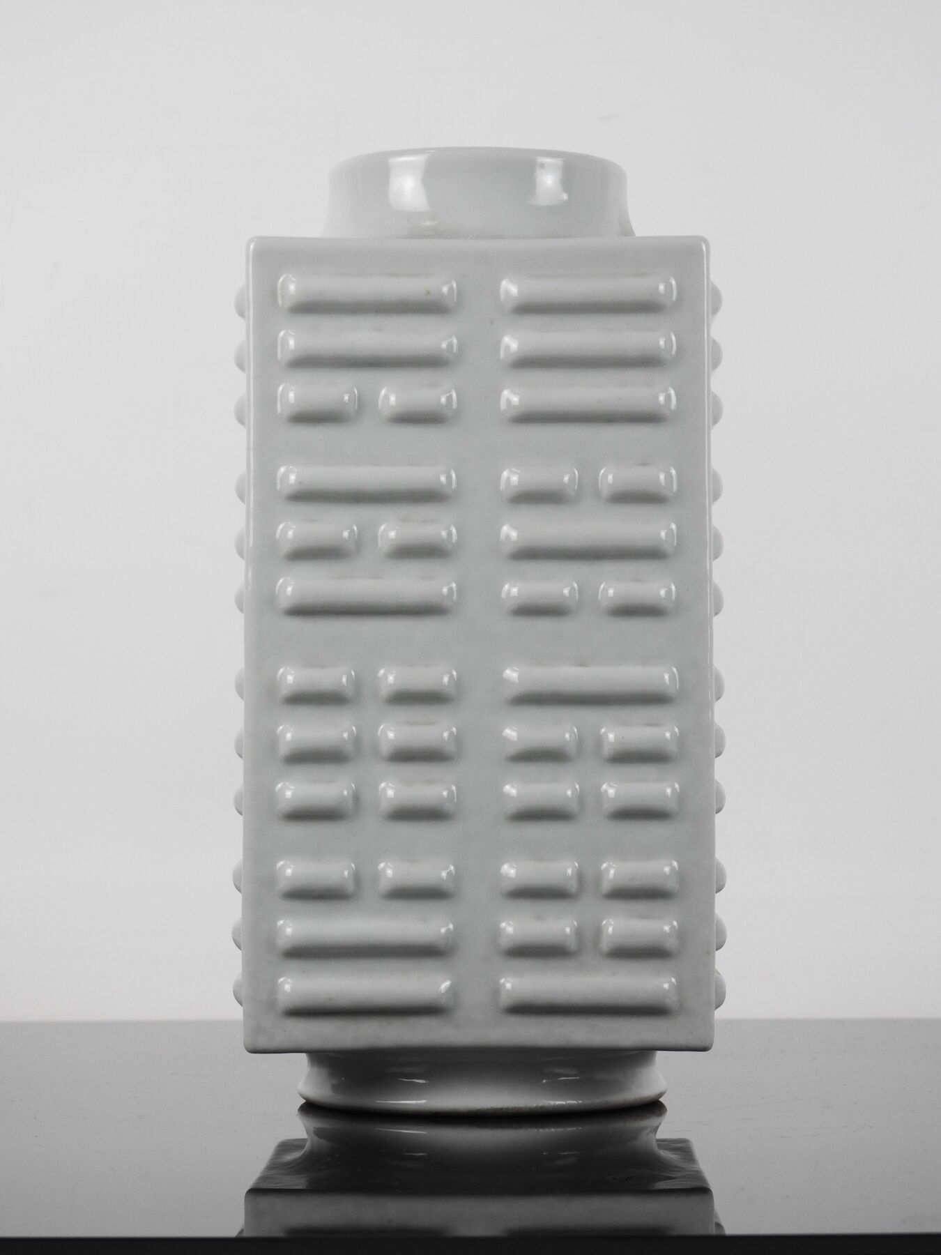 CHINA - Guangxu period (1875-1908) : A "guan" type celadon crackled enamelled porcelain Cong vase, each side decorated with eight "bagua" trigrams. Guangxu six-character mark in kaishu on the reverse of the base. Height: 27.5 cm. Width: 13 x 13 cm (formerly mounted as a lamp, small lack of glaze on the neck)