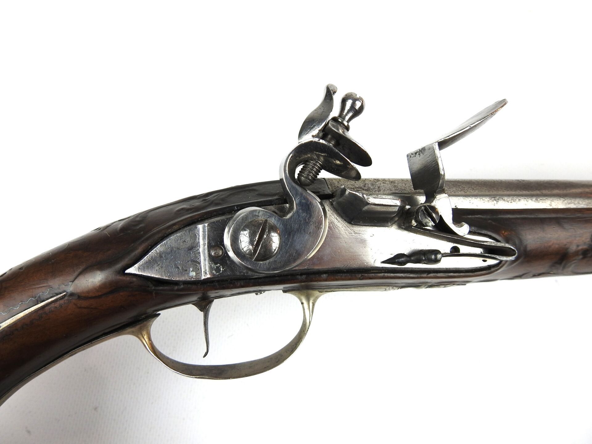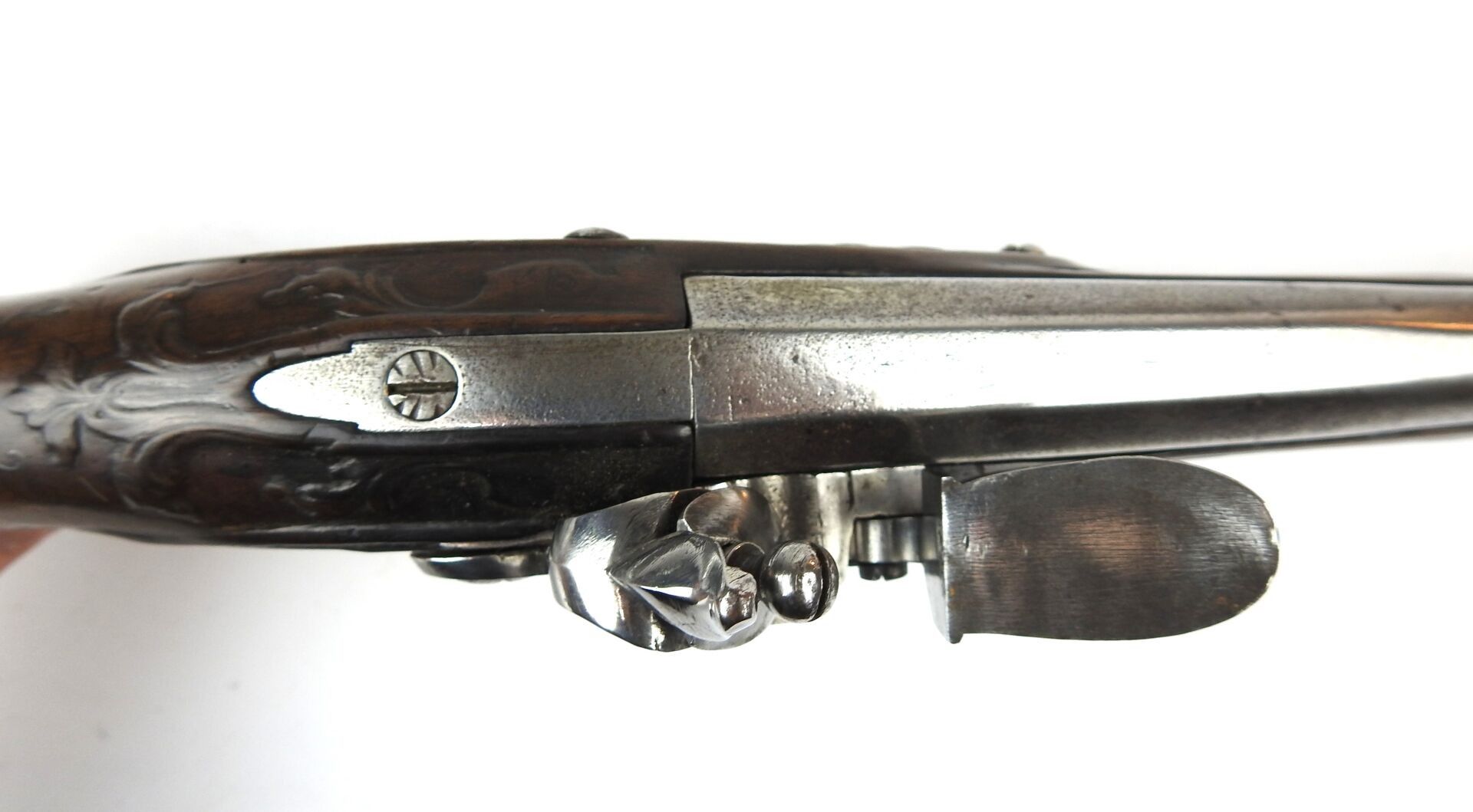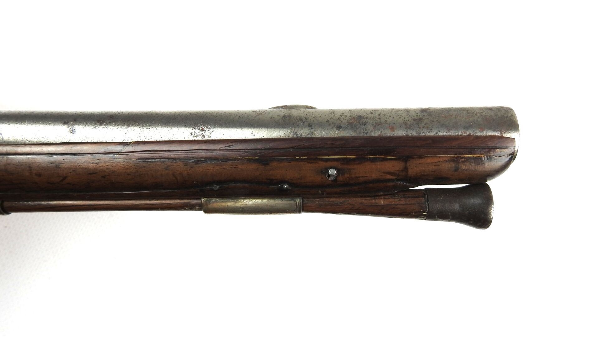LONG flintlock ARCON PISTOL with walnut frame, iron and silv…