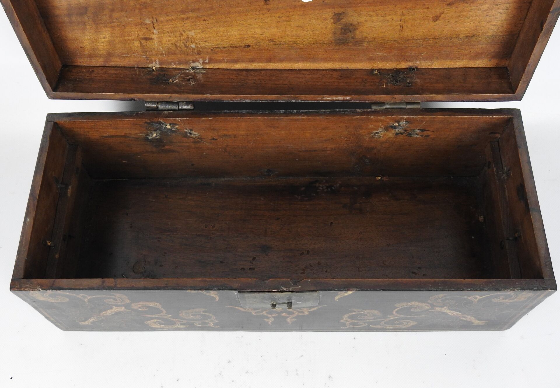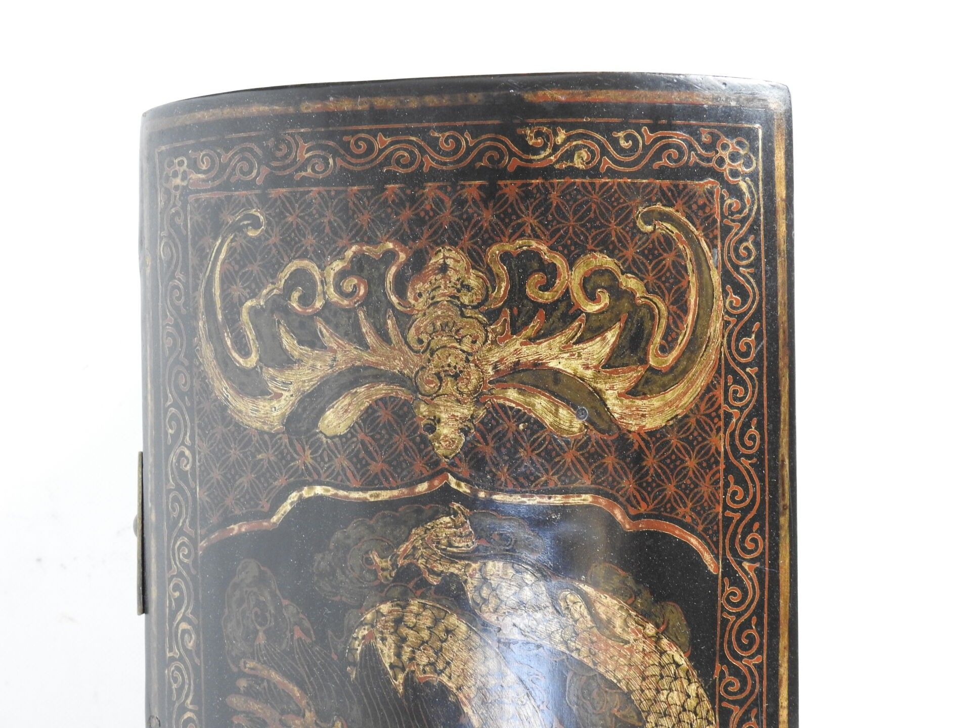 CHINA: Lacquered wood neck rest decorated with dragons chasi…