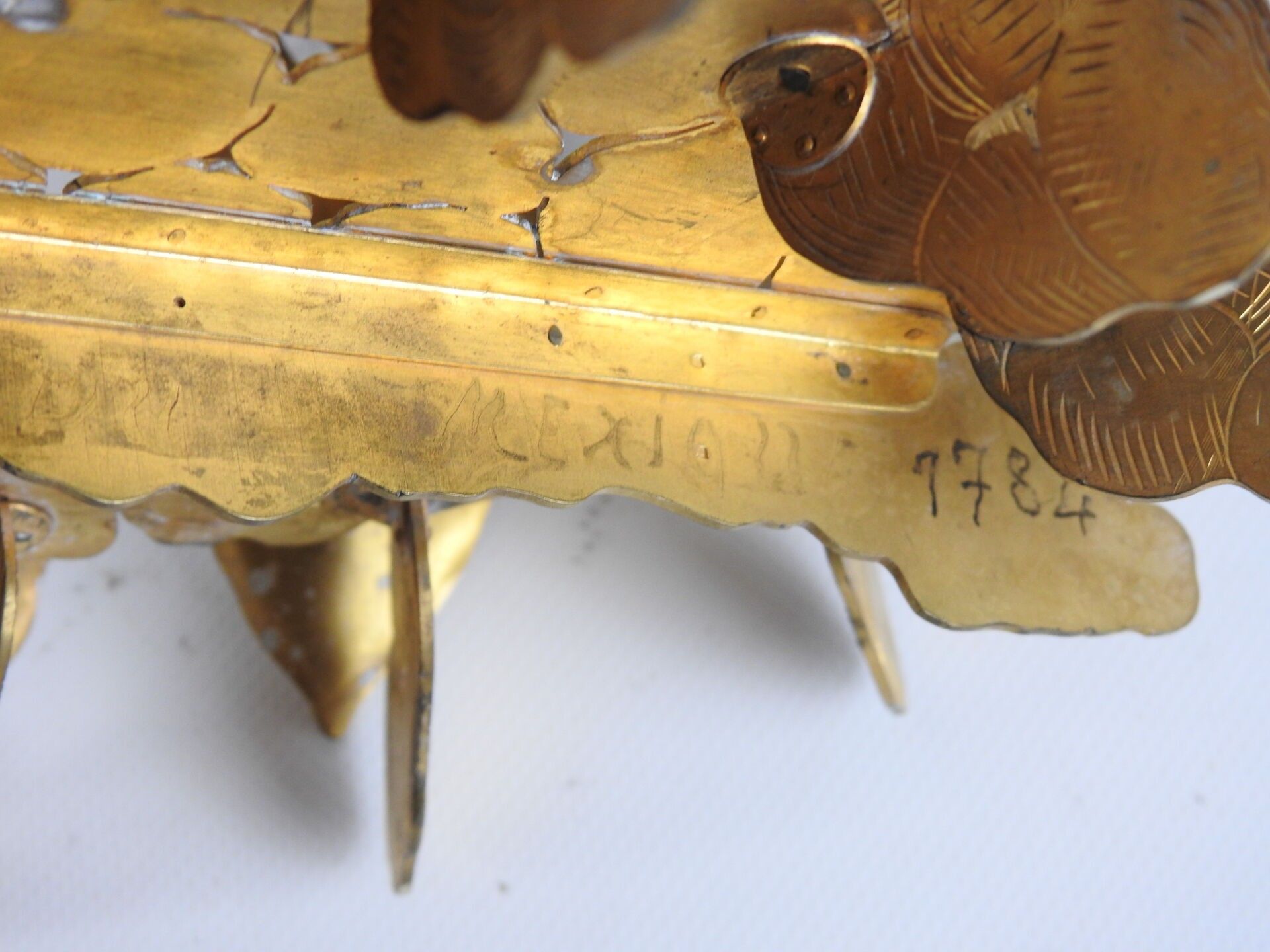 A chased bronze temple-shaped PRESENTOIR decorated with rushes. Marked Mexico 1784. Late 19th century. H: 40 - W: 34 cm