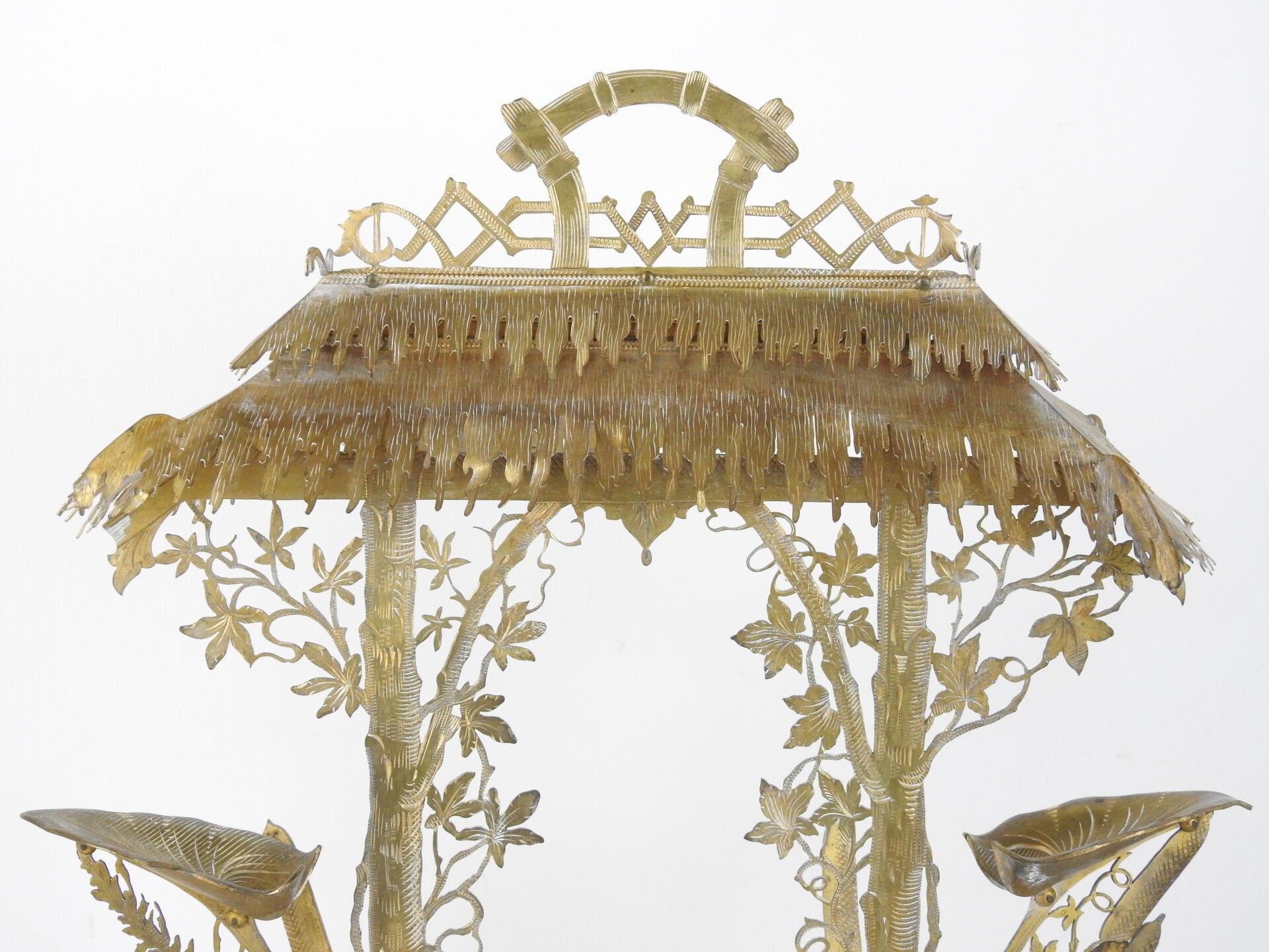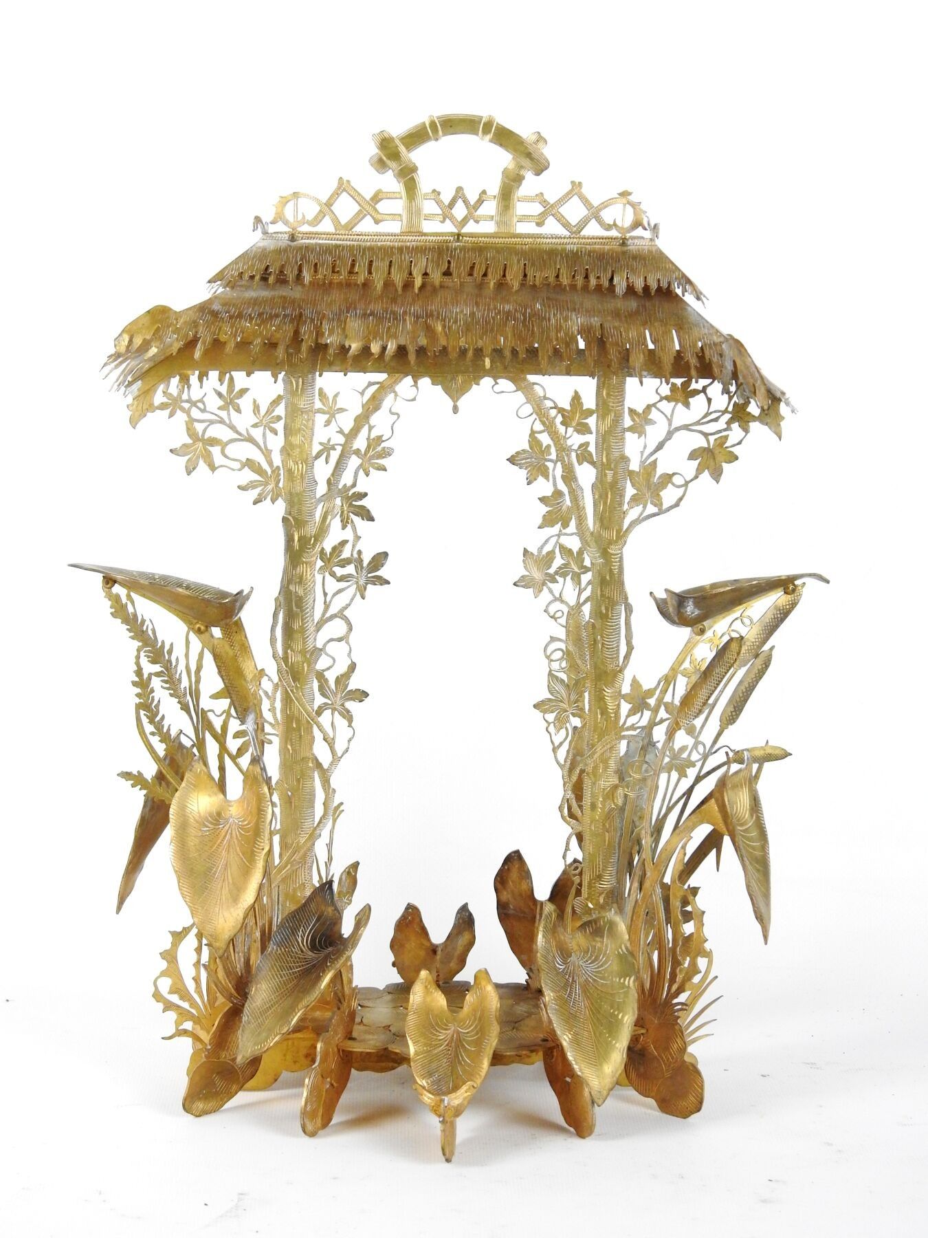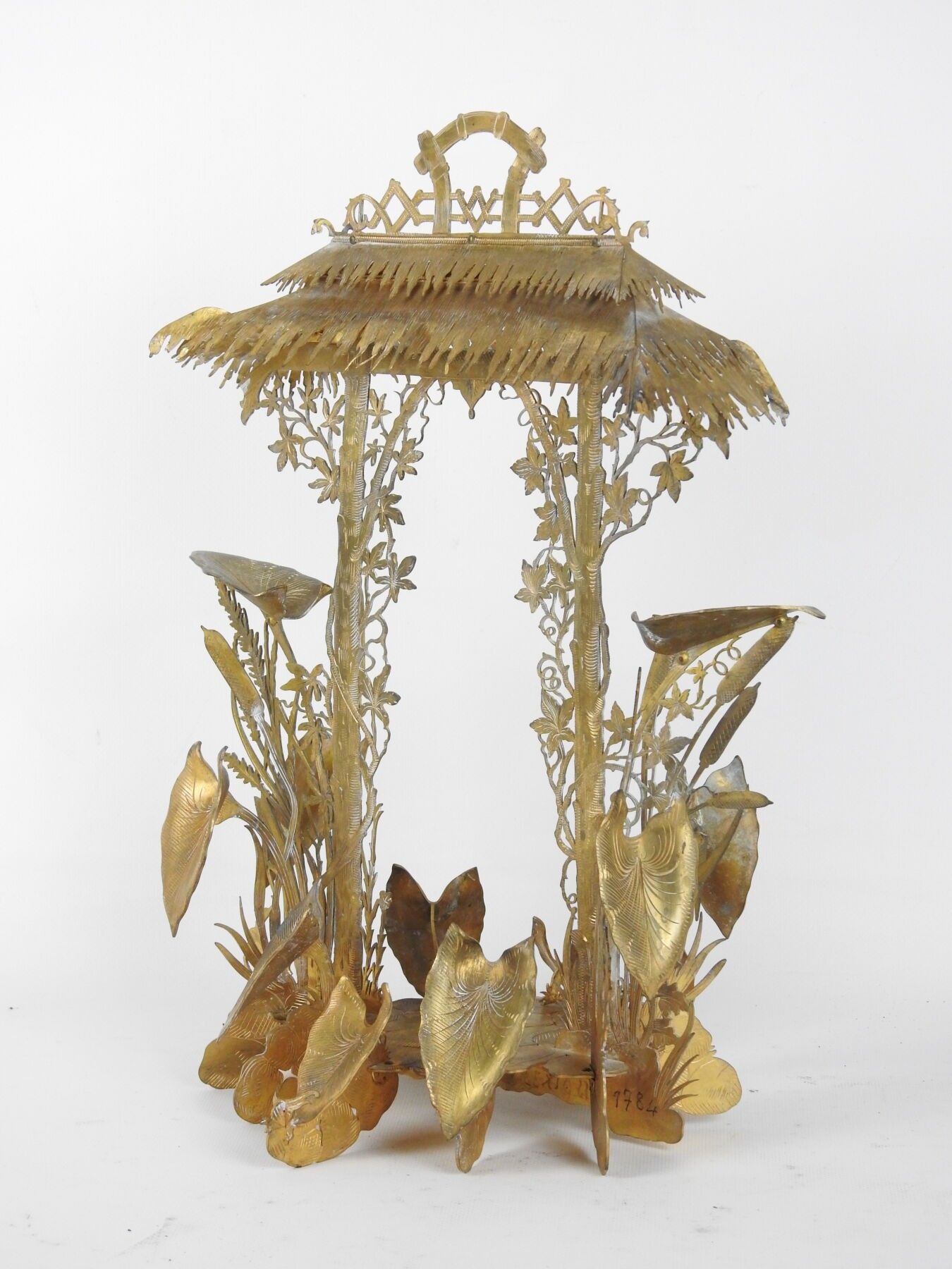 A chased bronze temple-shaped PRESENTOIR decorated with rush…