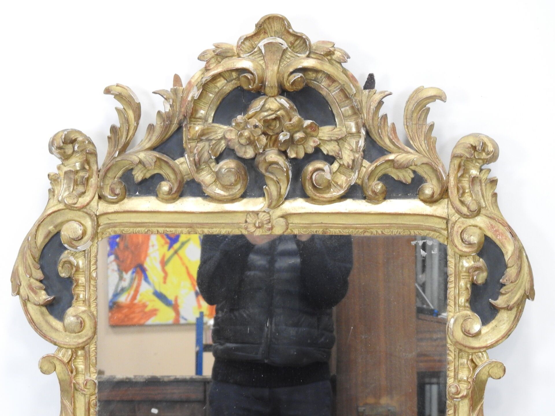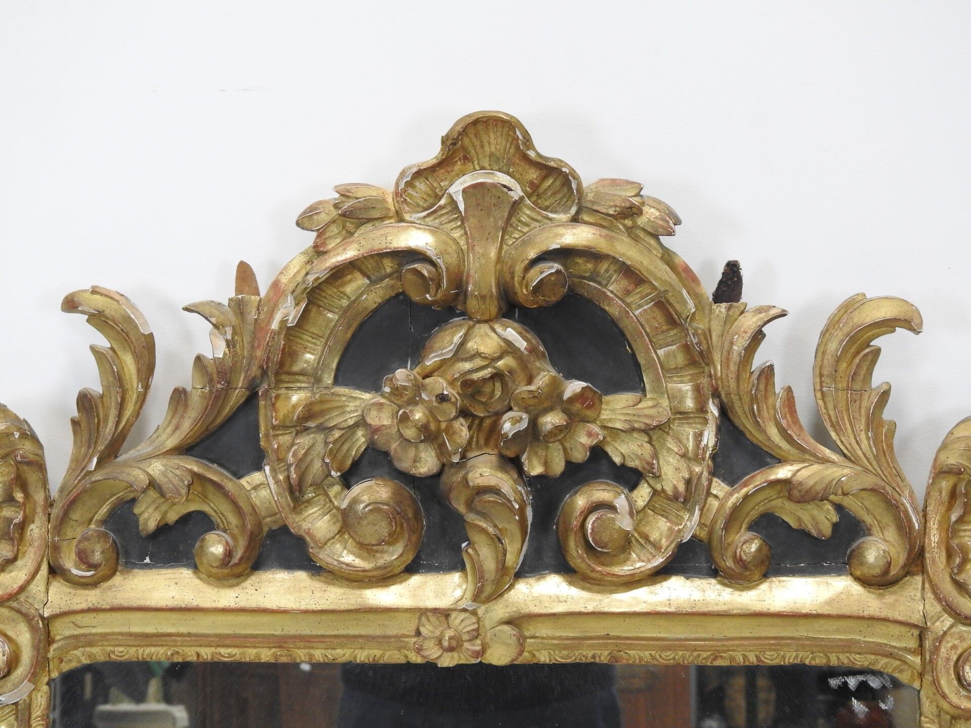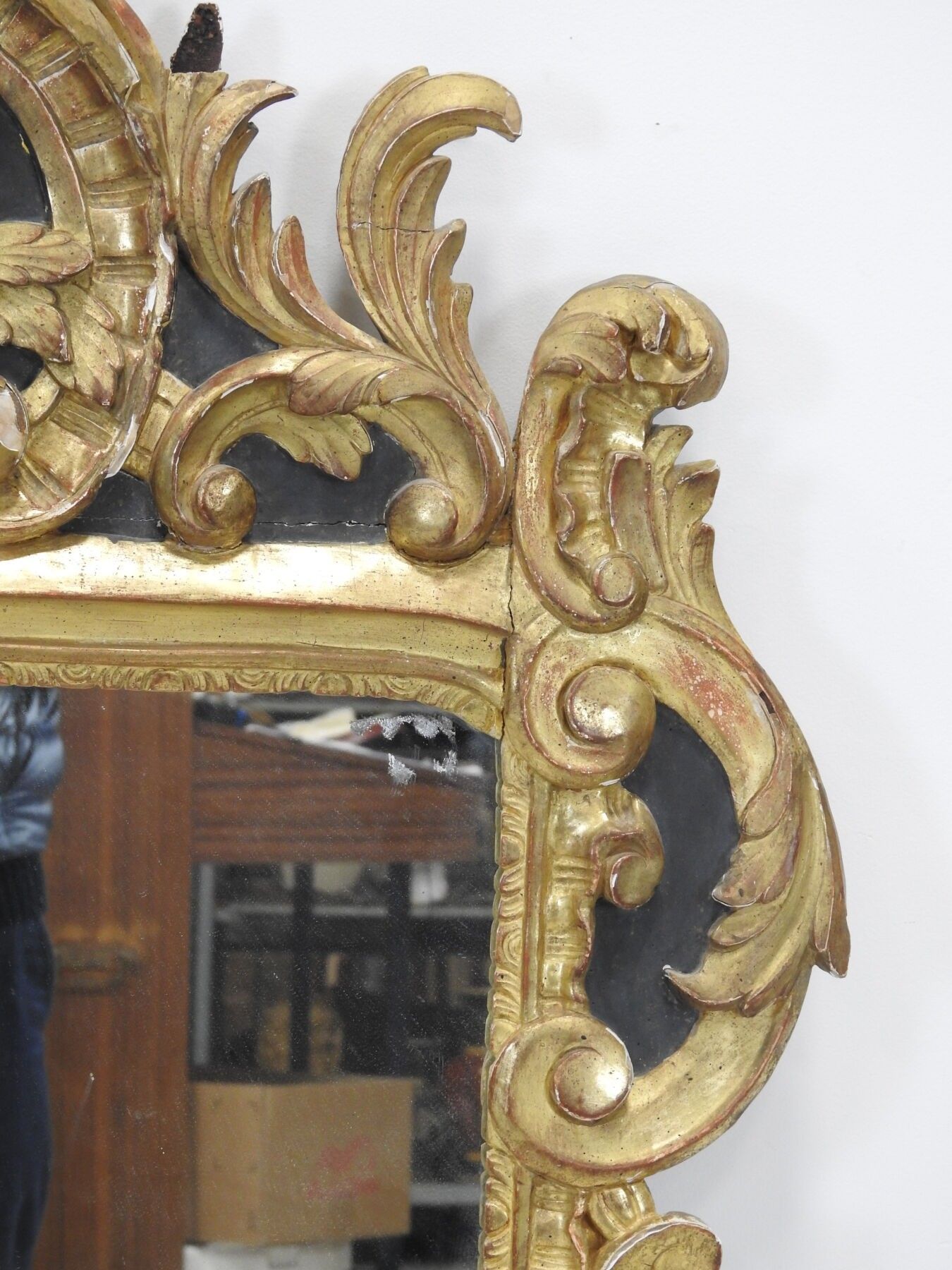 Wood and gilded stucco MIRROR, the pediment decorated with s…