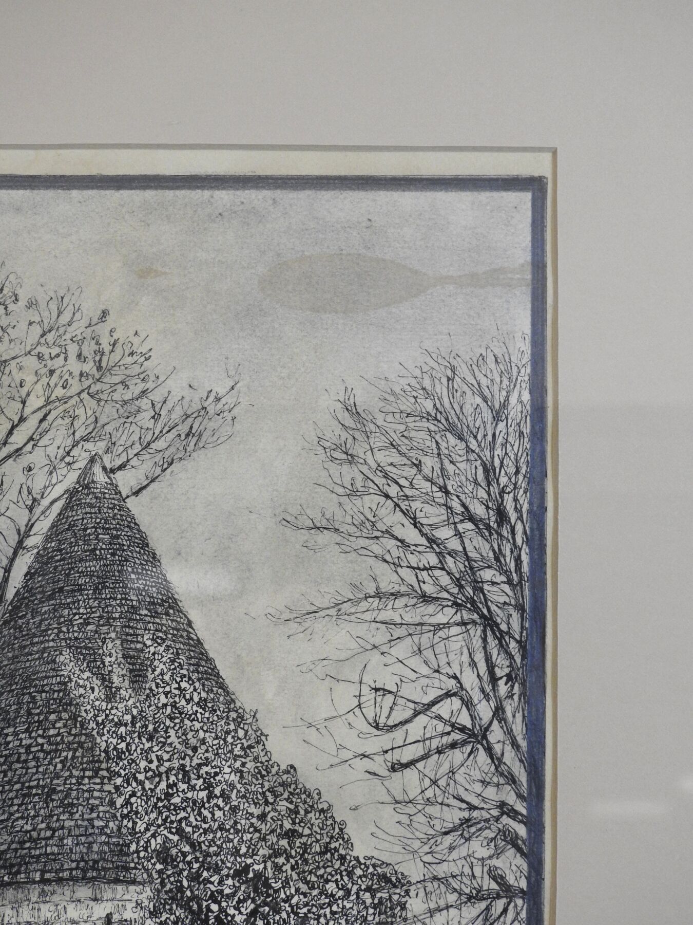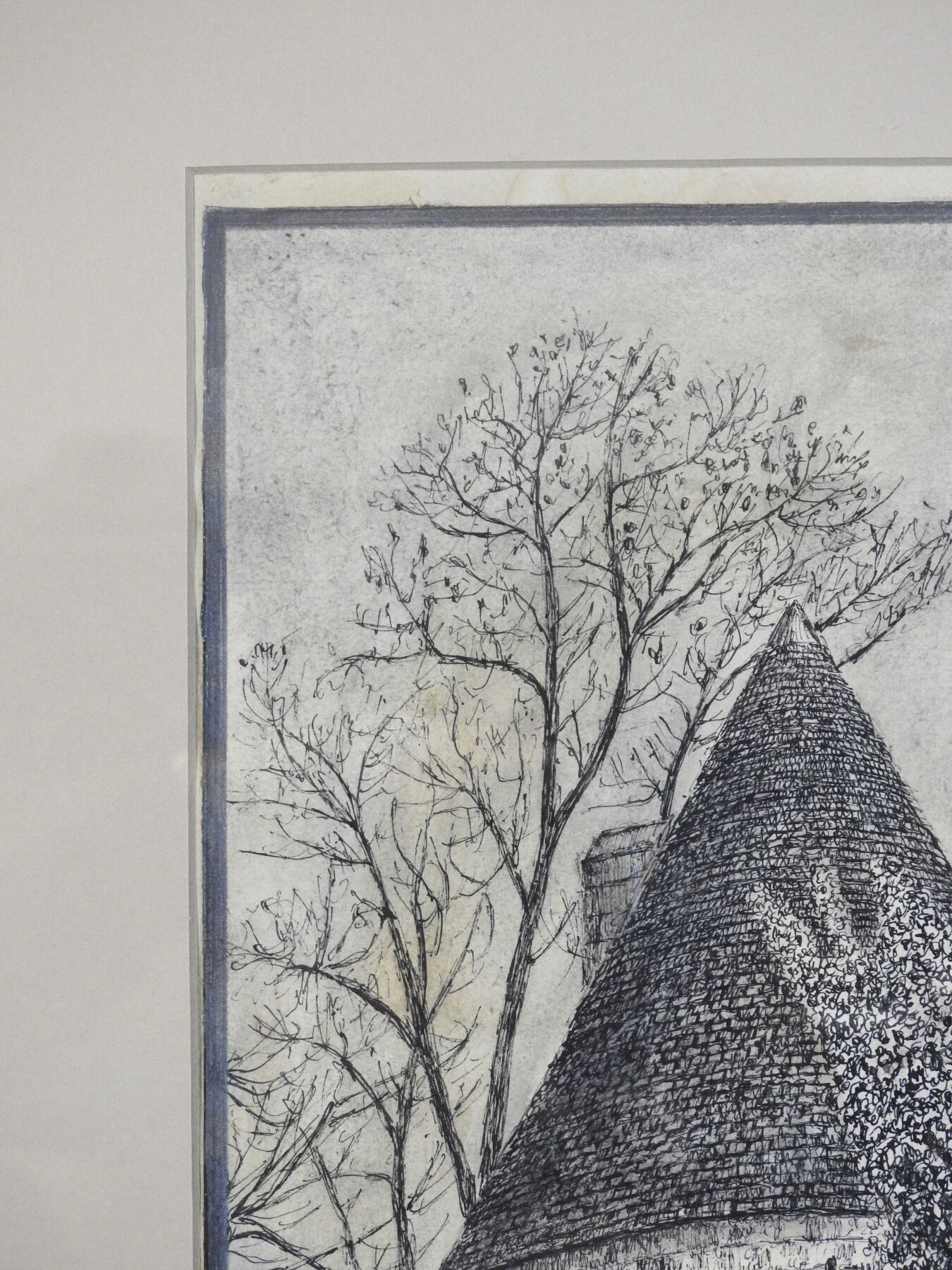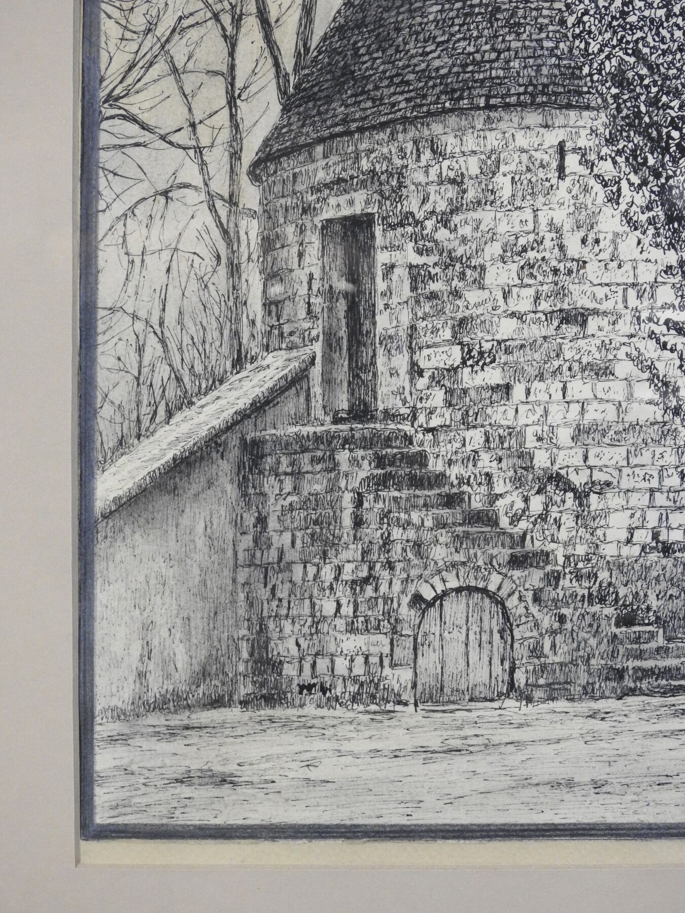 Marcel BASCOULARD (1913-1978): The gunpowder tower, boulevard Lamarck in Bourges (with foliage). Ink and wash. Signed and dated May 57 at bottom. 36 x 23 cm. Size (Nielsen frame): 50 x 40 cm.