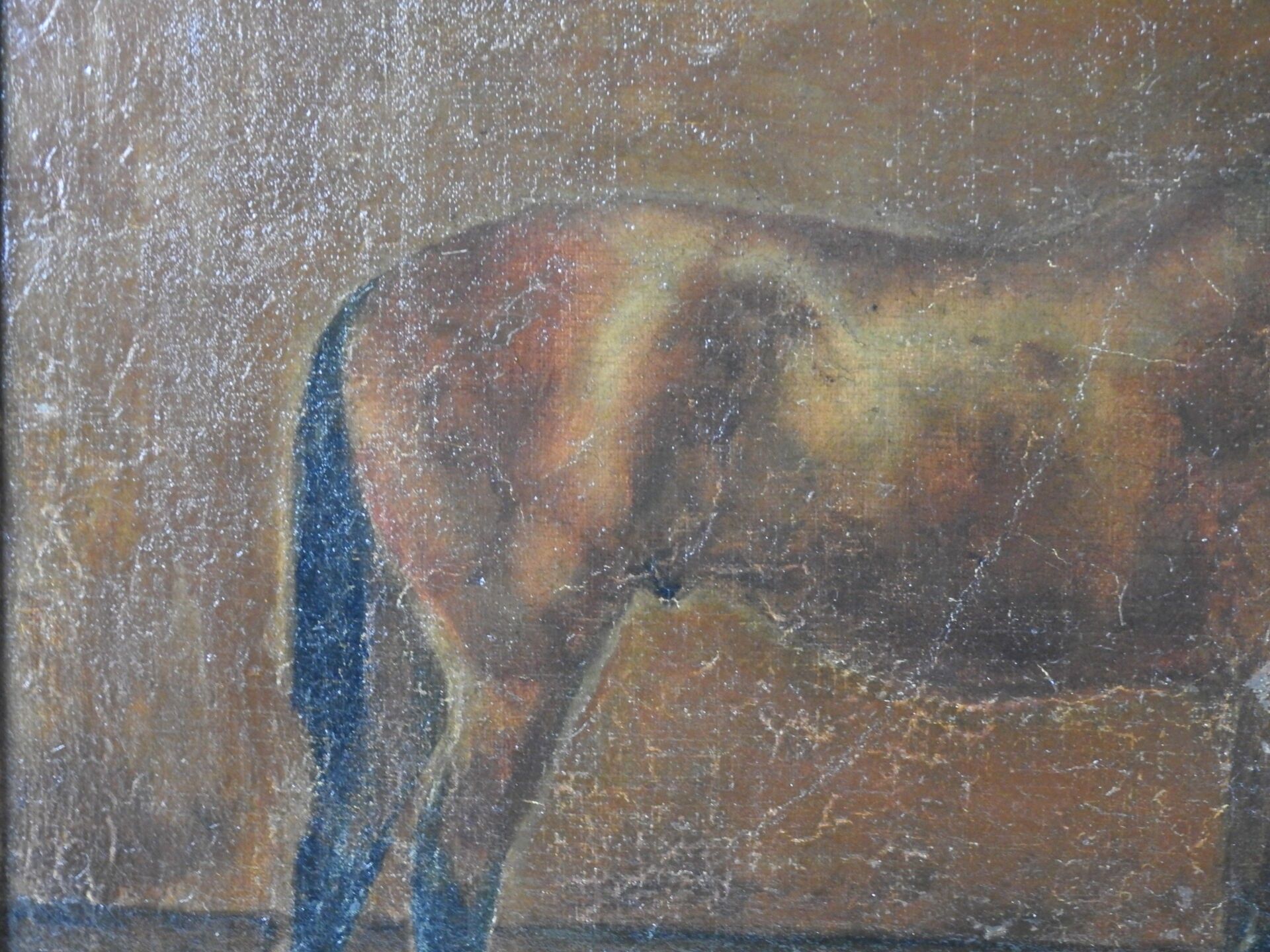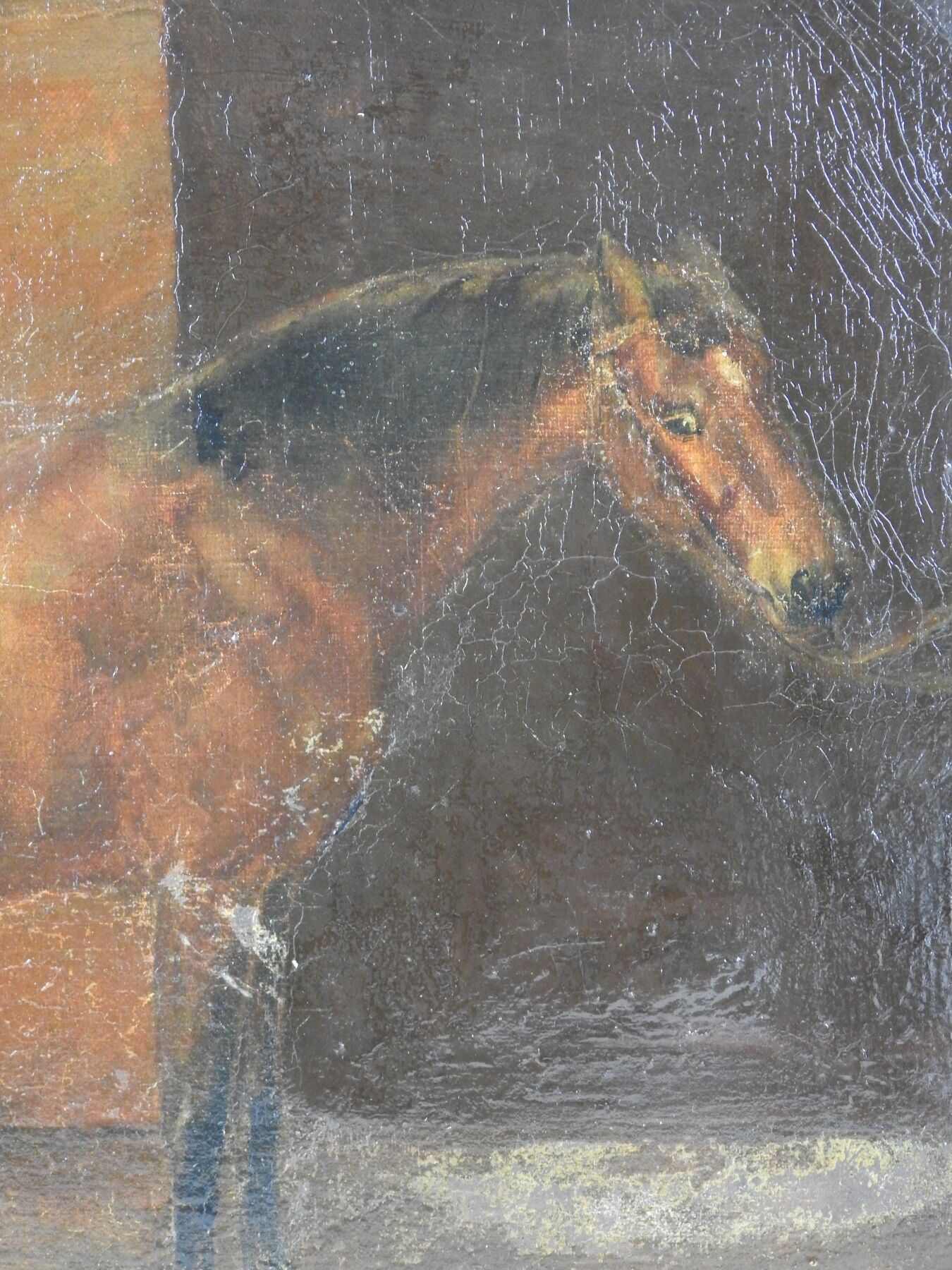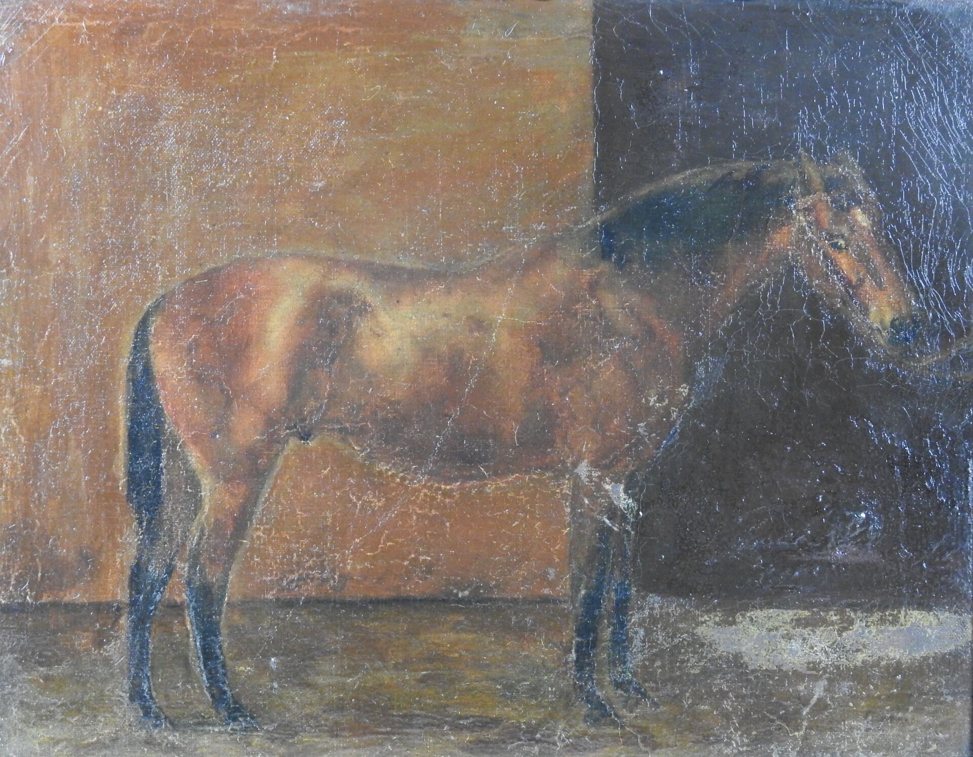- Horse in the stable. Oil on canvas. Signed lower right. 33 x 42 cm. Wear and restorations
