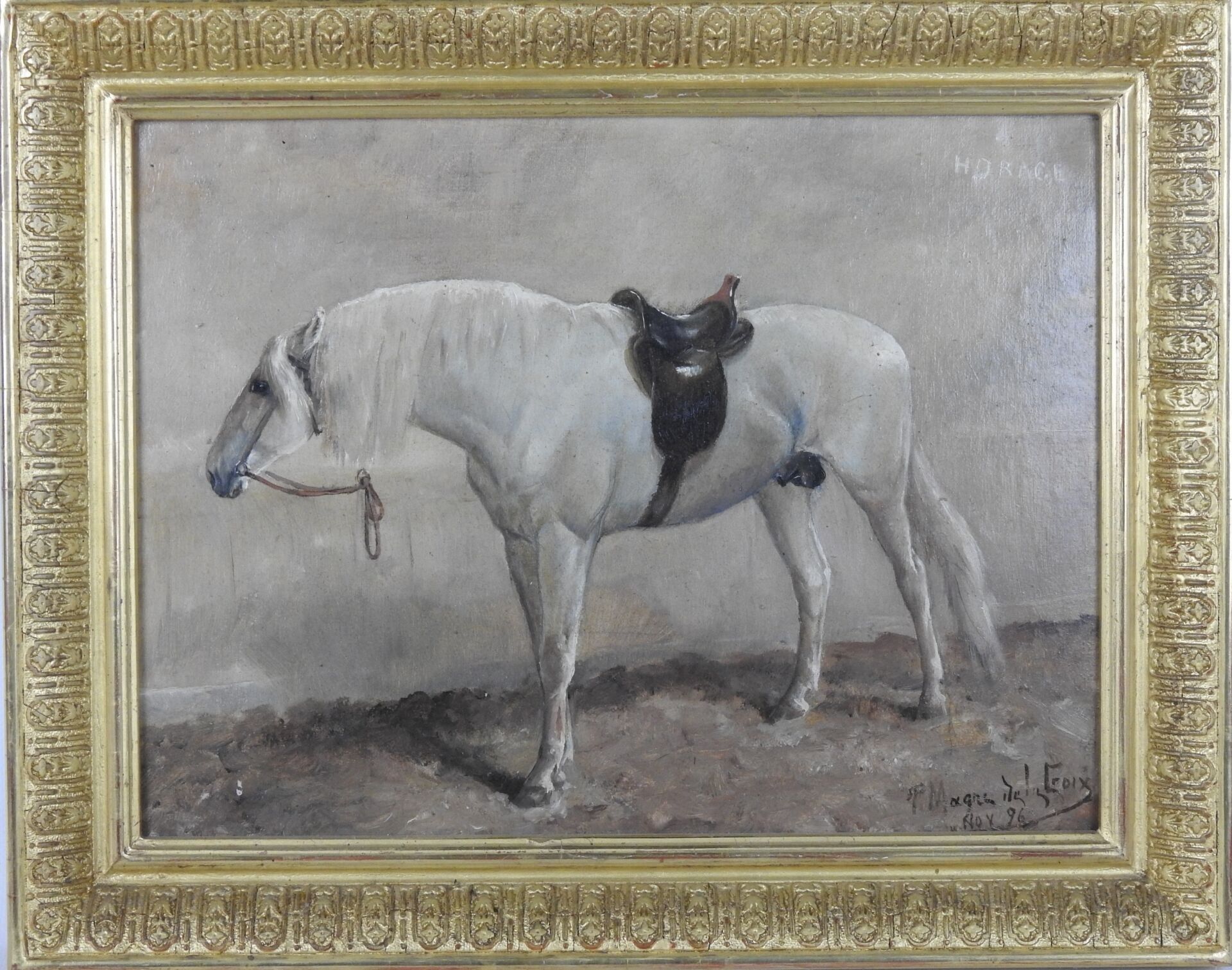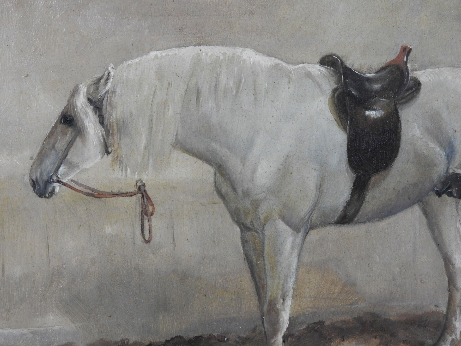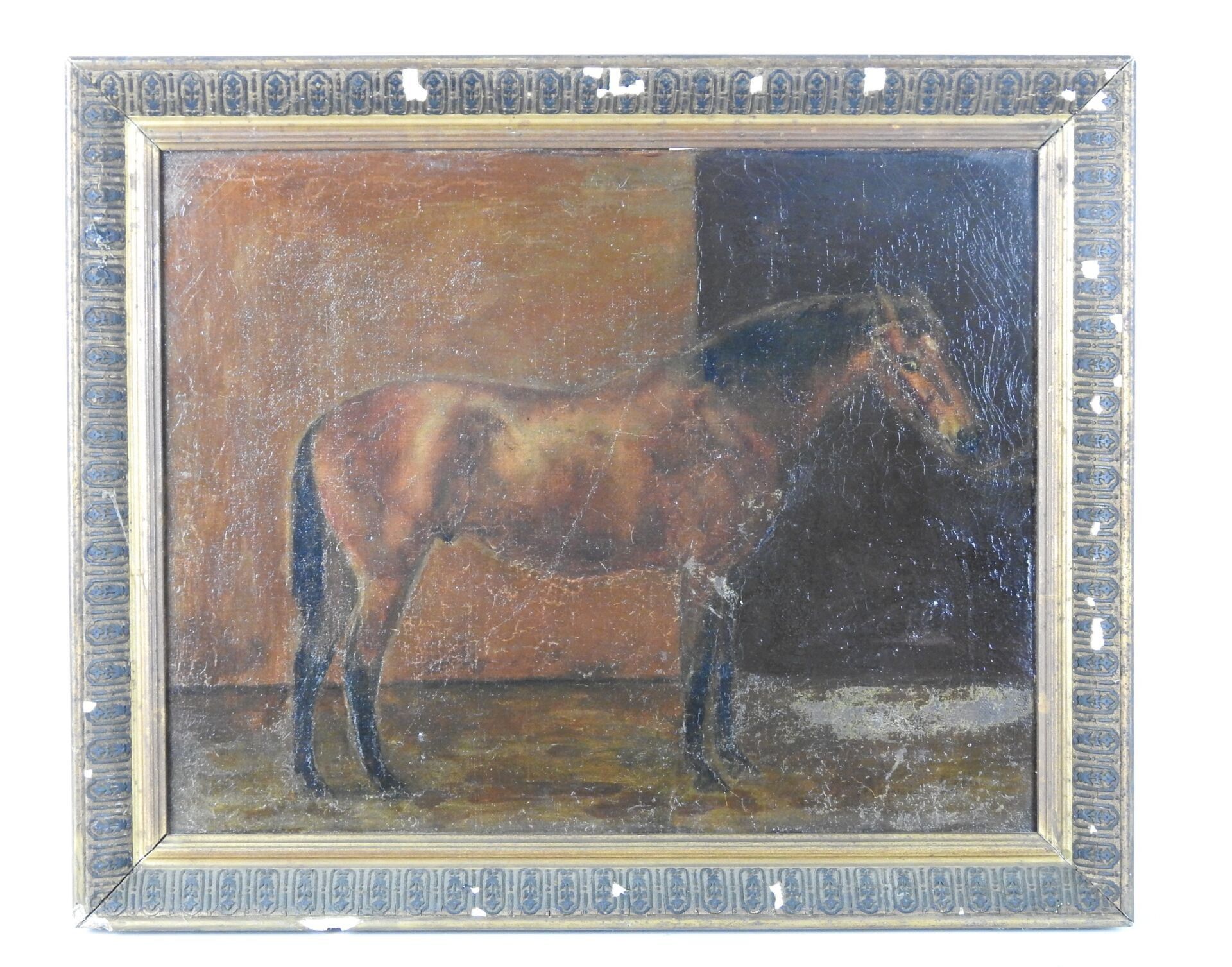 - Horse in the stable. Oil on canvas. Signed lower right. 33 x 42 cm. Wear and restorations