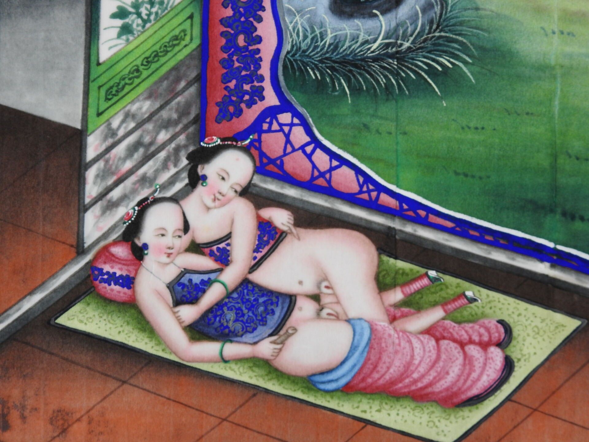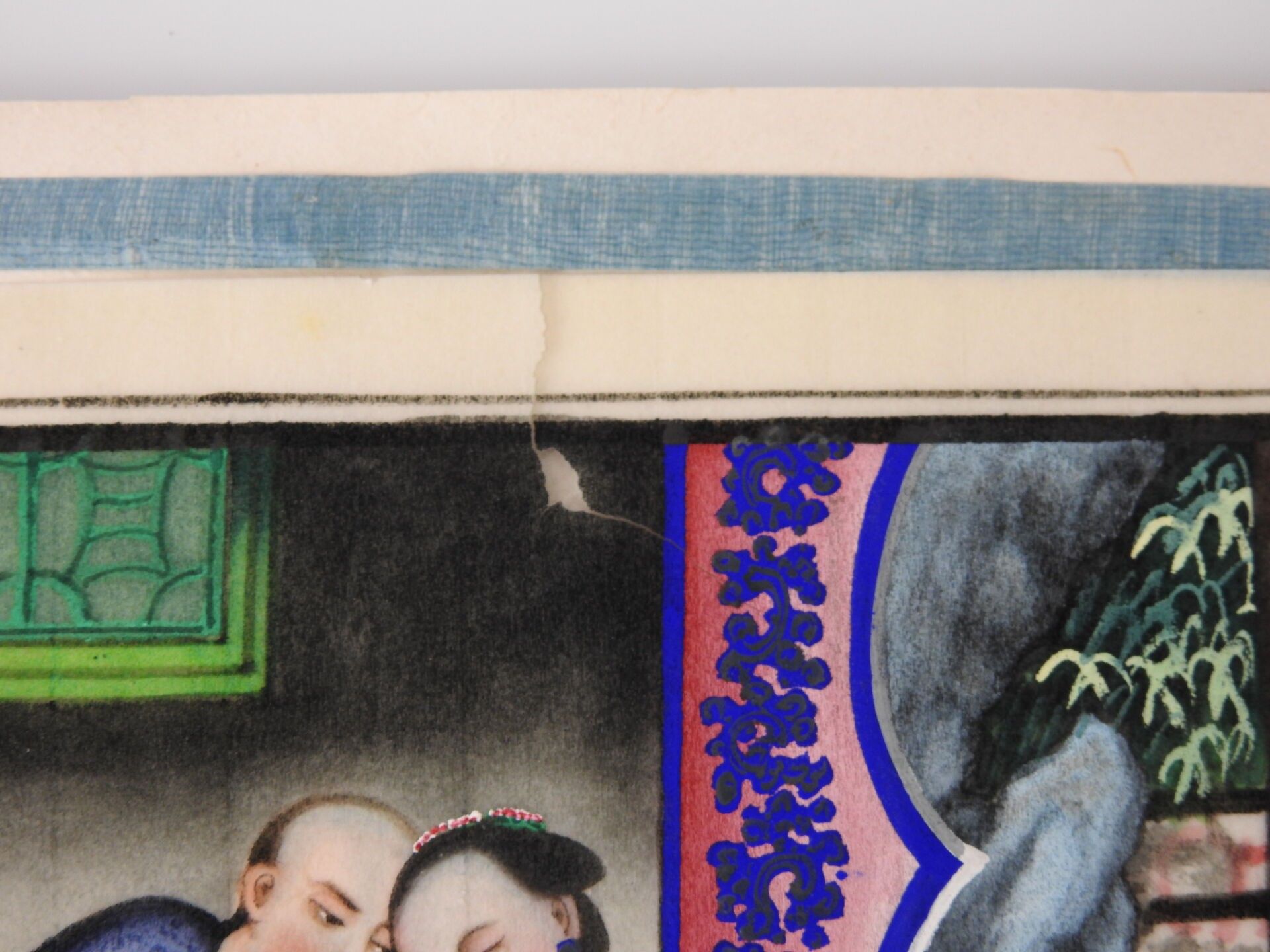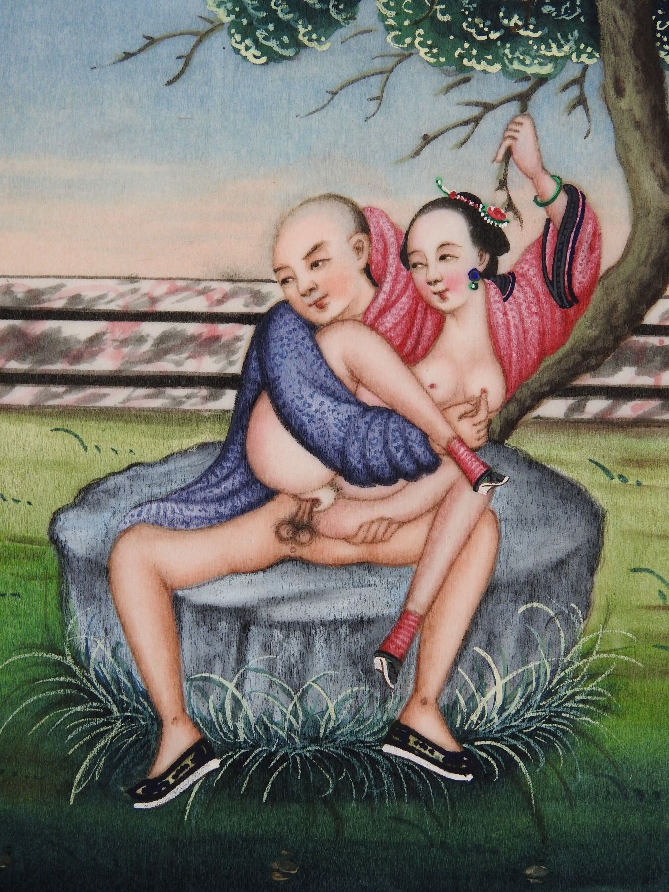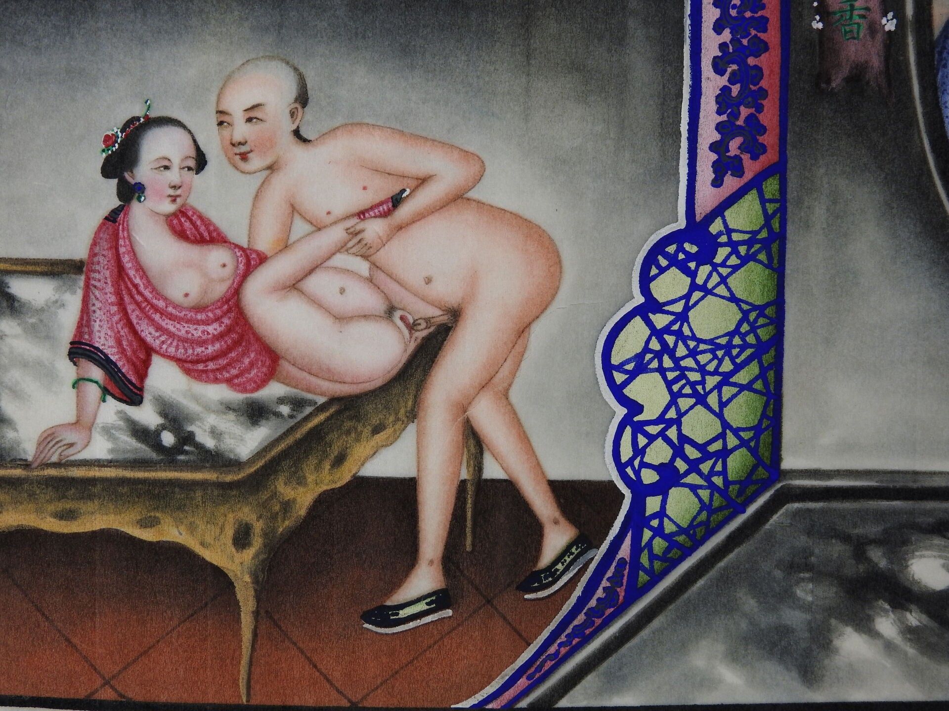 CANTON: Album containing twelve gouaches on paper depicting erotic scenes. Late 19th century. Size (photos): 23 x 15 cm. Size (Italian format): 21 x 29 cm