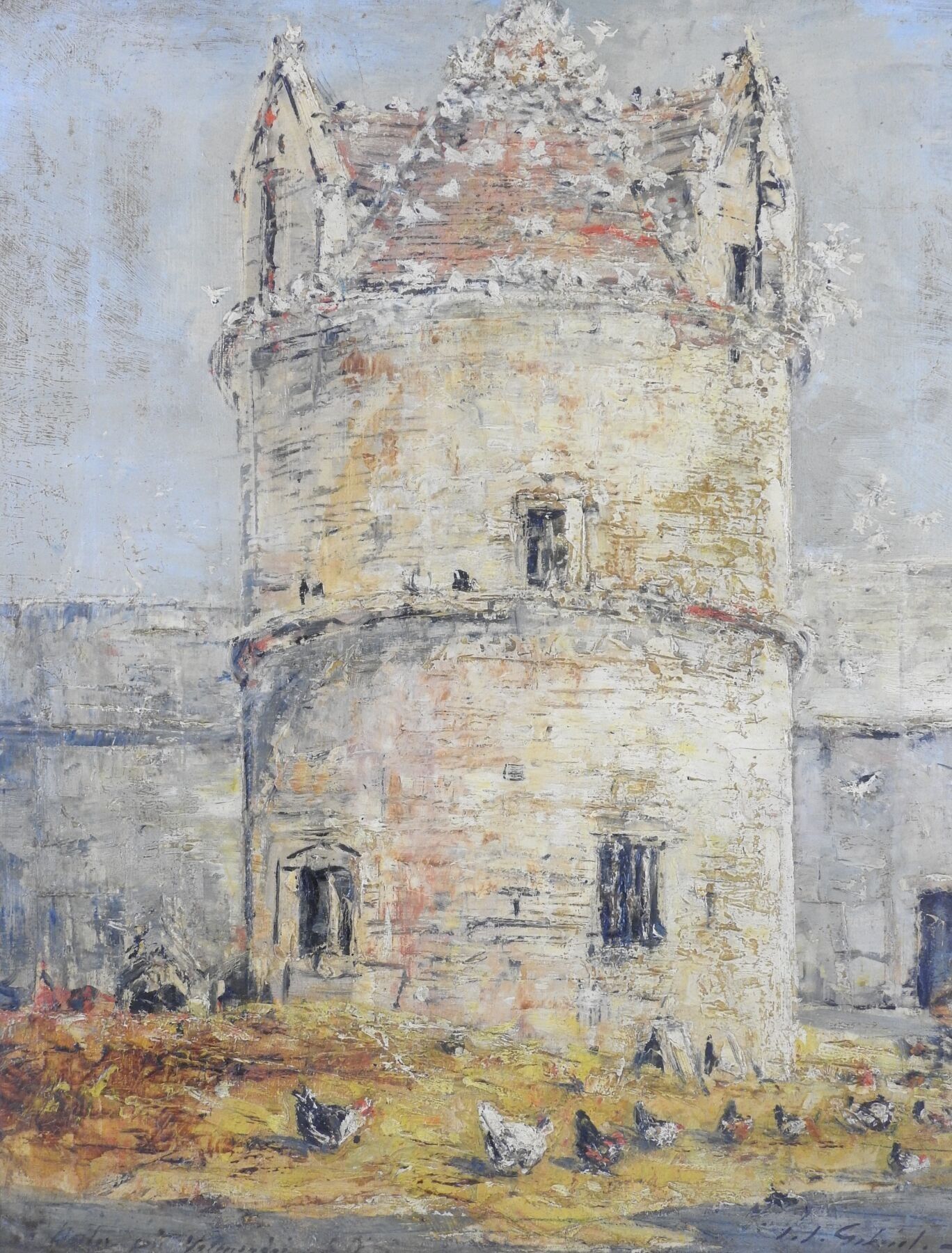 Jean Justin GABRIEL (1837 - 1923): Dovecote under feudalism, small Renaissance door. Oil on canvas. 40 x 33 cm.