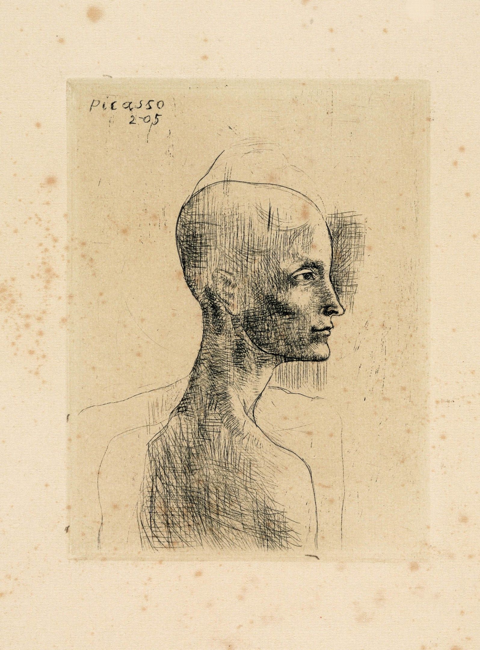 Etching. From the edition of 250. Signed and dated upper left in the plate: Picasso 2-05. Image 12 × 9 cm on Van Gelder wove paper 38.1 × 30.3 cm. Published by Ambroise Vollard, Paris.