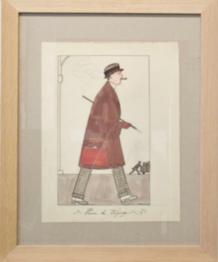 Edouard SAUNIER (1885-1918), "Pour le Voyage", drawing and watercolour on paper, signed lower right, framed, 32 x 25 cm.