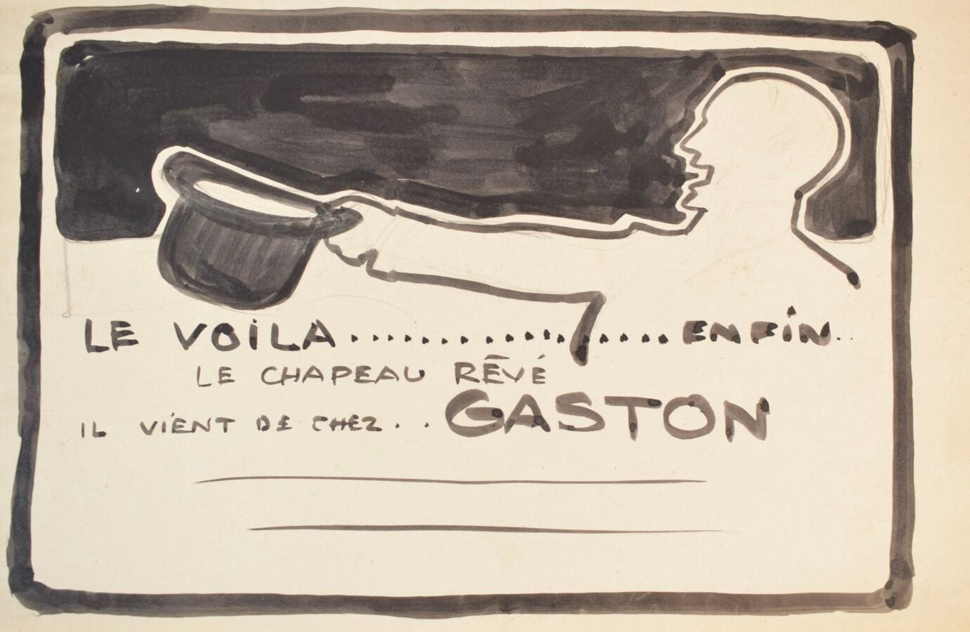 Edouard SAUNIER (1885-1918), "Le Voila... ENFIN, le chapeau rêvé...", ink and ink wash on tracing paper, 19.5 x 31 cm.