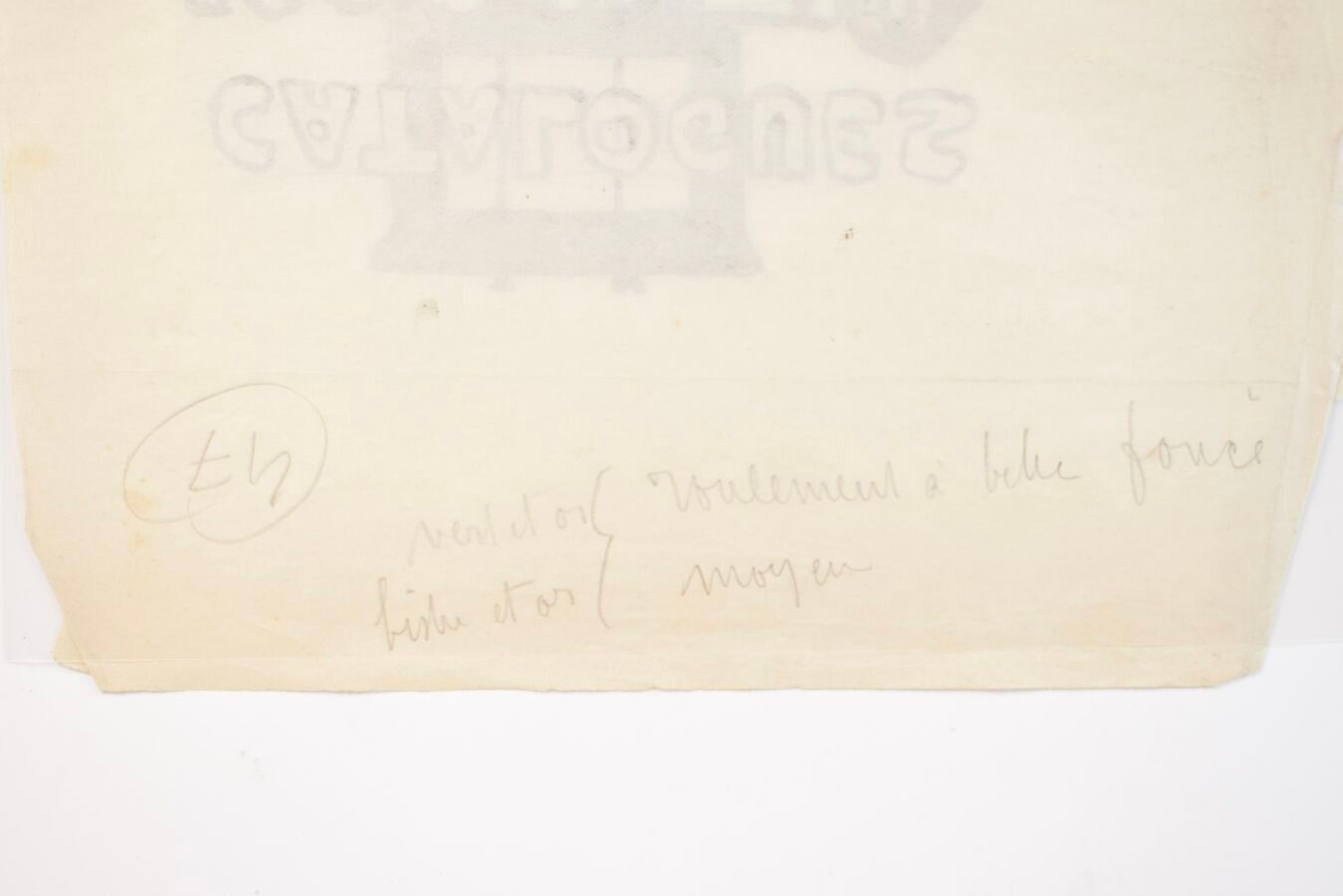 Edouard SAUNIER (1885-1918), "Catalogues Kossuth", ink, ink wash and white gouache, 31 x 19.5 cm.