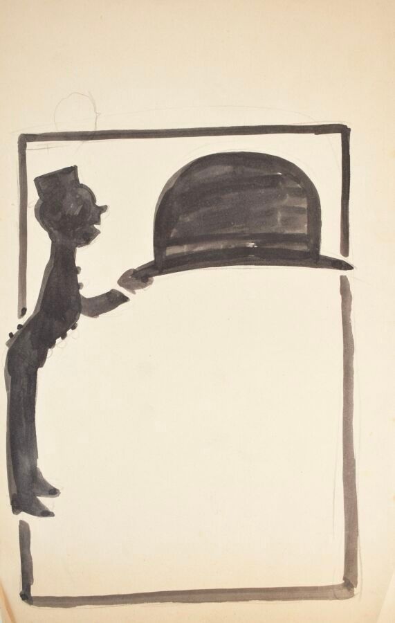 Edouard SAUNIER (1885-1918), "The Groom...", ink and ink wash on tracing paper, 30 x 20 cm.