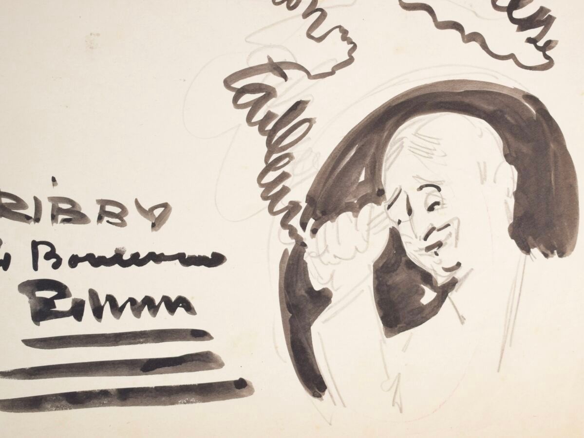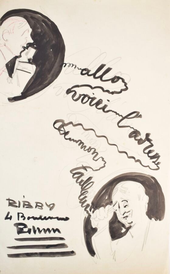 Edouard SAUNIER (1885-1918), "Allo, voici l'adresse!...", ink and ink wash on tracing paper, 31 x 20 cm.