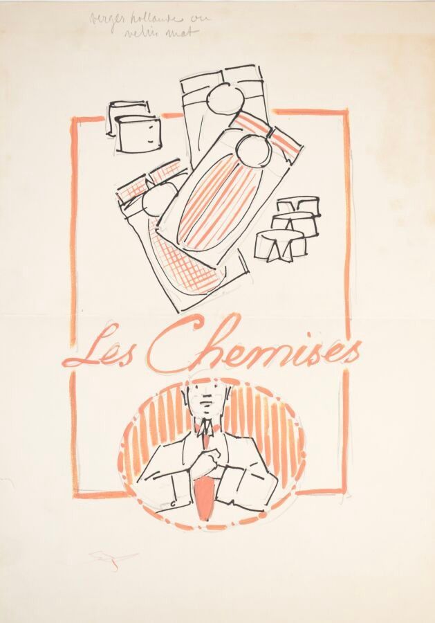 Edouard SAUNIER (1885-1918), "Les chemises", drawing and wat…