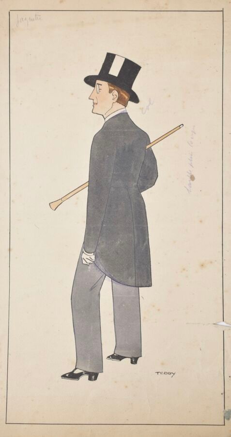 His advertising designs covered a wide range of fields: catering, millinery, fashion, footwear, optics and tyres. They are usually signed with his pseudonym "Teddy" or accompanied by a studio stamp "Edouard Saunier, dessins artistiques" or a stamp with the ES monogram. Brands include hatters Henry, Léon and Rochet, toy shop Le Paradis des Enfants, UNIC shoes, Caveryrac and Raoul, Maignen filters, Wolber and Lucifer tyres, and tailors Boka, Dewachter, Lejeune and Libby.