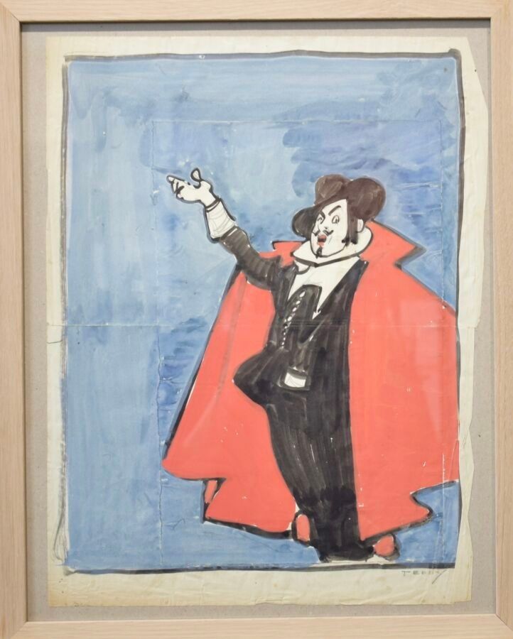 Edouard SAUNIER (1885-1918), "LA CAPE ROUGE", ink and waterc…