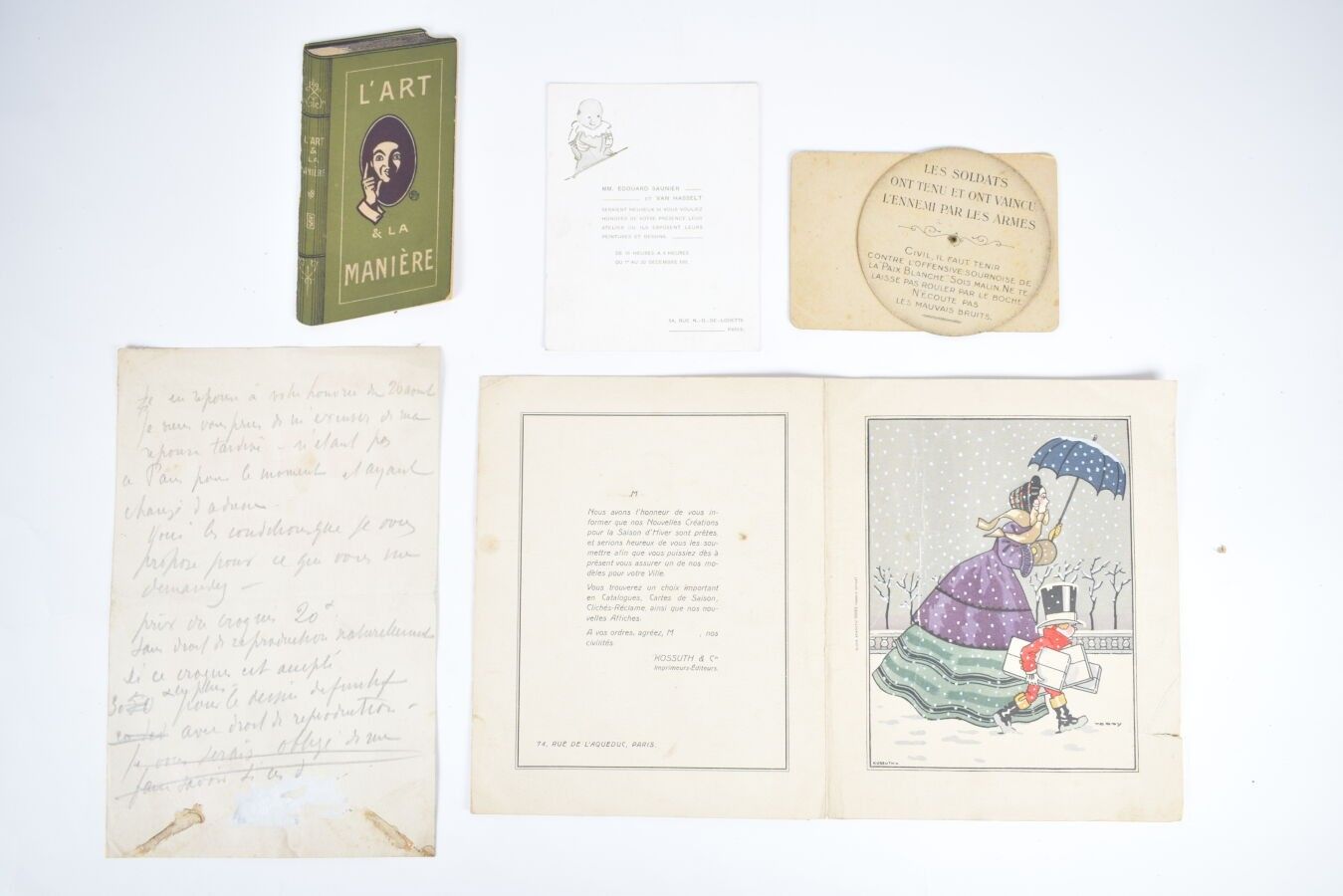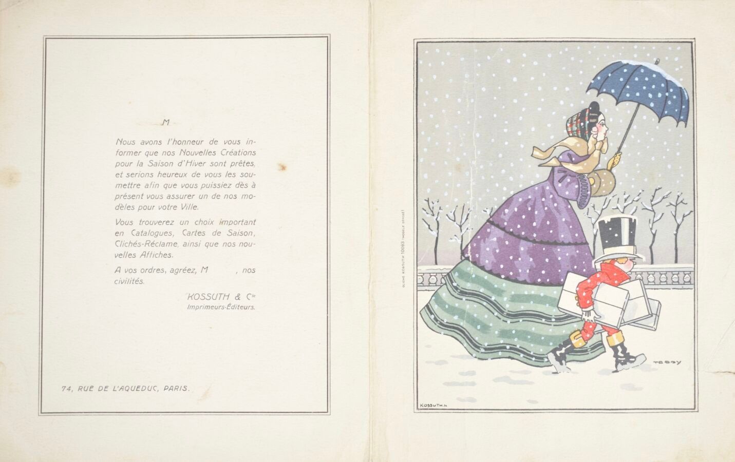 Edouard SAUNIER (1885-1918), "Invitation. Kossuth & Cie", Winter season creations, 21 x 17.5 cm.