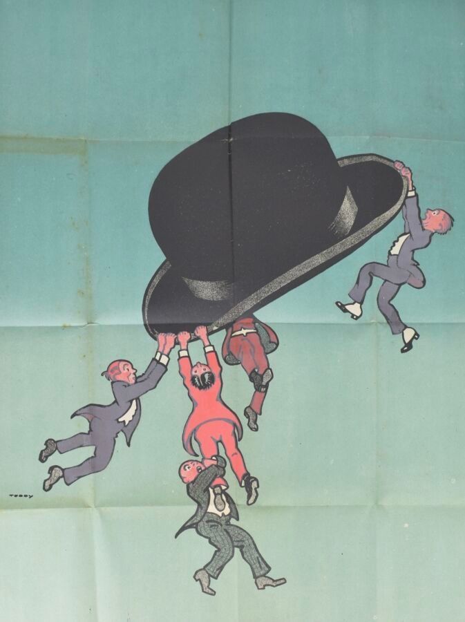 His advertising designs covered a wide range of fields: catering, millinery, fashion, footwear, optics and tyres. They are usually signed with his pseudonym "Teddy" or accompanied by a studio stamp "Edouard Saunier, dessins artistiques" or a stamp with the ES monogram. Brands include hatters Henry, Léon and Rochet, toy shop Le Paradis des Enfants, UNIC shoes, Caveryrac and Raoul, Maignen filters, Wolber and Lucifer tyres, and tailors Boka, Dewachter, Lejeune and Libby.