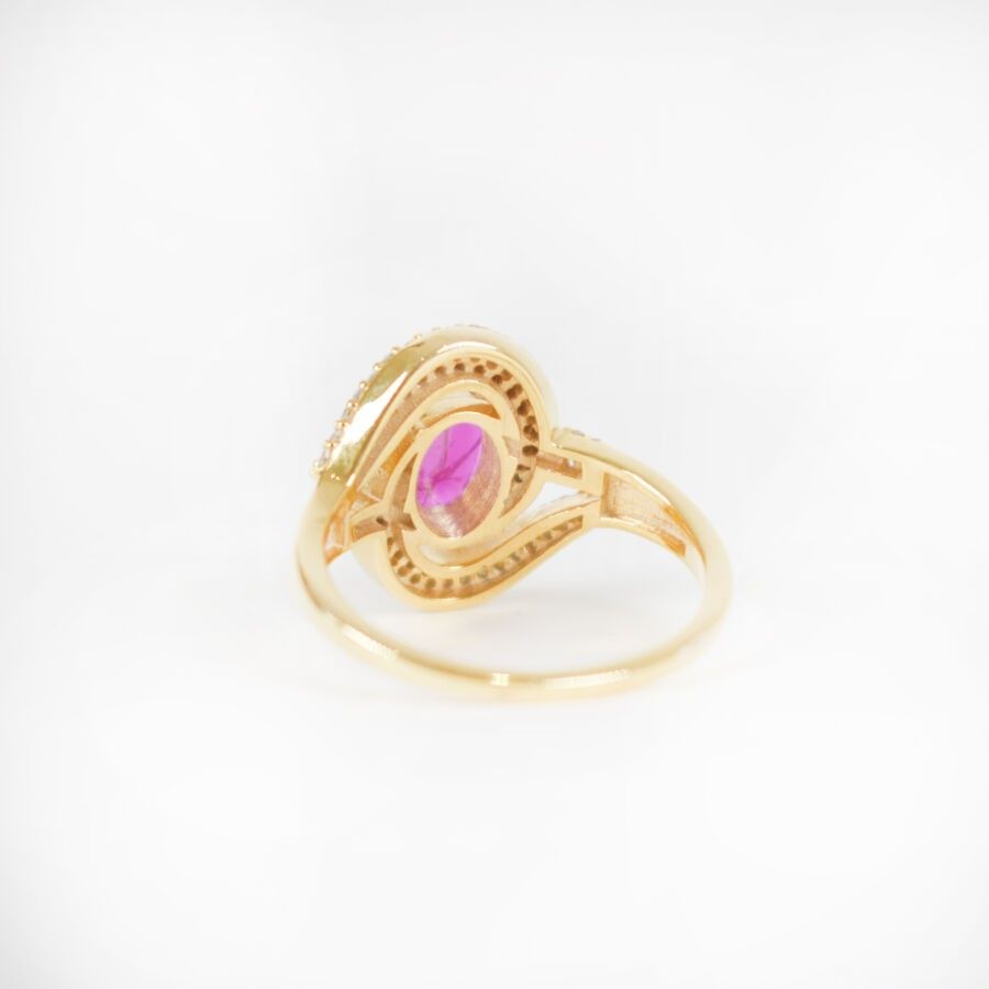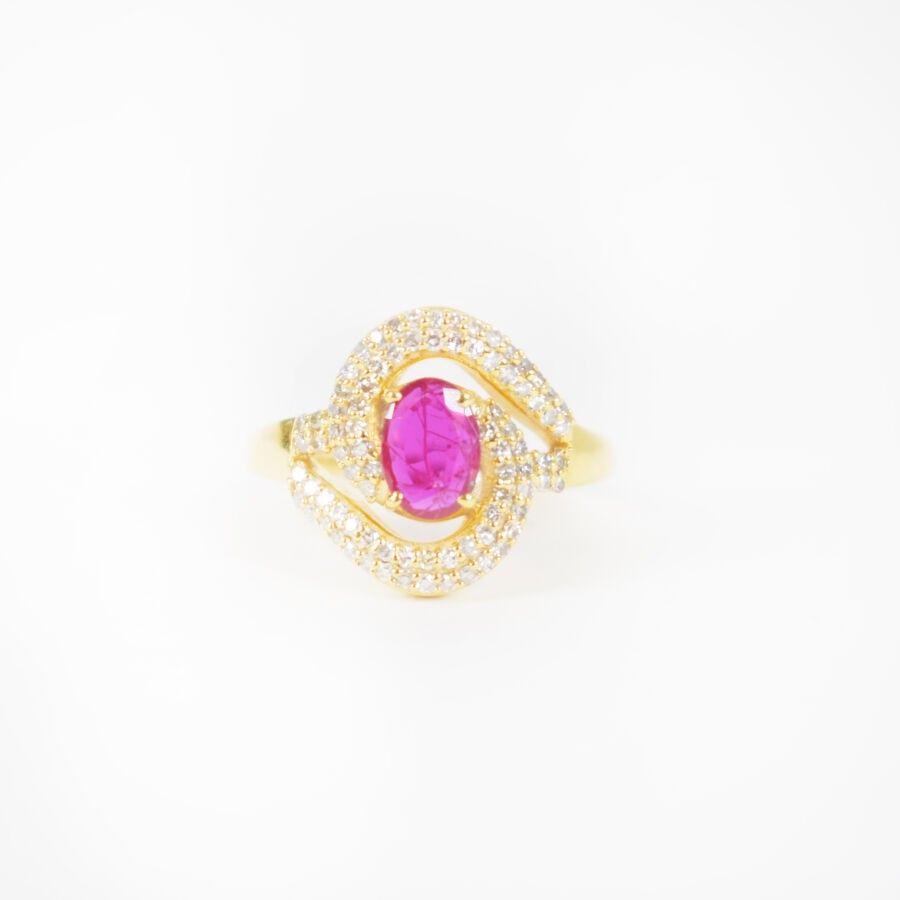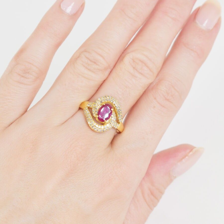 14K (575/oo) gold ring set with an oval ruby weighing approx…