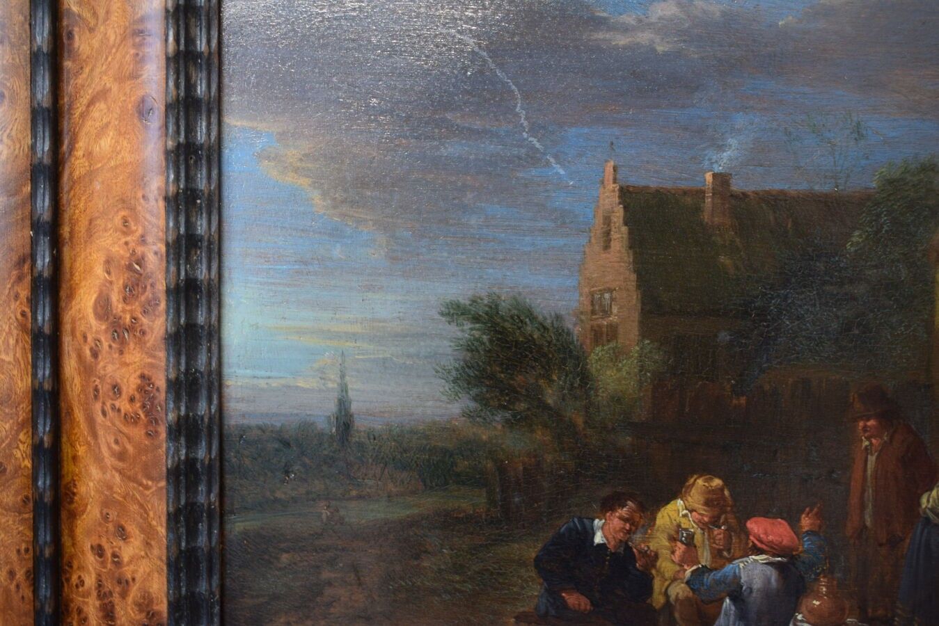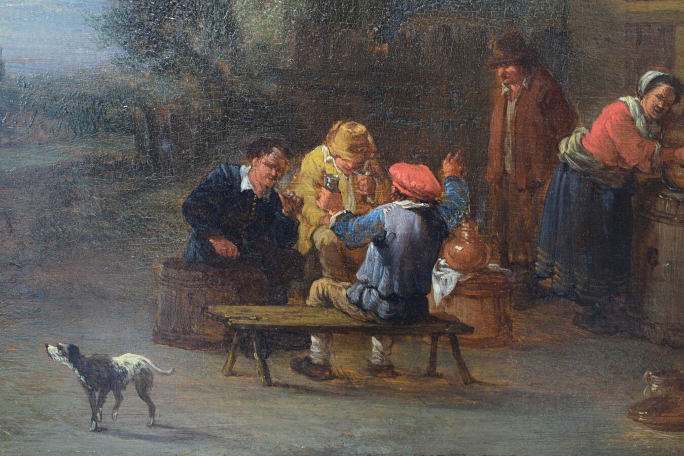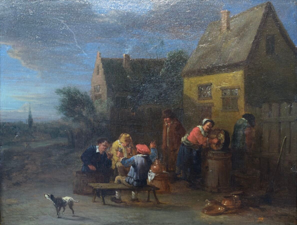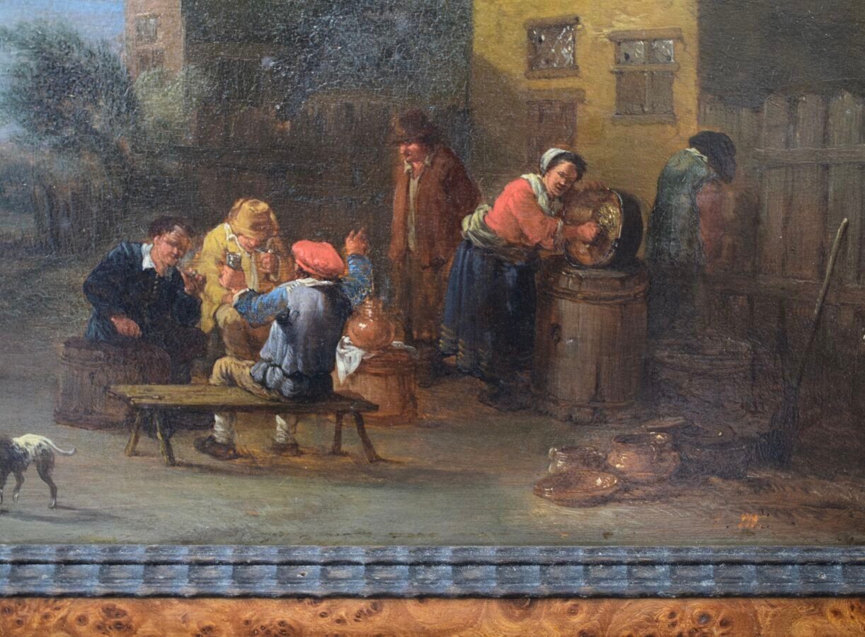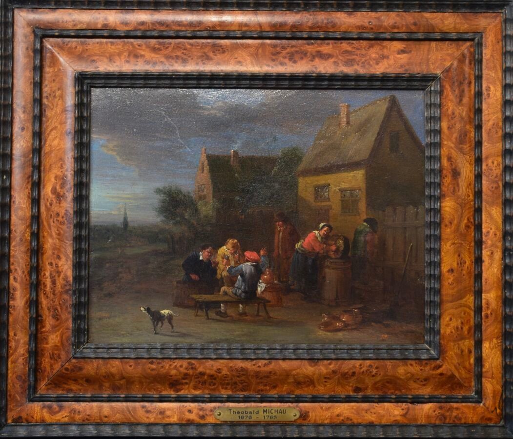 Attributed to Théboald MICHAU (1676-1765), "Scène villageoise", oil on wood panel, 19 x 25.2 cm (view)