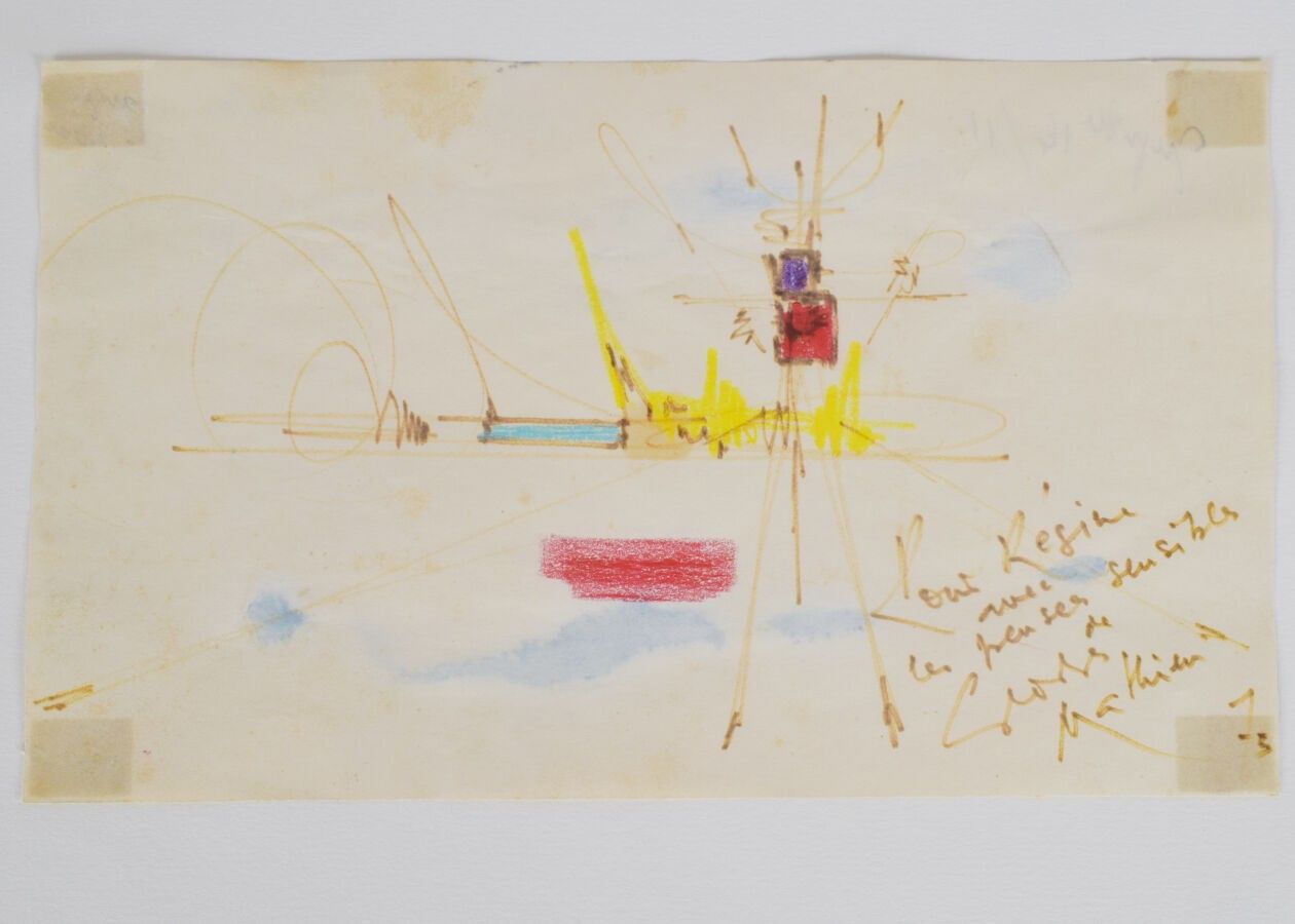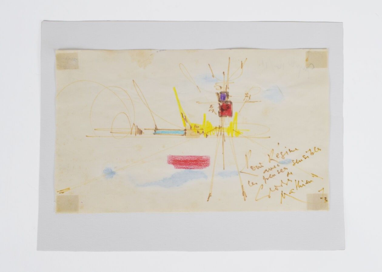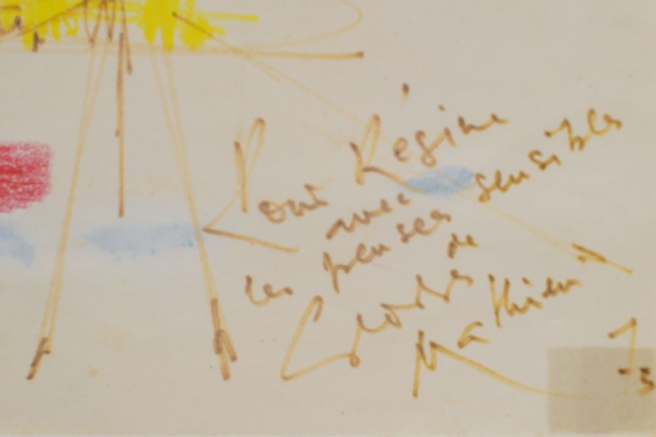 Georges MATHIEU (1921-1912), "Composition", pencil, felt pen and pastel drawing on paper, signed and dedicated lower right, 12 x 20 cm.