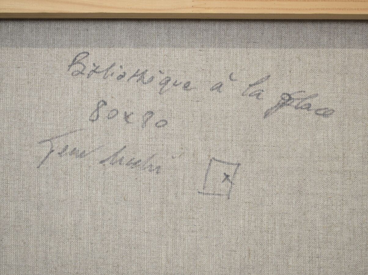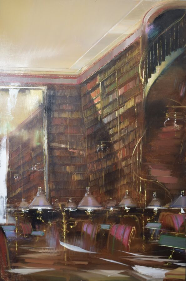 Jean ARCELIN (1962), "Bibliothèque à la glace", oil on canvas, signed on the back and titled, 146 x 97 cm