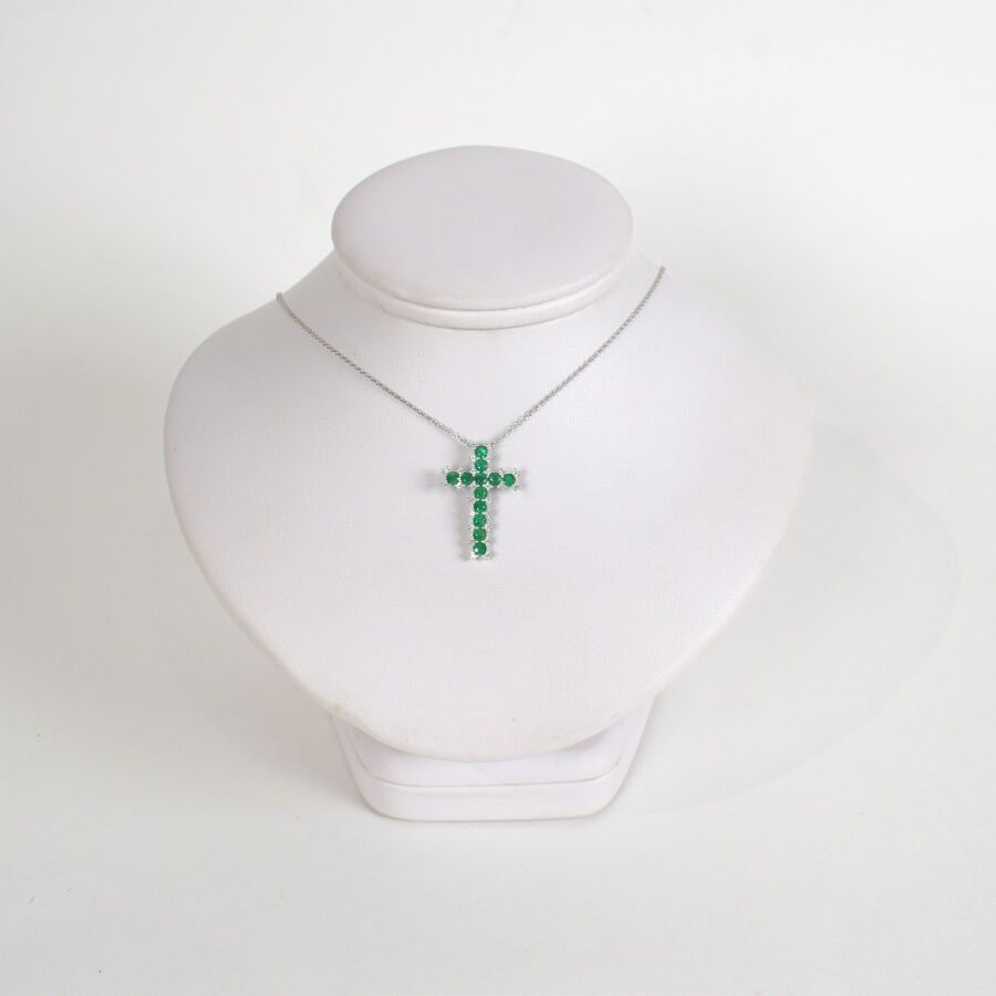 Necklace in 18K (750/oo) white gold set with a cross of emer…