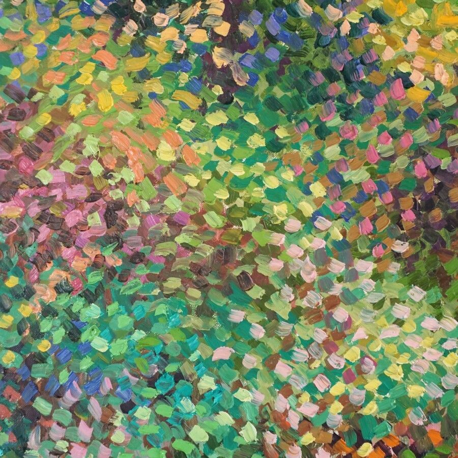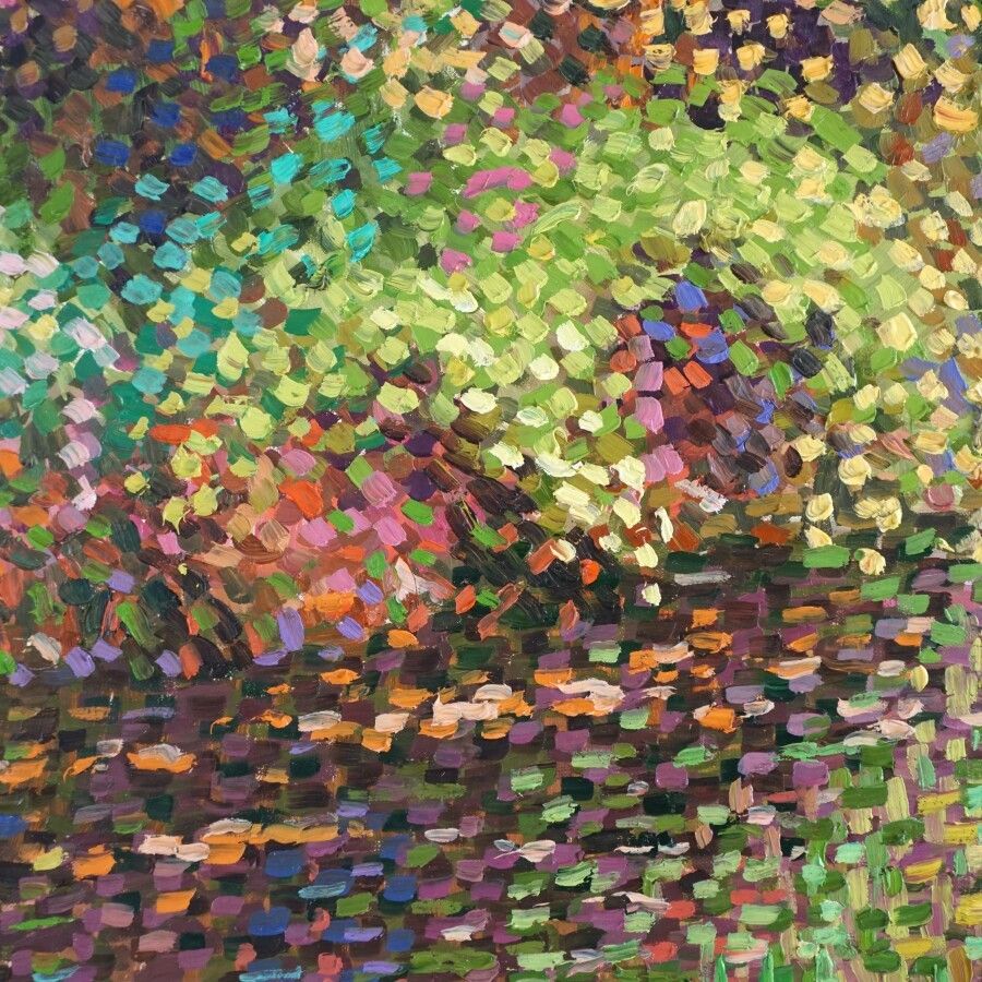 Serge MENDJISKY (1929-2017), "Paysage pointilliste" 1999, oil on canvas signed lower right, countersigned and dated on the back, 54 x 65 cm.