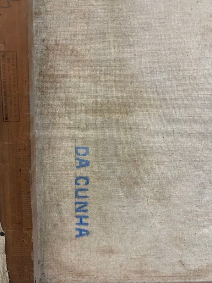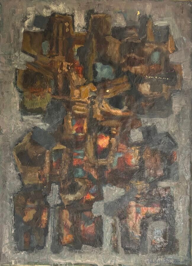 Carlos DA CUNHA (1907-?), "Composition" 1962, oil on canvas, signed and dated lower right, stamped "Da Cunha" on the back of the canvas, 100 x 72, 5 cm (some chipping).