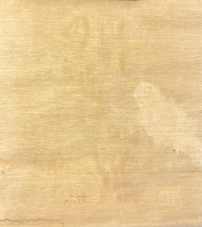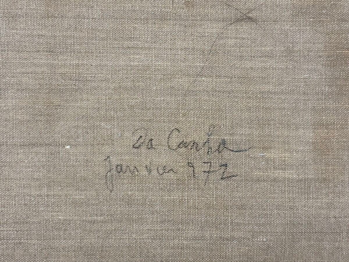 Carlos DA CUNHA (1907-?), "Composition" January 1972, oil on canvas (rolled), signed and dated lower right, countersigned on the back, 75, 5 x 87,5 cm (without stretcher).