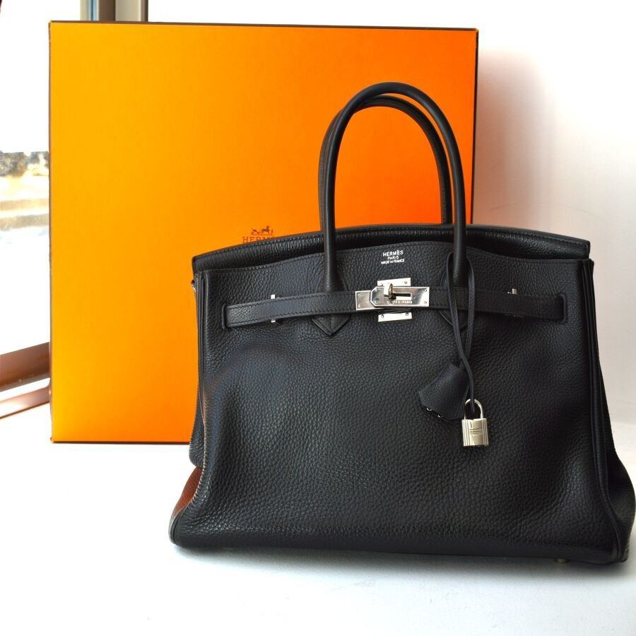 HERMES: 2004 "Birkin" bag in black leather and silver-tone m…