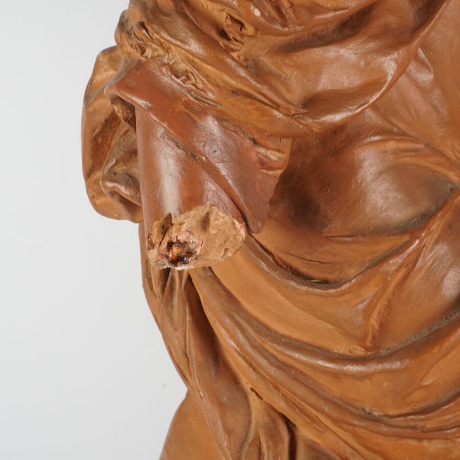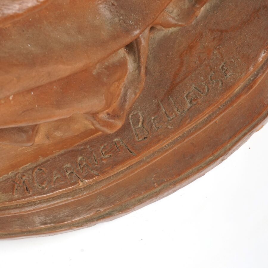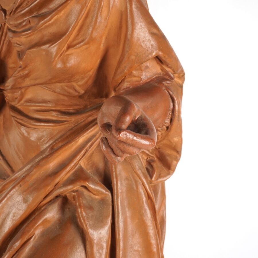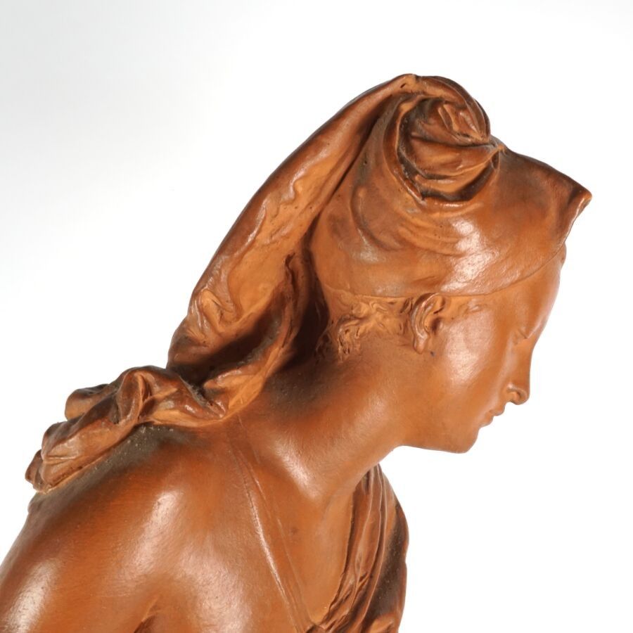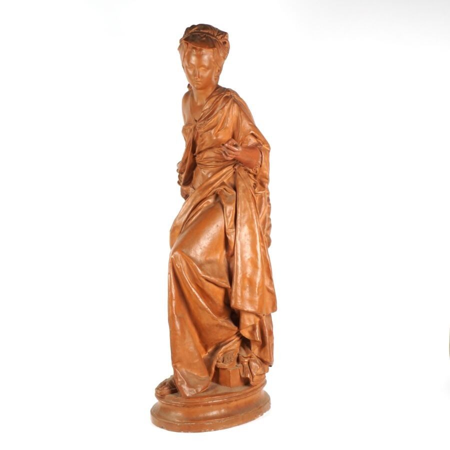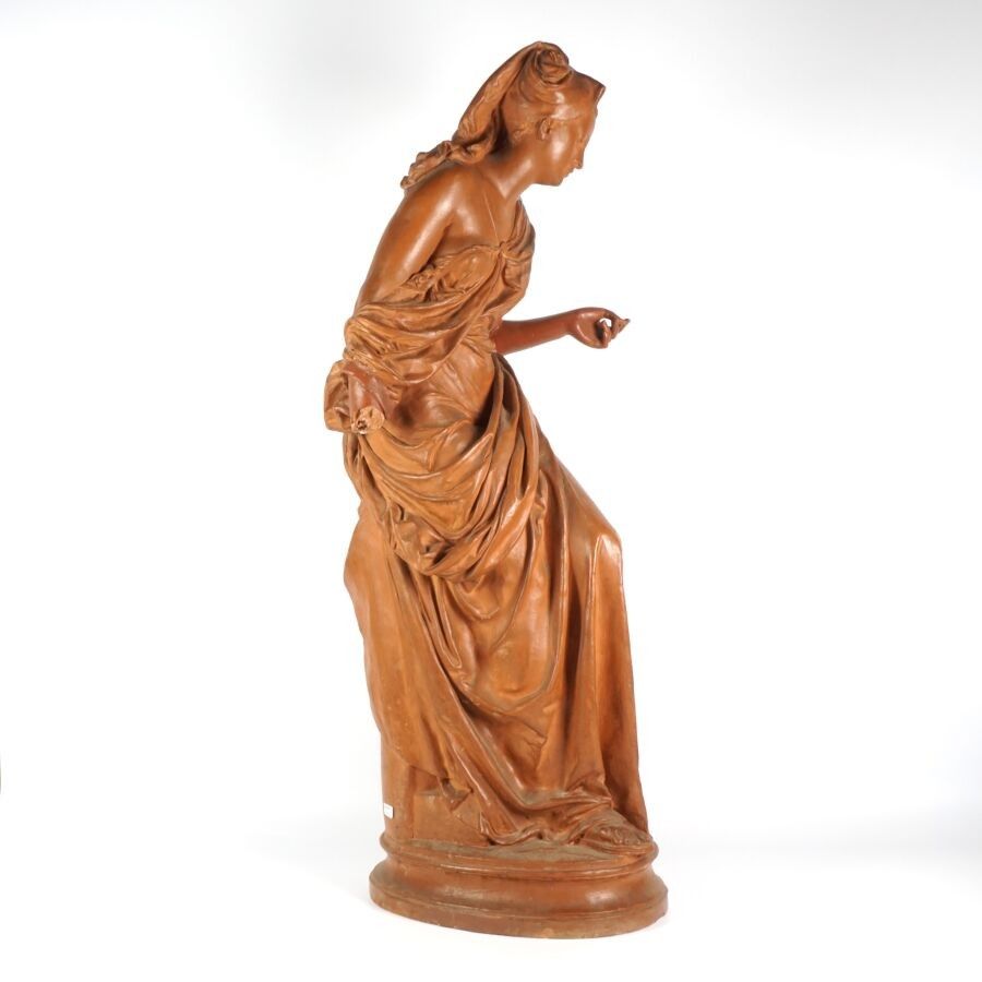 Albert Ernest CARRIER-BELLEUSE (1824-1887), "Femme au drapé", sculpture in patinated terracotta, signature in hollow on the base, H. 80 cm (one hand damaged, small chips).